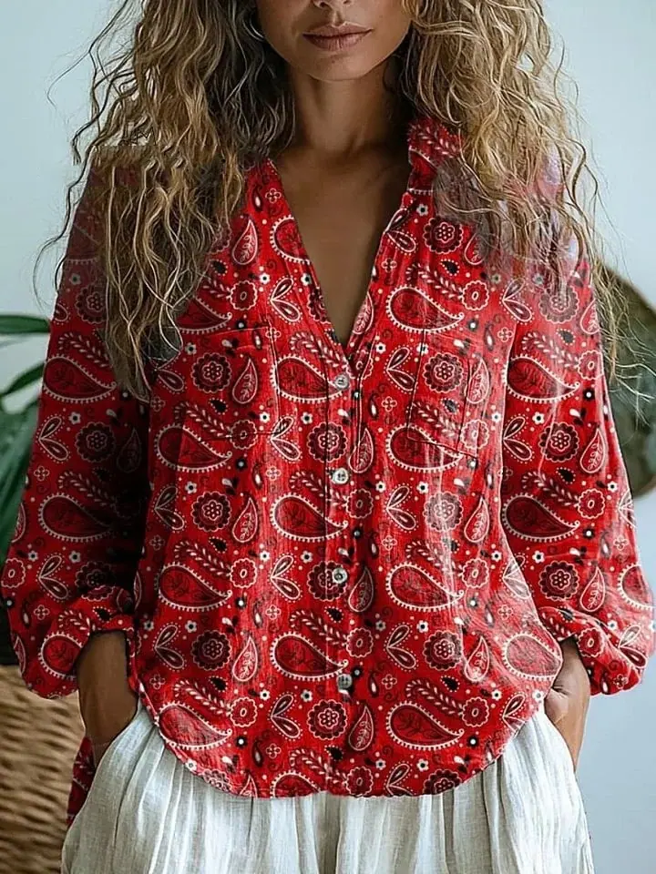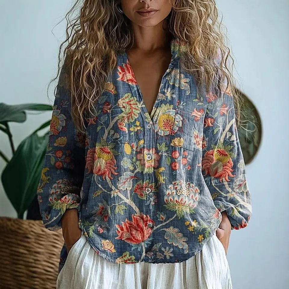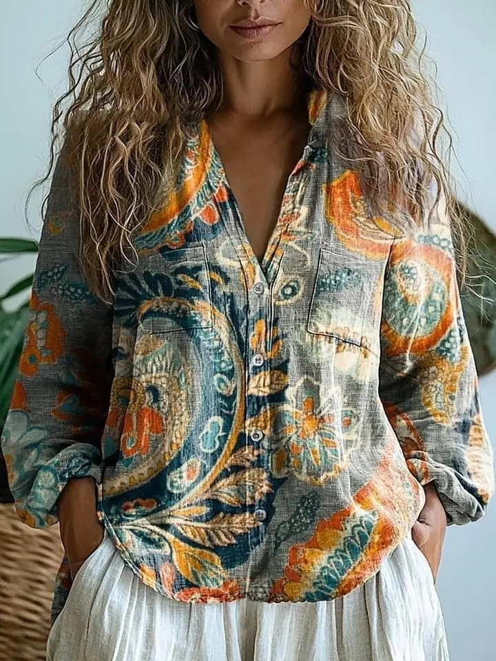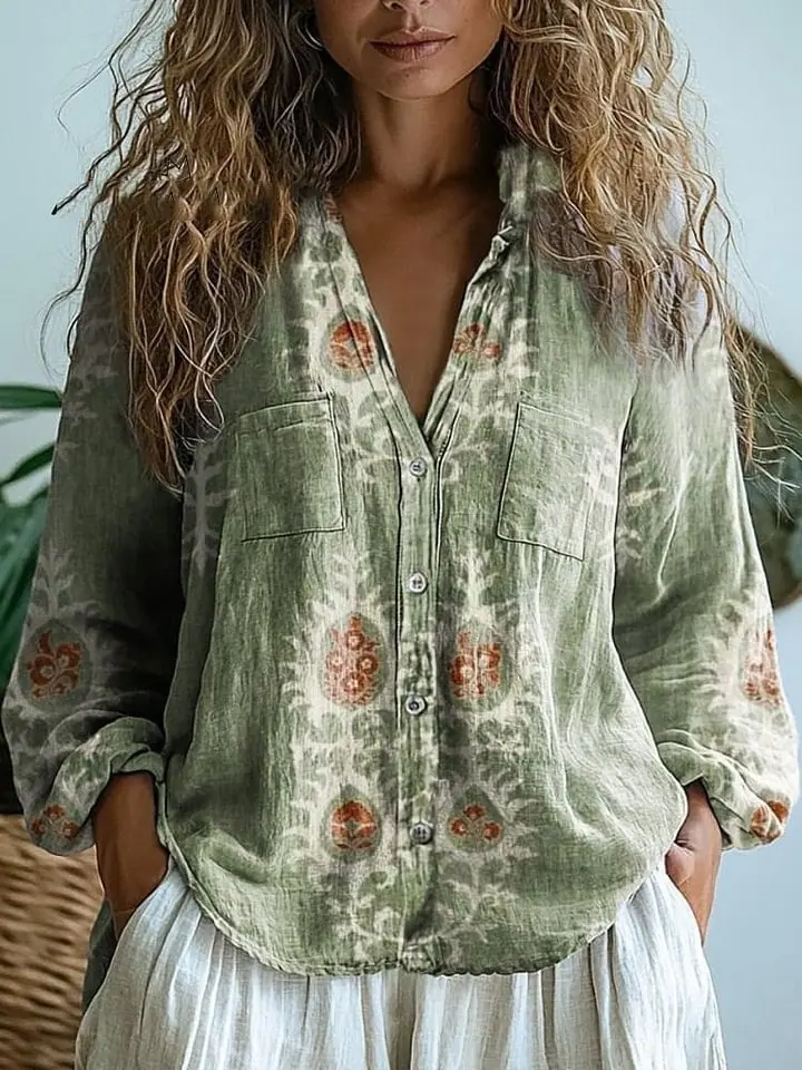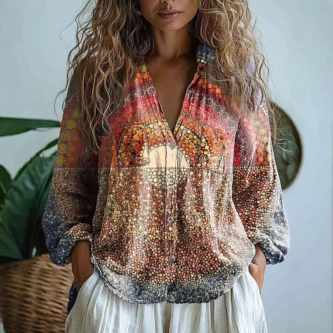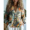 Compra Ropa de Mujer de Comercio Exterior Europeo y Americano Transfronterizo 2025 Primavera/Verano Nuevo Retro Estampado 3D Camisa de Manga Larga Camisa de Doble Bolsillo al por mayor en Joom.pro