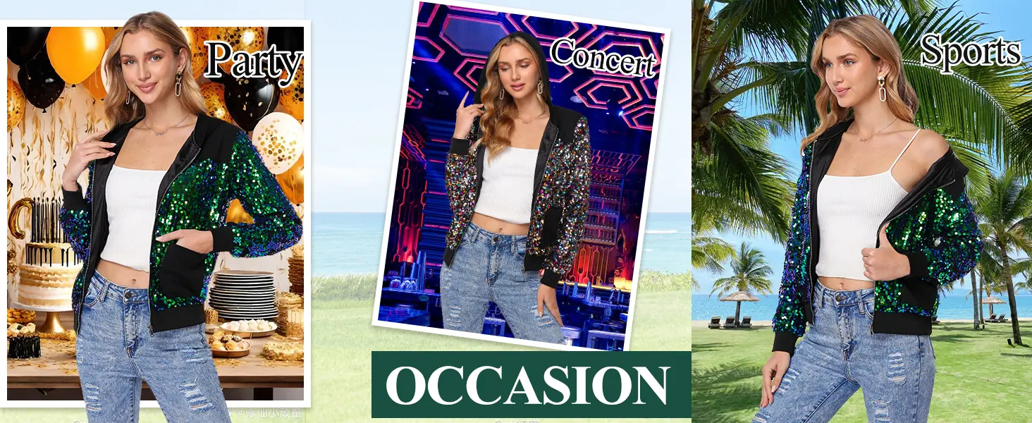 Material Suave: 100% Poliéster. La chaqueta de lentejuelas con forro completo suave y liso evita que las lentejuelas rasguñen la piel. Las chamarras bomber brillantes tienen lentejuelas cosidas duraderamente por todas partes que no se caerán fácilmente ni se partirán.