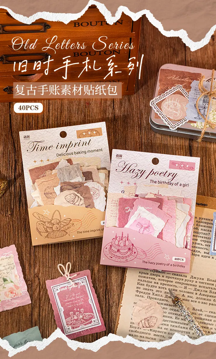 Paquetes de 2 Stickers Yuxian, Serie Manual a la Antigua, Decoración de Manual Retro, Material para Collage, 40 Piezas, 4 Opciones