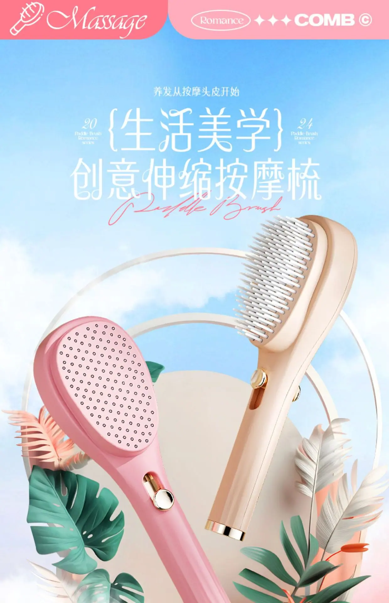 Peine de Masaje Retráctil Peine Mágico Limpieza del Cuero Cabelludo No Daña el Cabello Peine de Peluquería Antiestático Suaviza el Cabello Limpieza Hogar