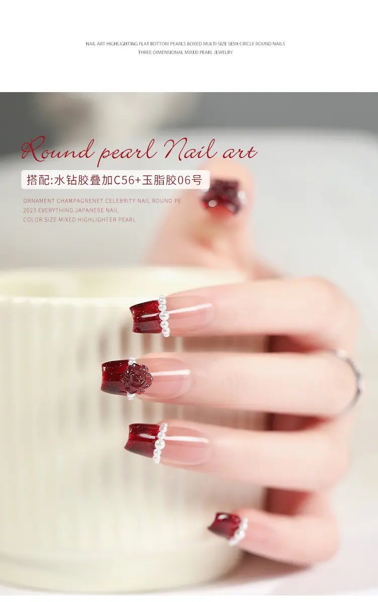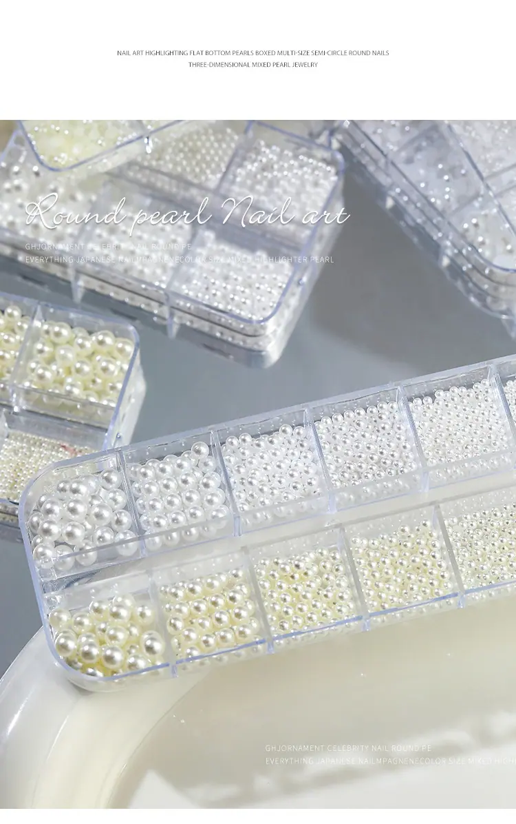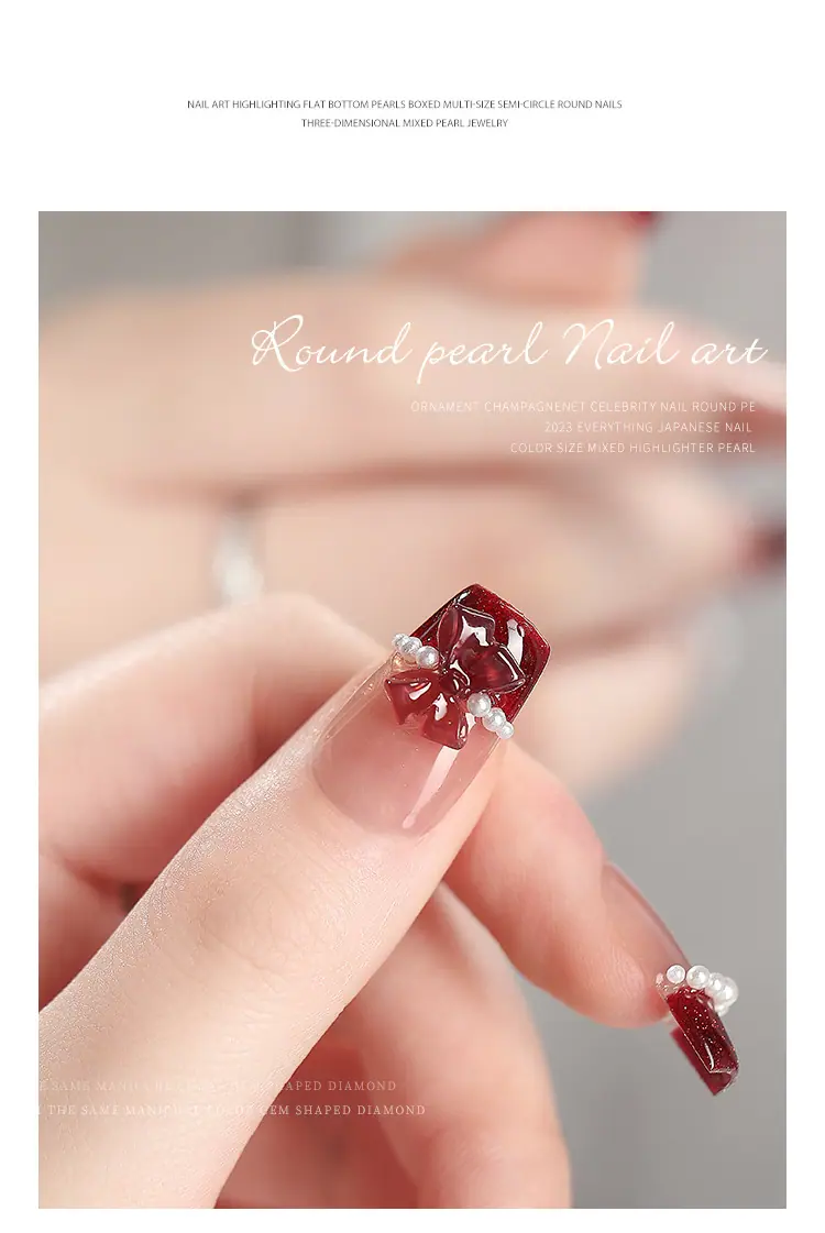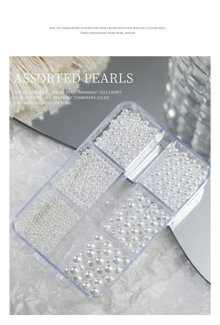 Decoración de uñas con fondo plano, resaltador, tamaño mixto, joyería de perlas, accesorios de uñas estéreo japoneses, cuentas de taladro, no se pelan, venta al por mayor