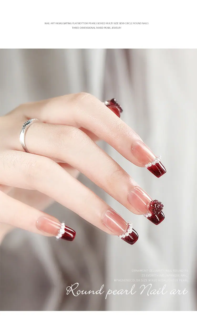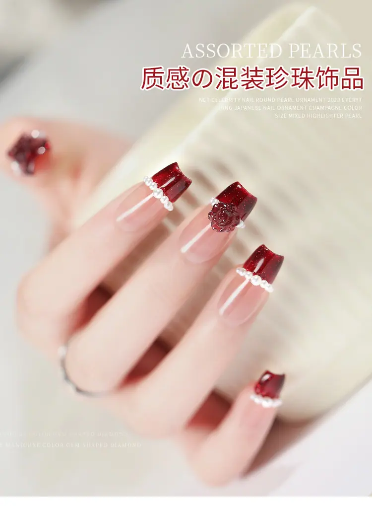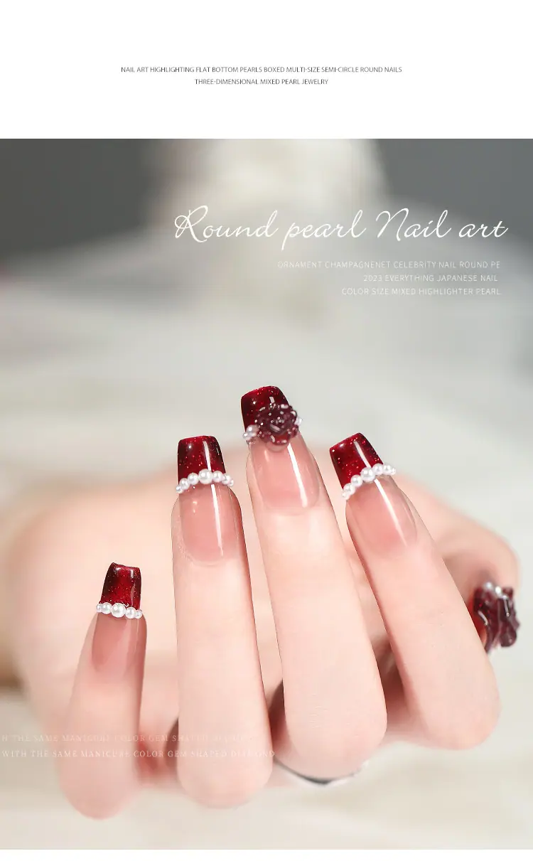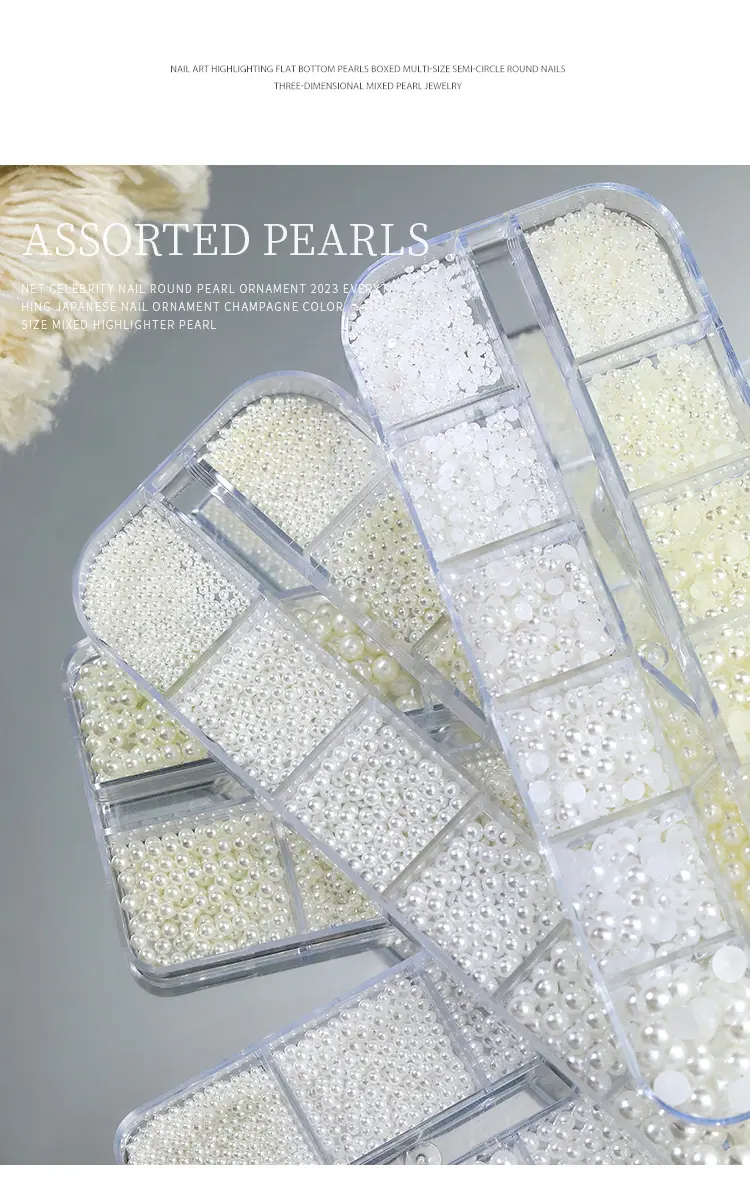 Decoración de uñas con fondo plano, resaltador, tamaño mixto, joyería de perlas, accesorios de uñas estéreo japoneses, cuentas de taladro, no se pelan, venta al por mayor
