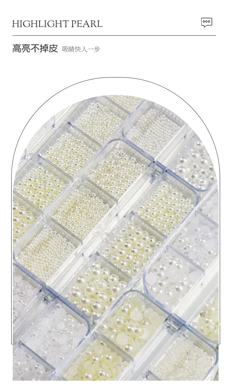 Compra Decoración de uñas con fondo plano, resaltador, tamaño mixto, joyería de perlas, accesorios de uñas estéreo japoneses, cuentas de taladro, no se pelan, venta al por mayor al por mayor en Joom.pro