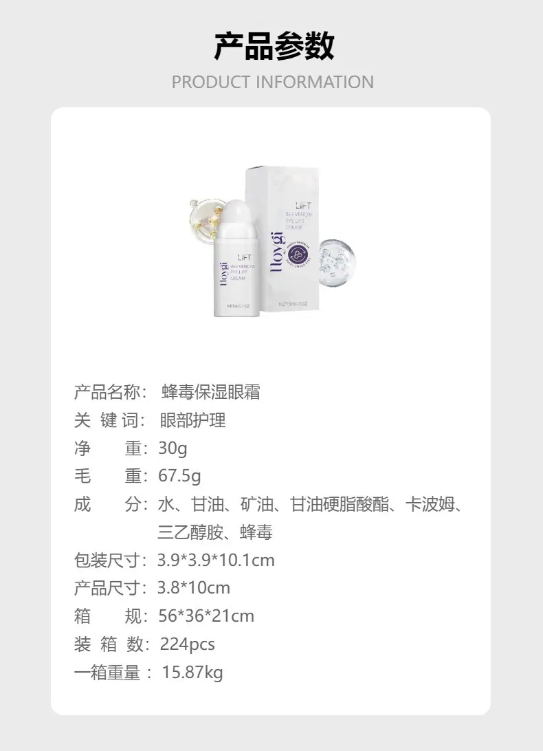 Hoygi Crema Hidratante para Ojos con Veneno de Abeja Suave, Hidratante, Piel de Ojos Suave y Lisa Cuidado Hidratante para Ojos Crema para Ojos