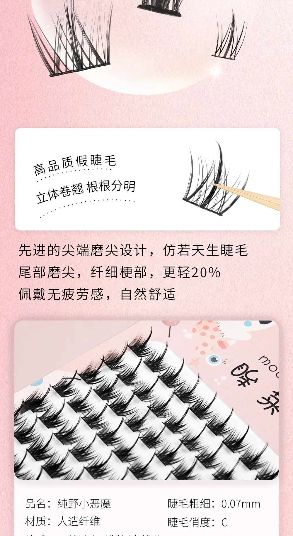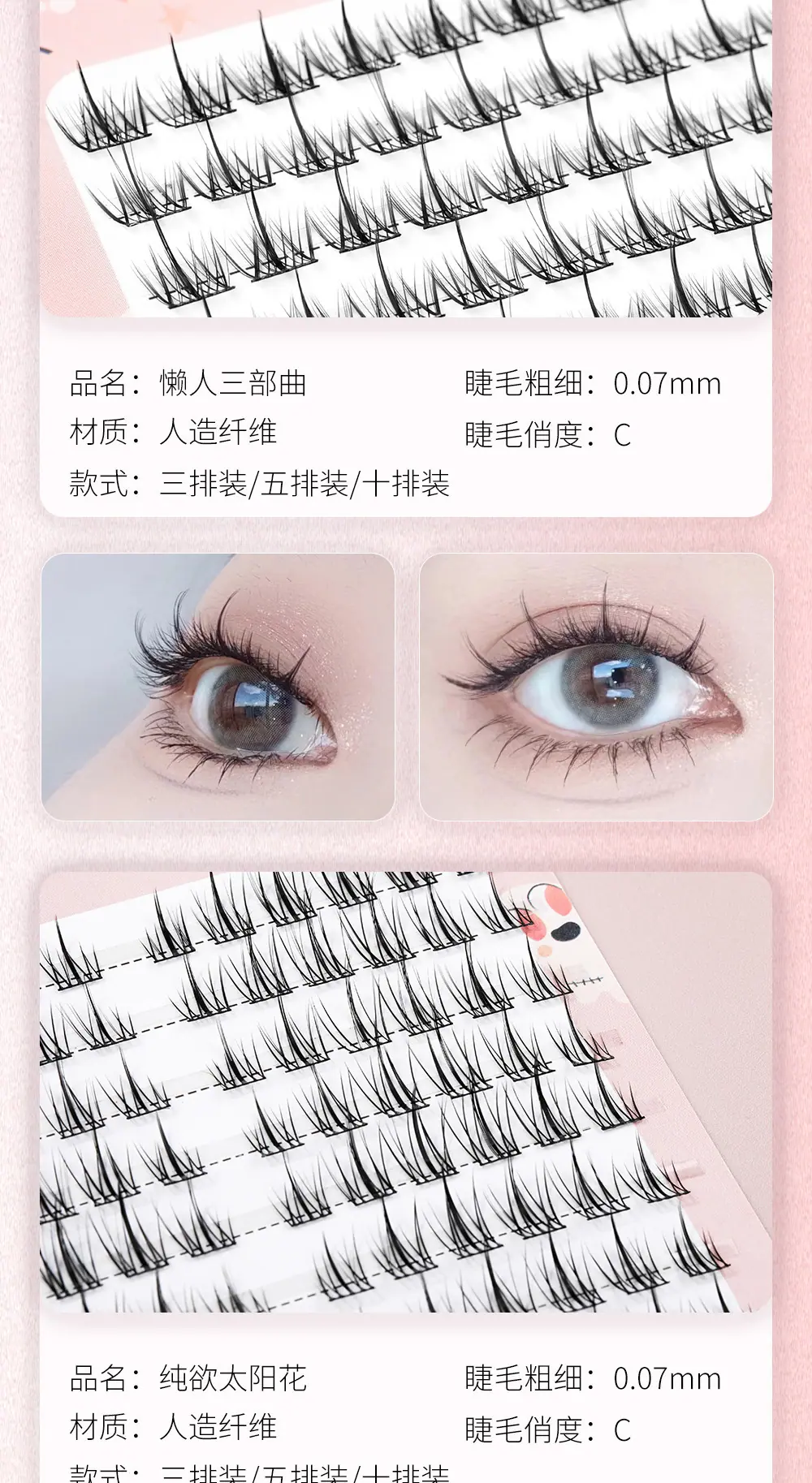 Pestañas Postizas Lazy Man Trilogy Naturales Tallo Duro Gran Capacidad Pequeño Diablo Girasol Pestañas Racimo Individual Cómico