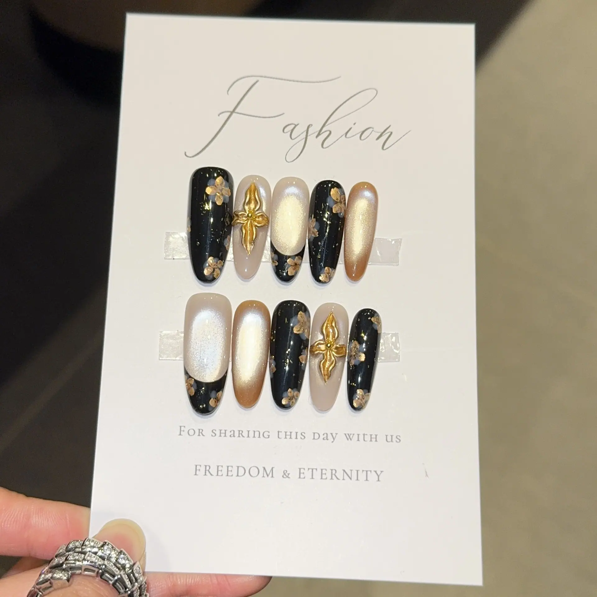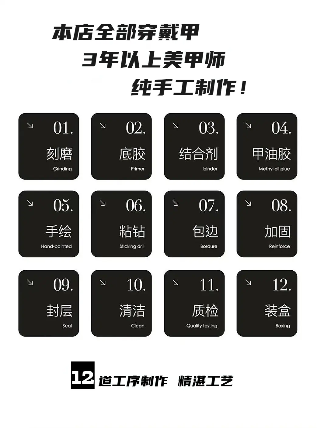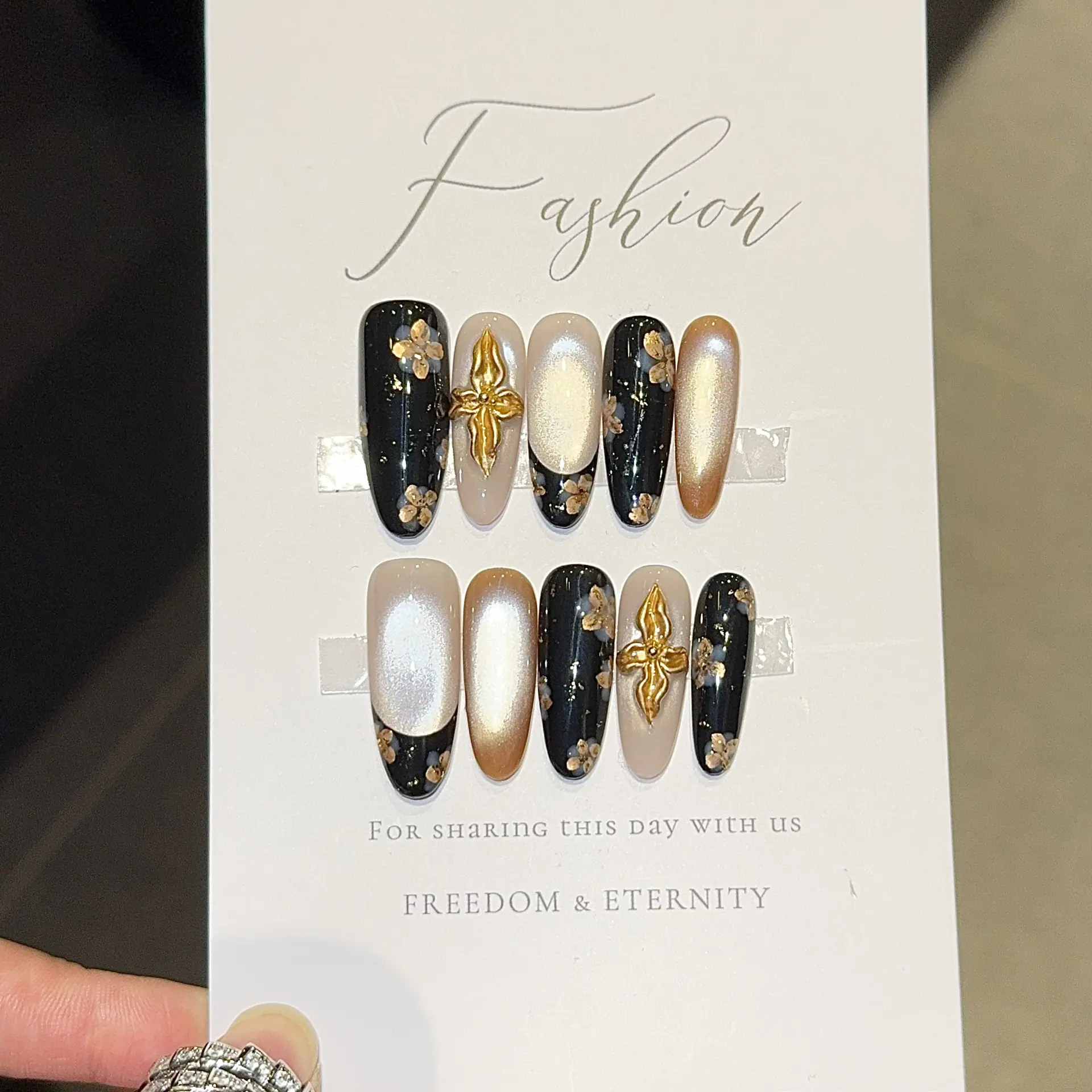Hecho a mano [Tallado] Sistema de color Mylar de lujo ligero Uñas portátiles puramente hechas a mano Parches de arte de uñas de estilo largo europeo y americano Uñas postizas