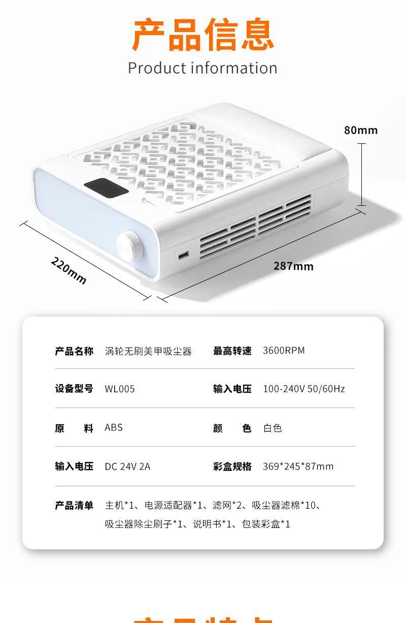 Compra Oemodm Nuevo Aspirador de Uñas Turbina Sin Escobillas Recolector de Polvo de Uñas Alta Potencia Bajo Ruido Aspirador Personalización al por mayor en Joom.pro