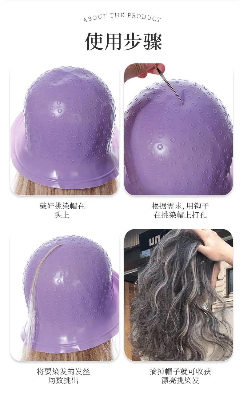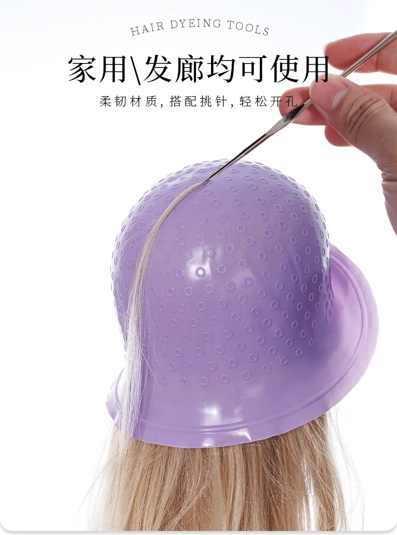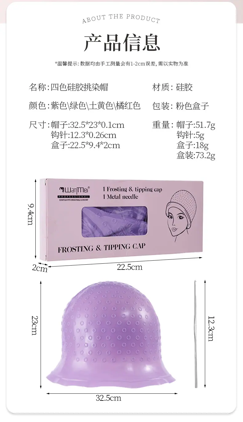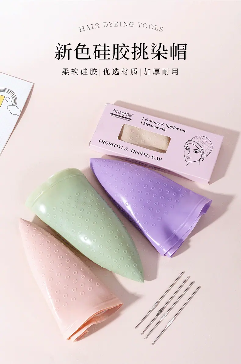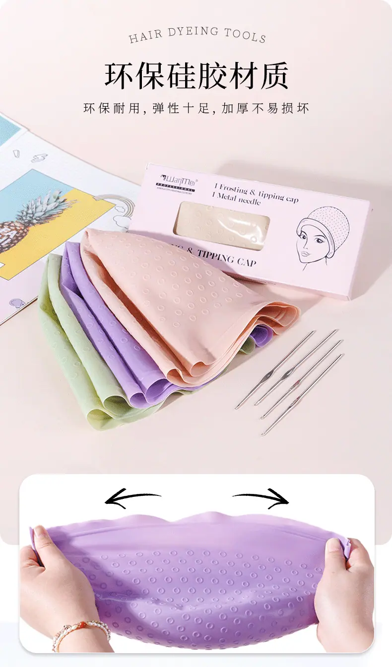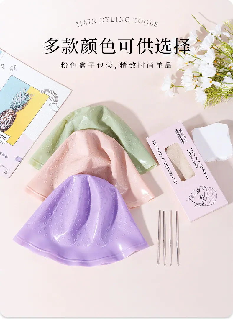 Herramientas al por mayor de fábrica para teñir el cabello, gorro de silicona para reflejos, gorro para teñir el cabello, gorro de aceite, colorido multicolor con ganchillo en stock