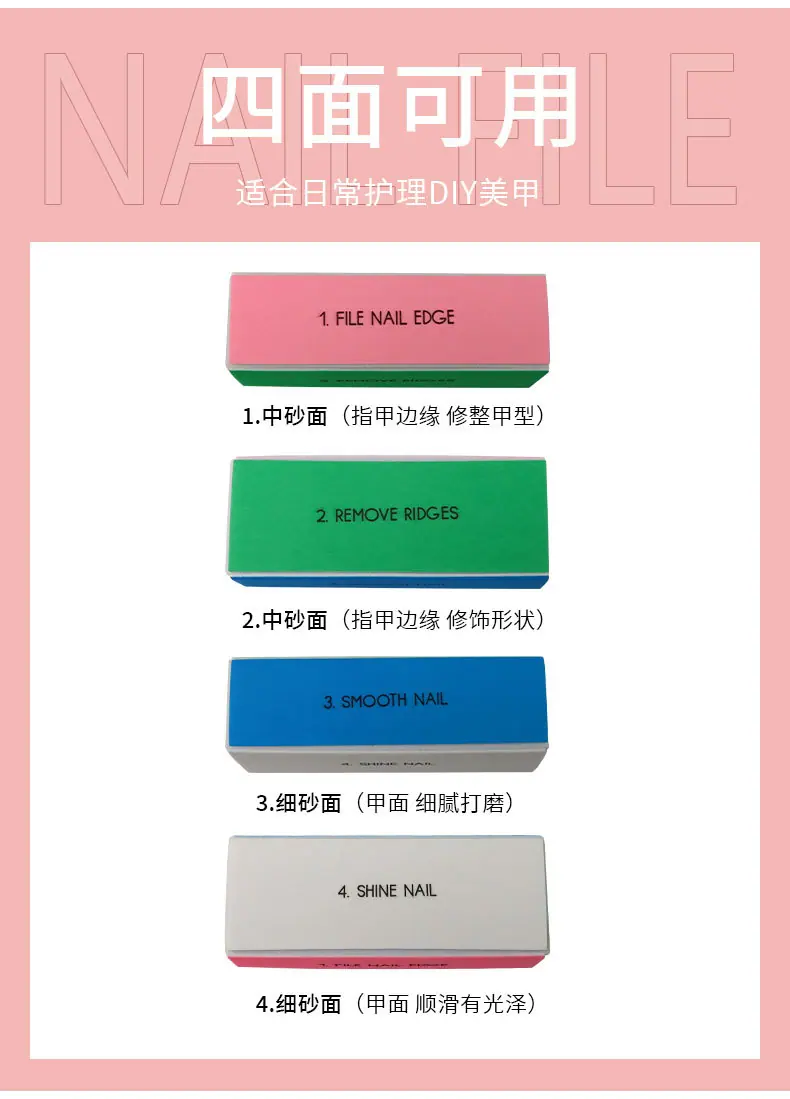 Herramientas para Uñas Bloque de Pulido de Cuatro Lados Tira de Pulido de Gel para Esmalte de Uñas Venta al por Mayor Bloque Tofu para Pulir Uñas Tira Escarchada Tipo Manicura