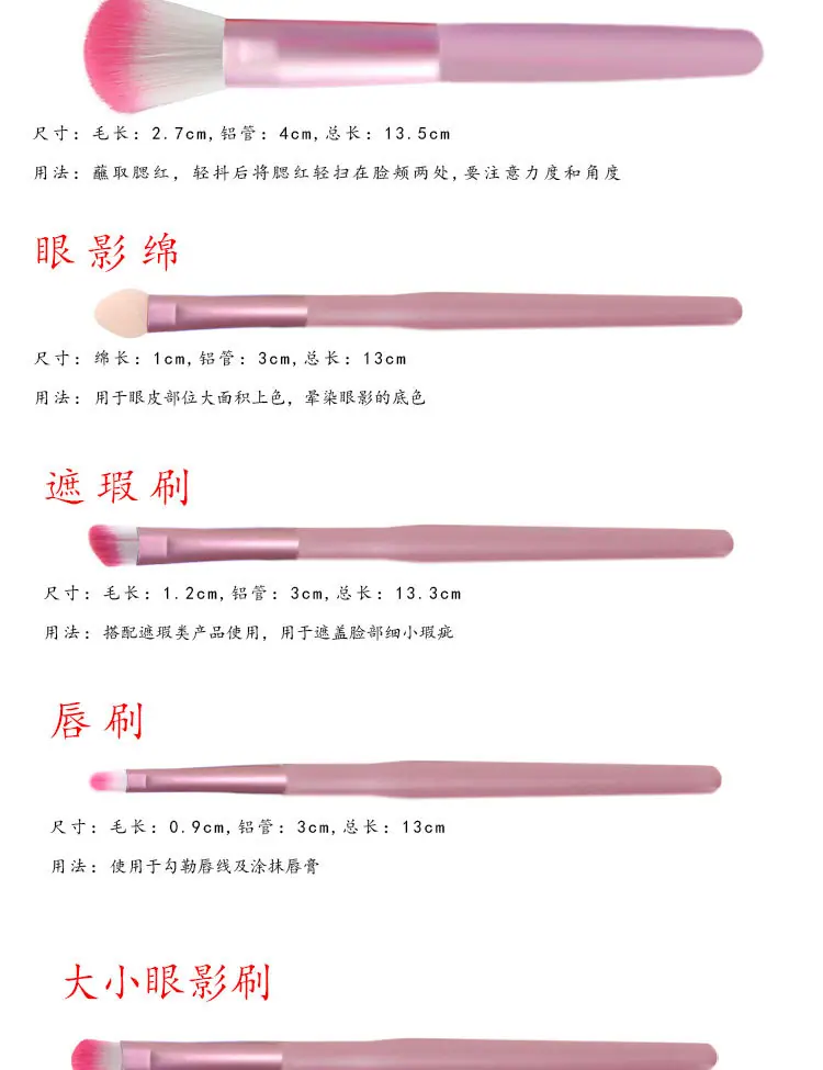 【Atributos】: Brocha para Rubor/Brocha para Cejas/Brocha para Sombra de Ojos/Pincel para Labios/Brocha para Corrector