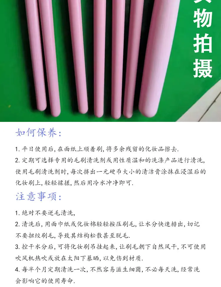 【Ventajas】:Cerdas suaves, buena recogida de polvo, mangos de cepillo ligeros, buen tacto en la mano, ¡las manos no se adormecen después de sujetarlos durante mucho tiempo! Un juego completo, adecuado para aplicar maquillaje en todas las partes del rostro, no absorbe el polvo