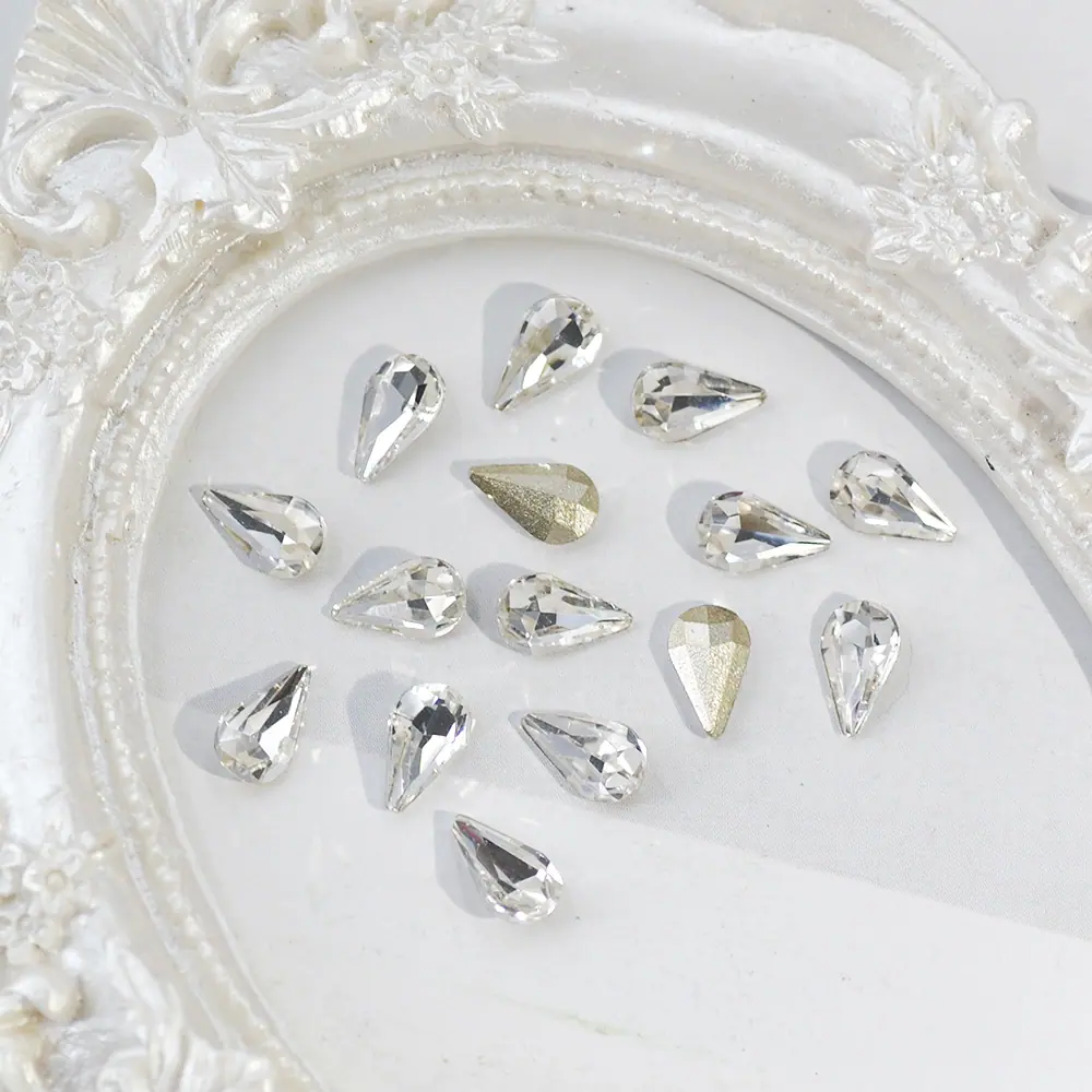 Compra Nuevo arte de uñas diamante de fondo puntiagudo Super Flash blanco transparente amor gota de agua diamante tridimensional especial diamante joyería para arte de uñas al por mayor al por mayor en Joom.pro