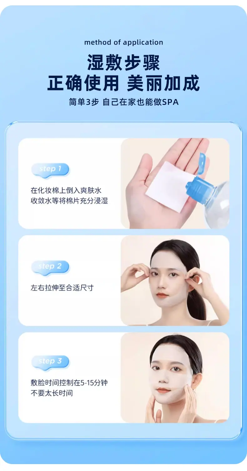 Compra Algodón Facial para Maquillaje de Compresa Húmeda de Agujeros Abiertos Algodón Fino Elástico Hoja de Algodón para Compresa Húmeda Desmaquillante Especial Papel de Mascarilla Hidratante para Spa al por mayor en Joom.pro