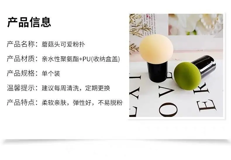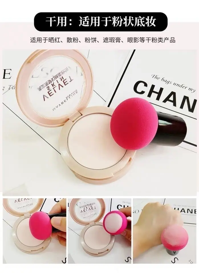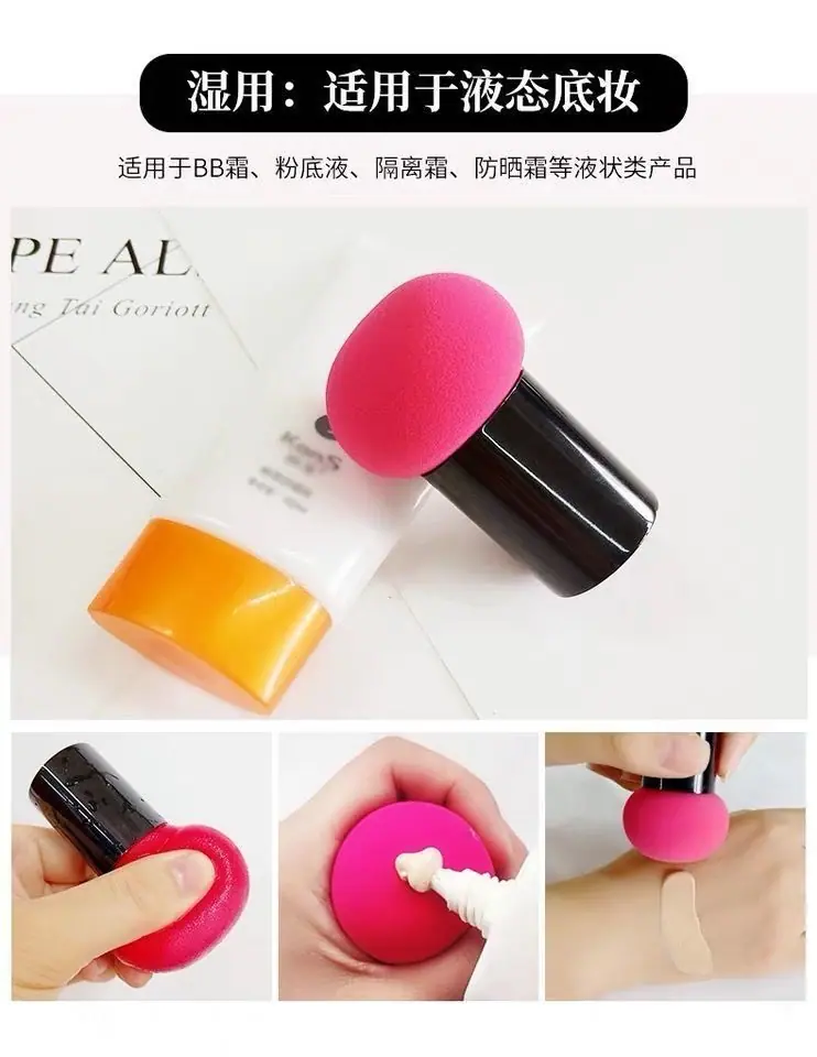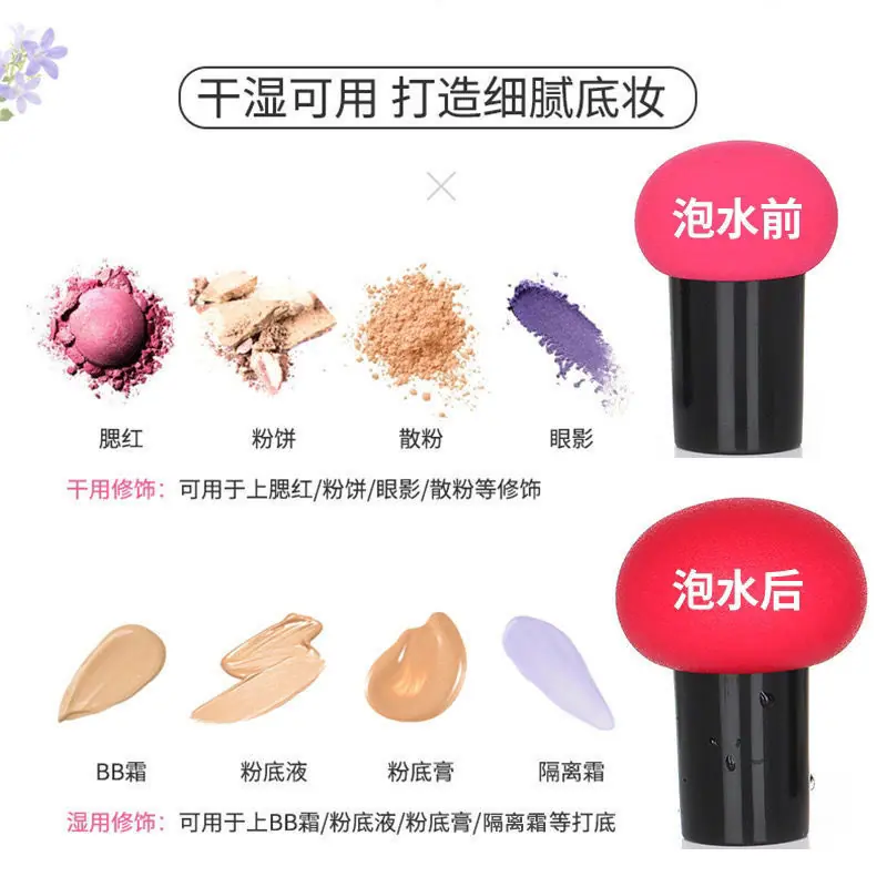 Esponja de Maquillaje con Forma de Hongo Pequeño, Cojín de Polvo, Esponja de Maquillaje, Esponja para Base, Almohadilla de Algodón de Doble Uso Seco y Húmedo con Maquillaje