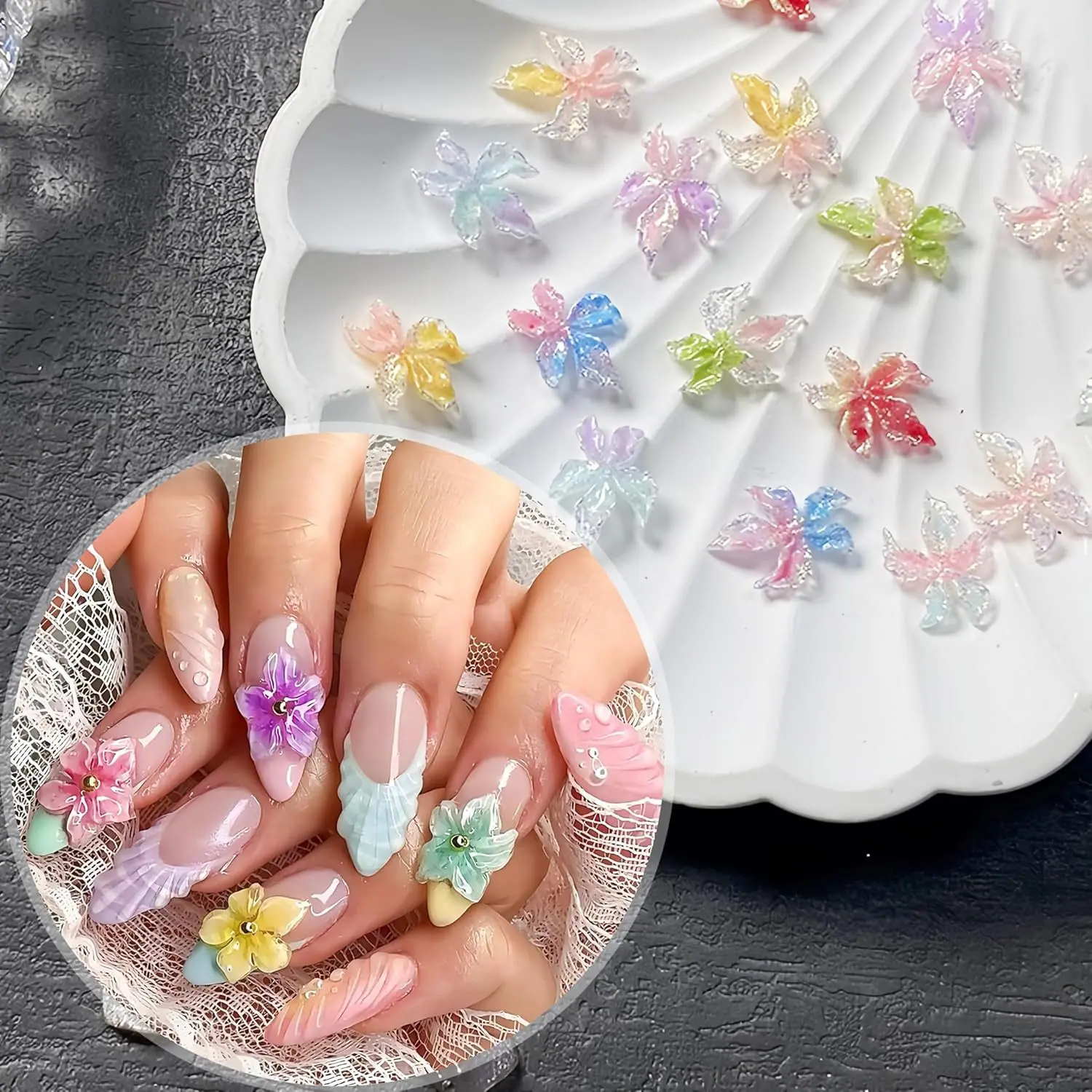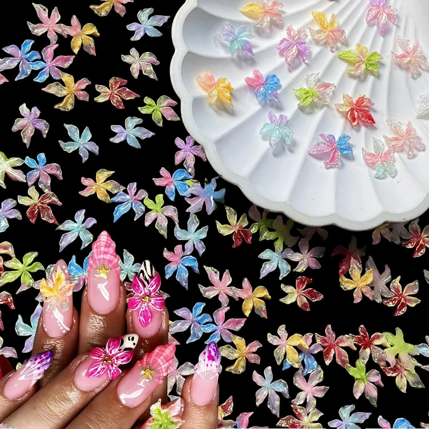 Flor de Cinco Pétalos Joyería para Arte de Uñas Paquete de Materiales Mixtos 2025 Nuevo Blanco Transparente Hielo Flor Rosa Resina Uñas Diamante Venta al por Mayor