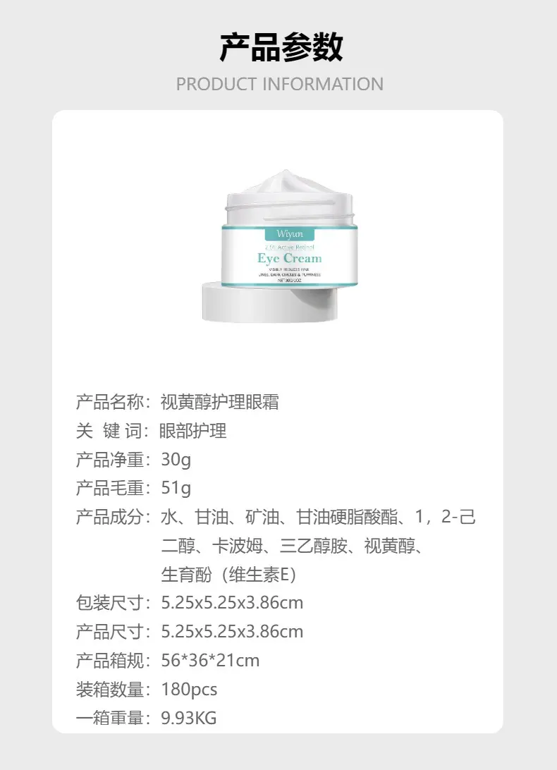 Wiyun Retinol Care Crema para Ojos Nutrición Diaria, Hidratante y Suave Hidratación Cuidado de la Piel del Contorno de Ojos Crema para Ojos