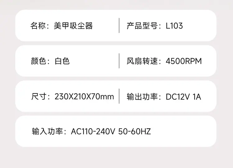 Nail art vacuum cleaner - white (adjustable wind speed)