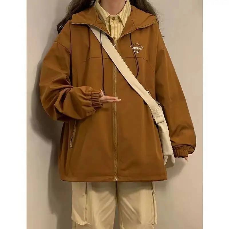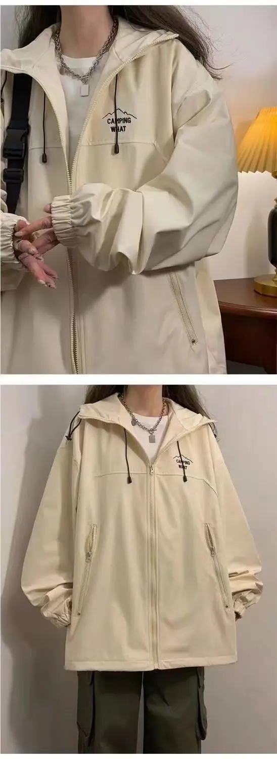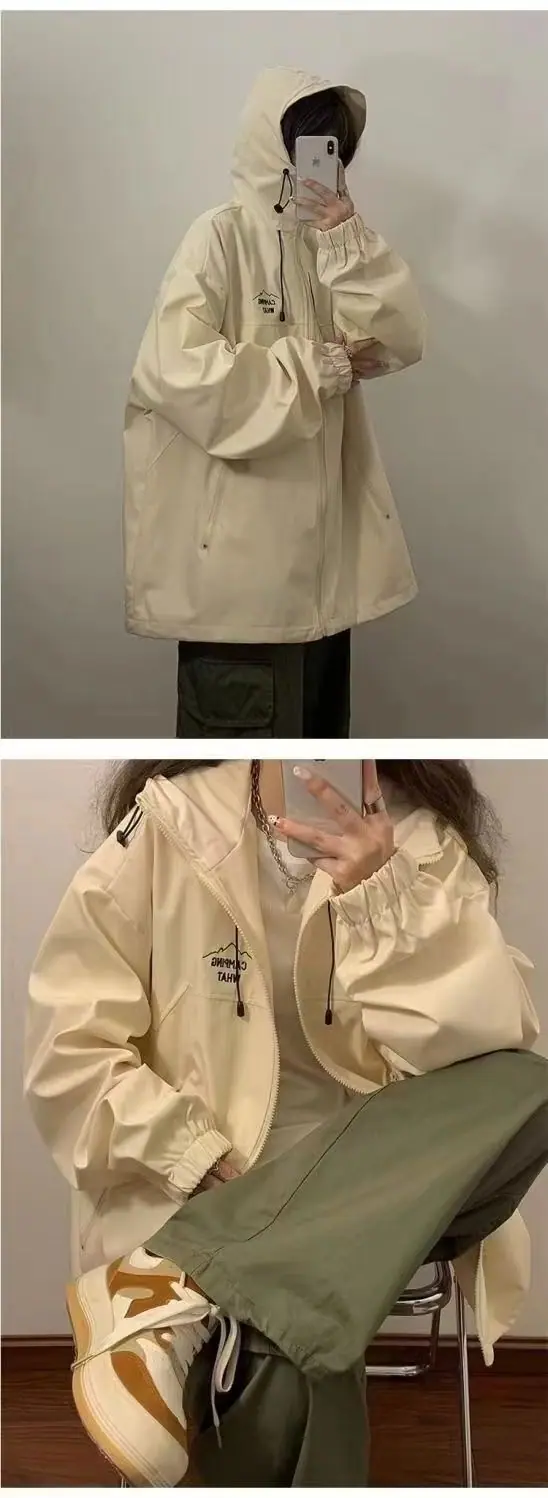 Abrigo cortavientos estilo hot para exteriores holgado protector solar primavera y otoño retro americano primavera y otoño con capucha nueva chaqueta versátil