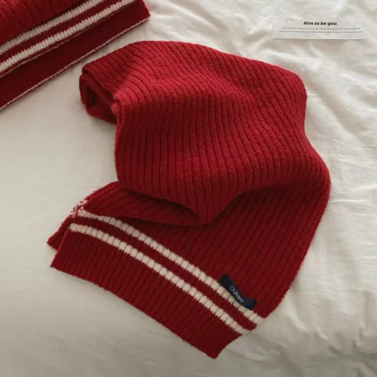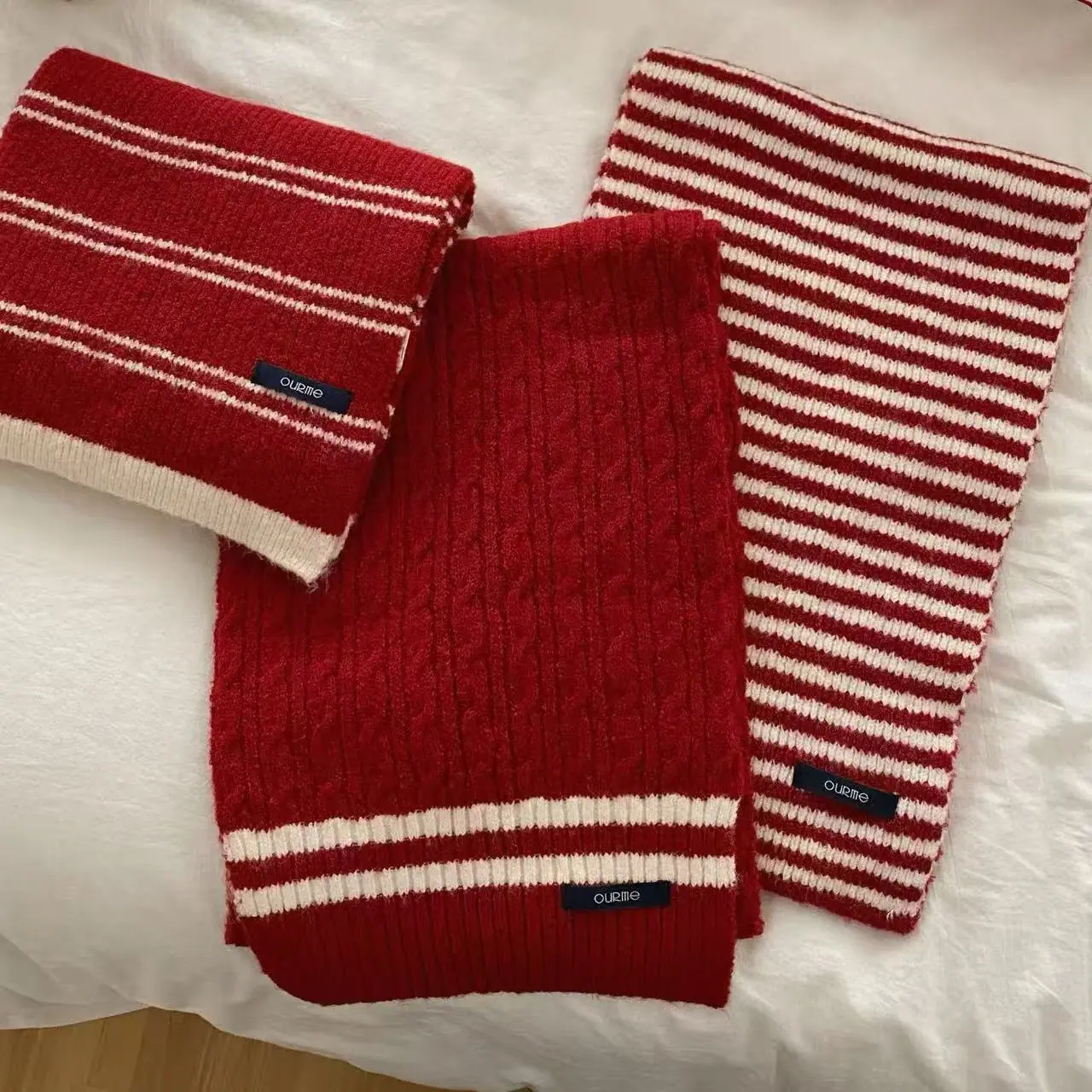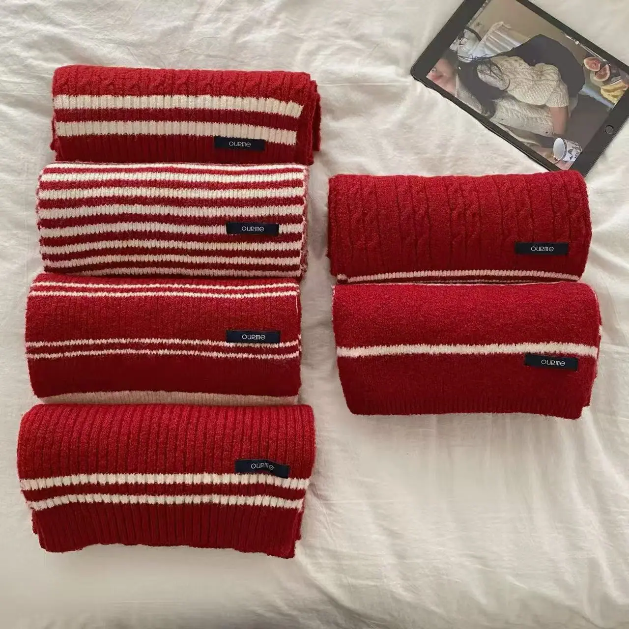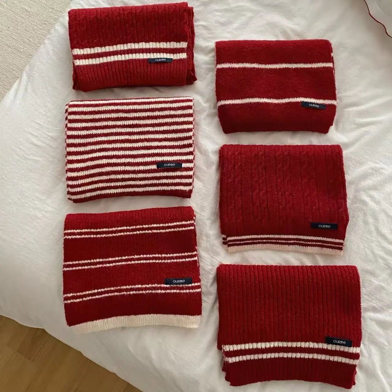 Compra Bufanda de Rayas Retro Serie Roja/ Estilo Preppy para Mujer, Cálida para Invierno, Atmósfera Estudiantil, Bufanda Versátil Estilo Pareja al por mayor en Joom.pro