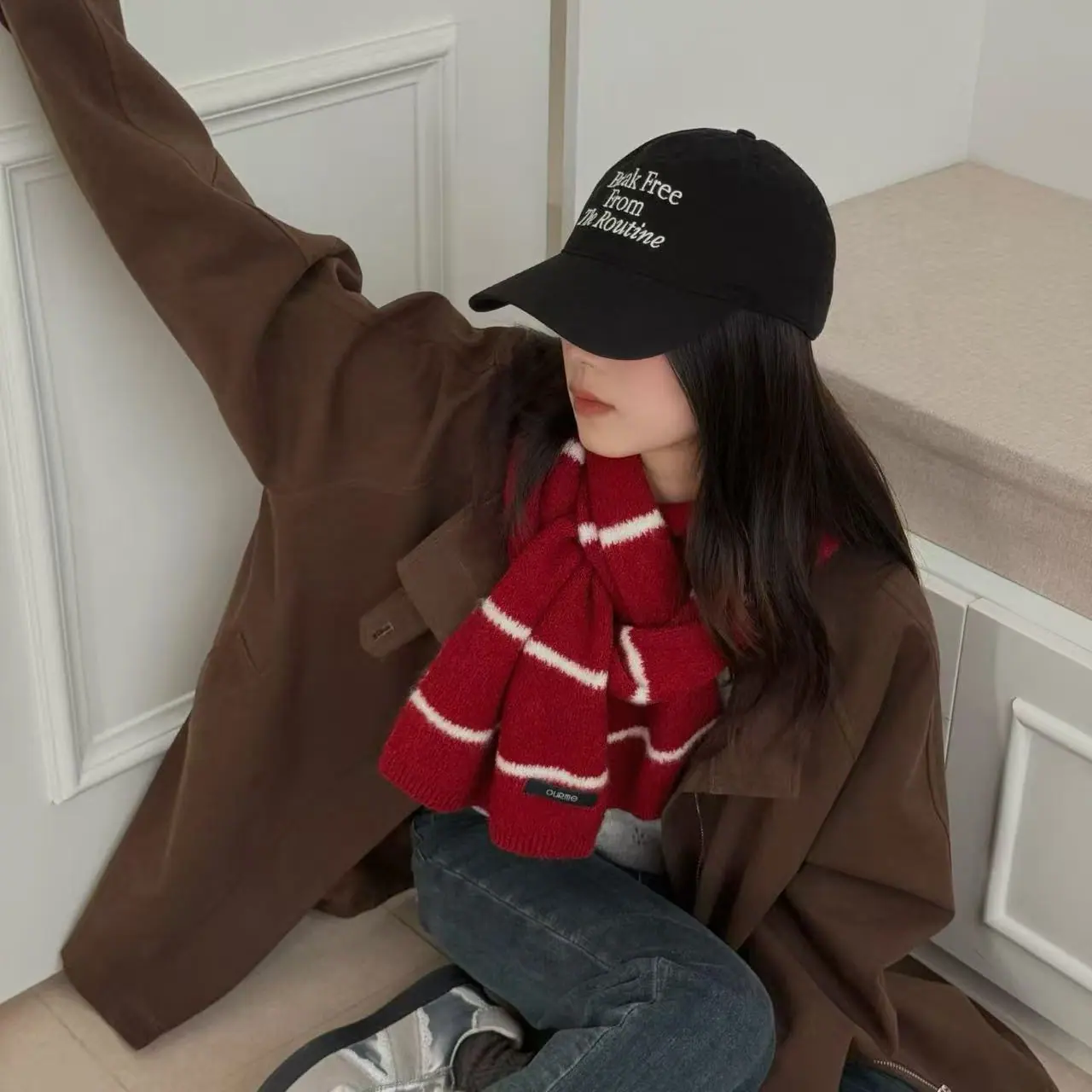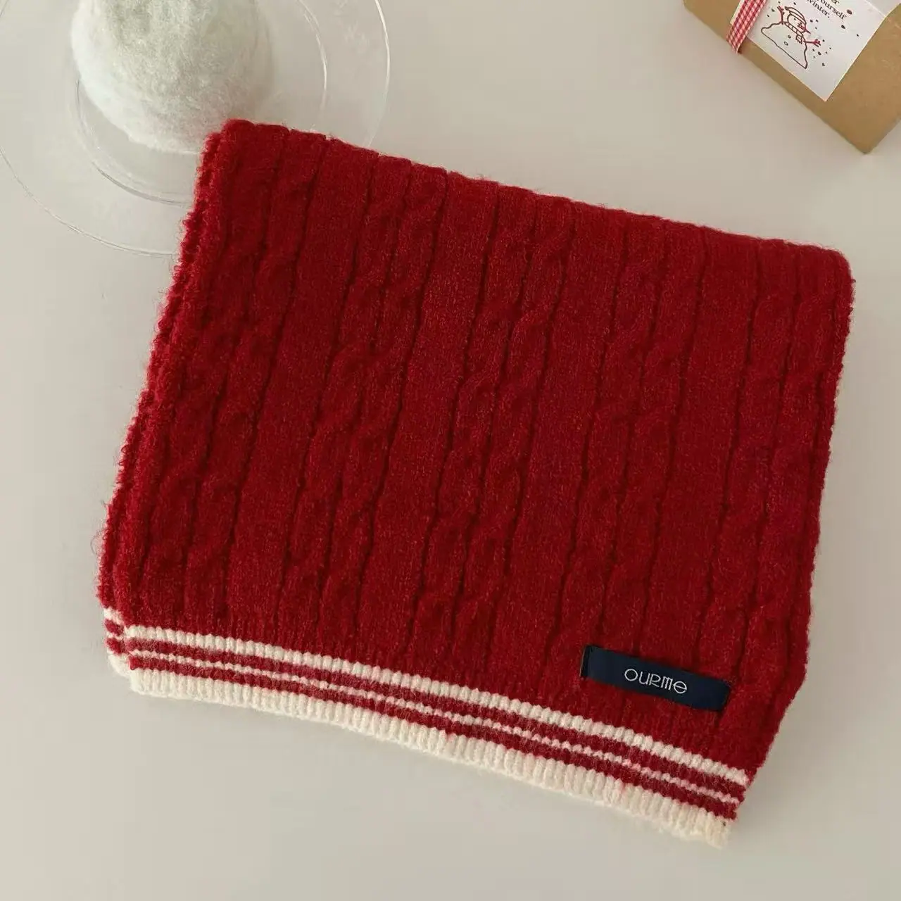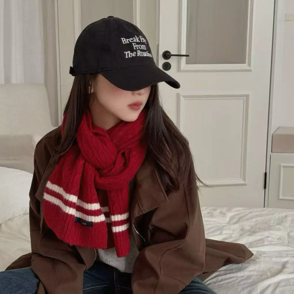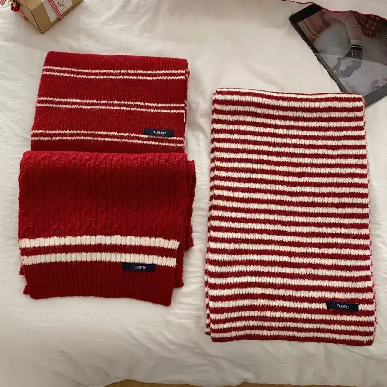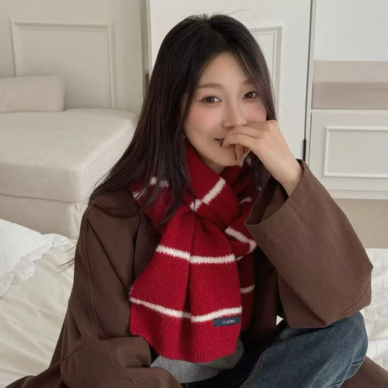 Compra Bufanda de Rayas Retro Serie Roja/ Estilo Preppy para Mujer, Cálida para Invierno, Atmósfera Estudiantil, Bufanda Versátil Estilo Pareja al por mayor en Joom.pro