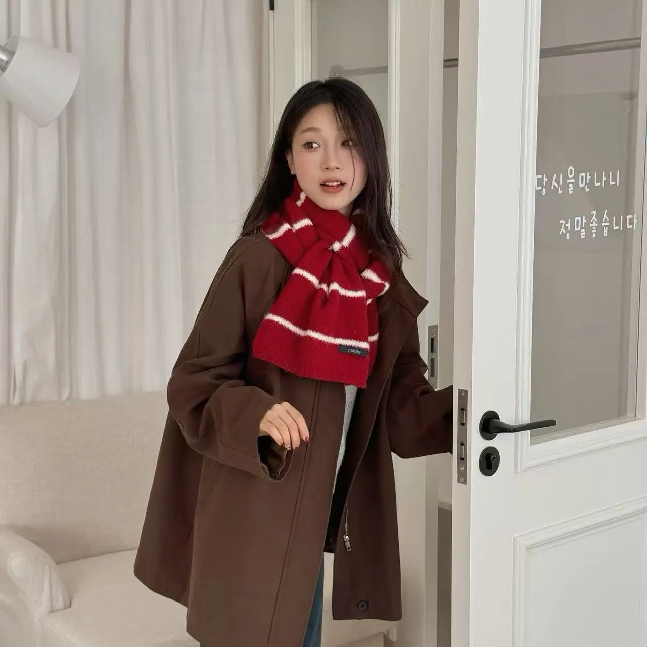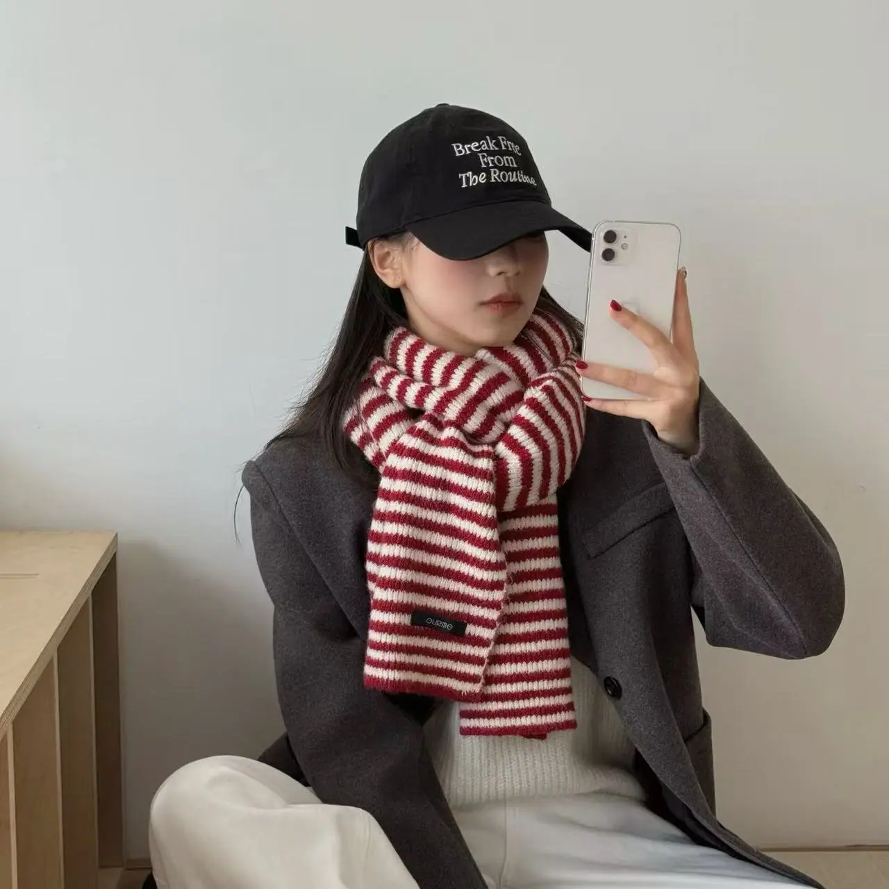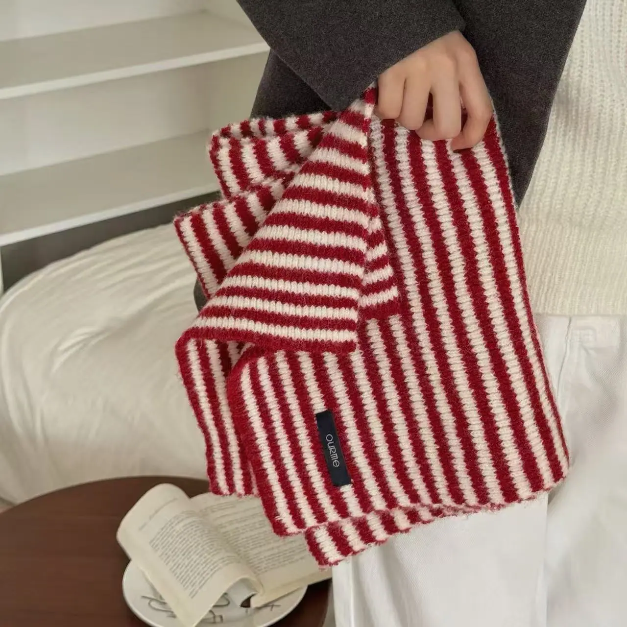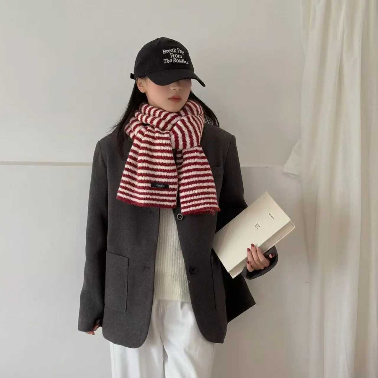 Compra Bufanda de Rayas Retro Serie Roja/ Estilo Preppy para Mujer, Cálida para Invierno, Atmósfera Estudiantil, Bufanda Versátil Estilo Pareja al por mayor en Joom.pro