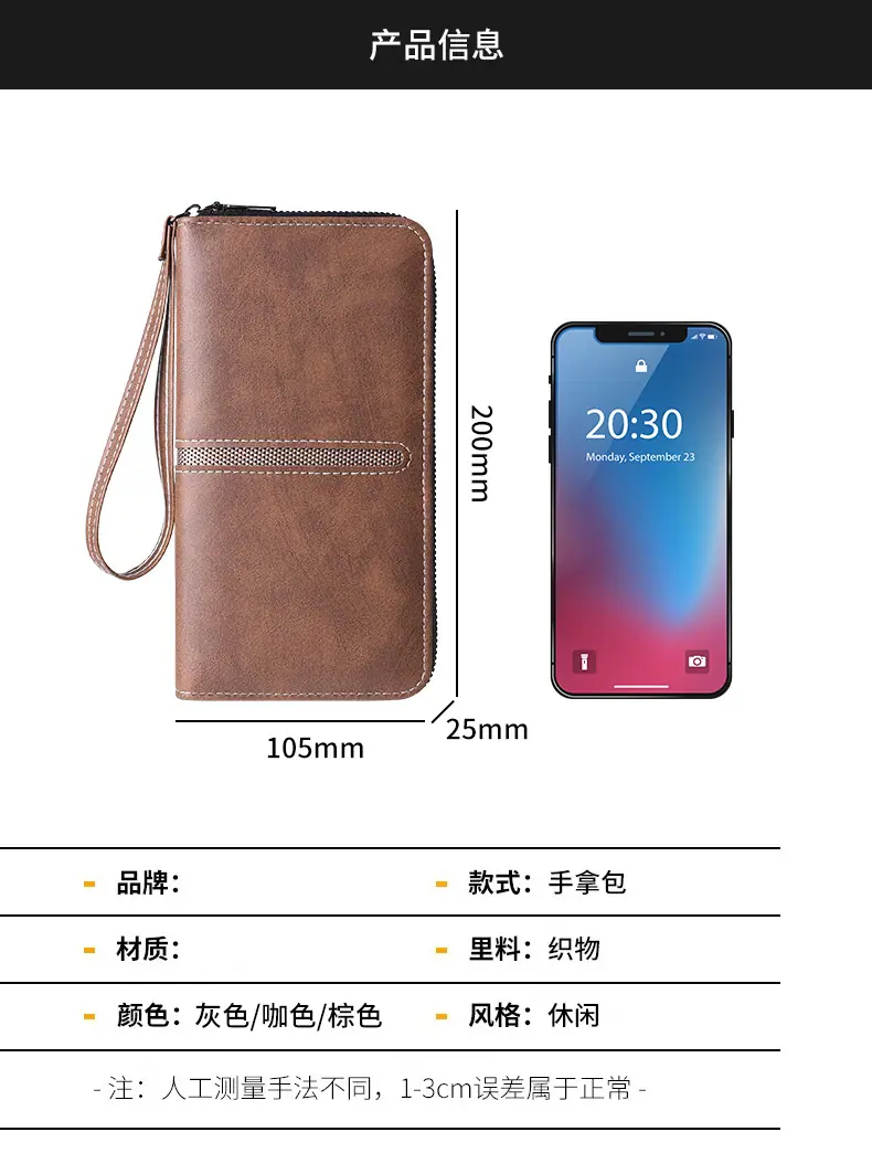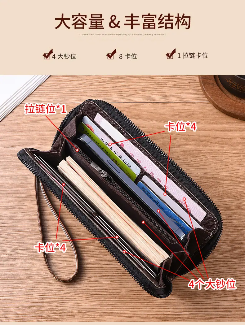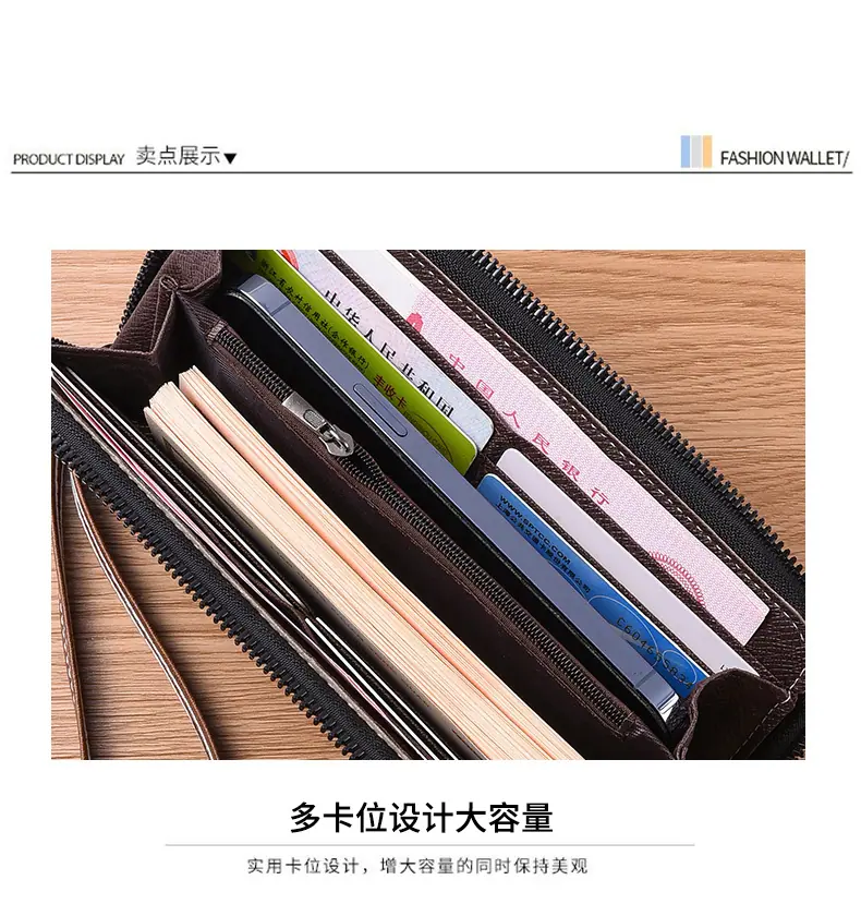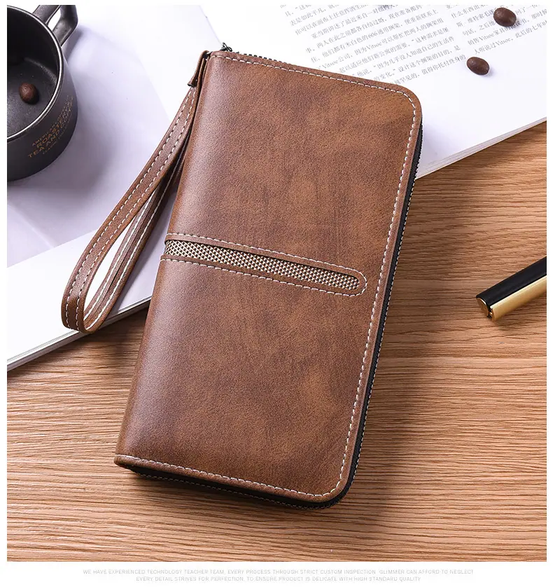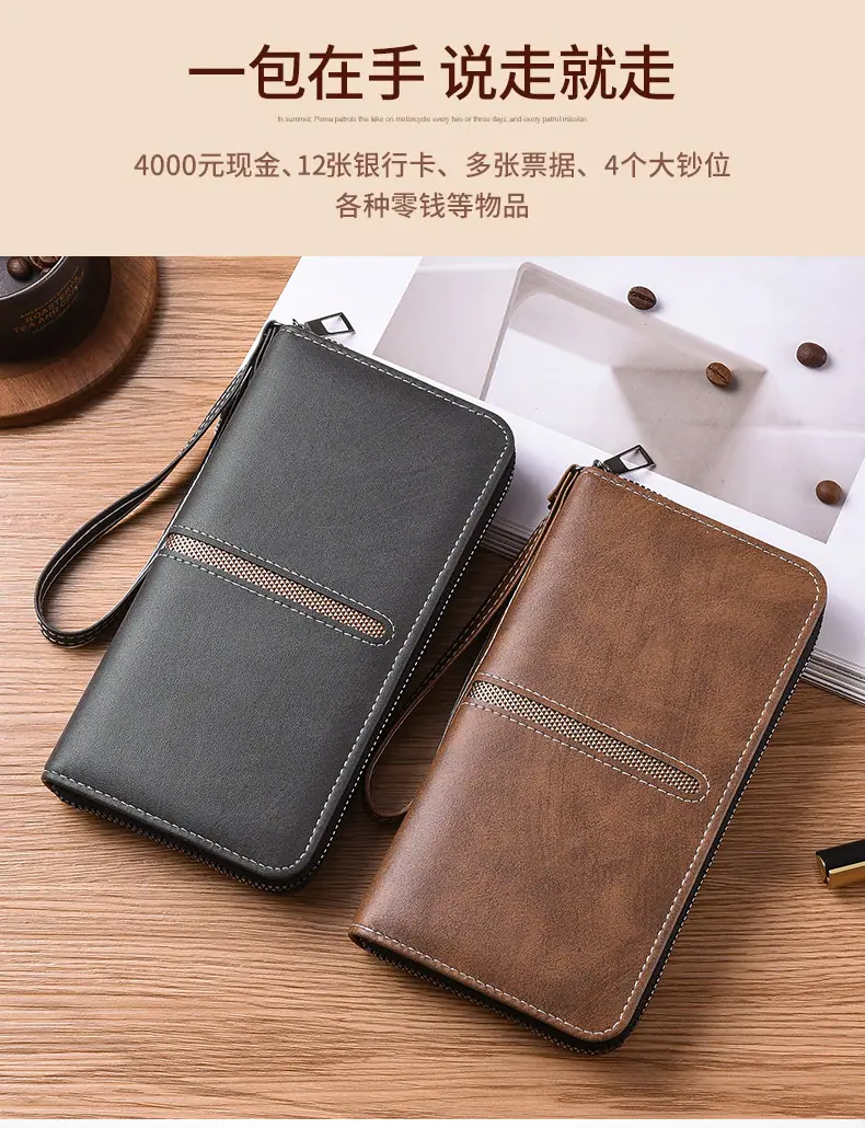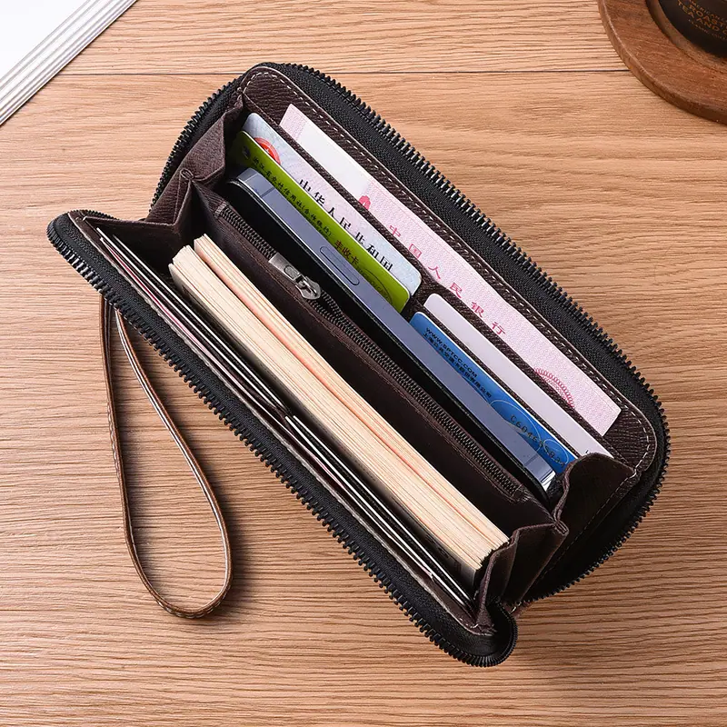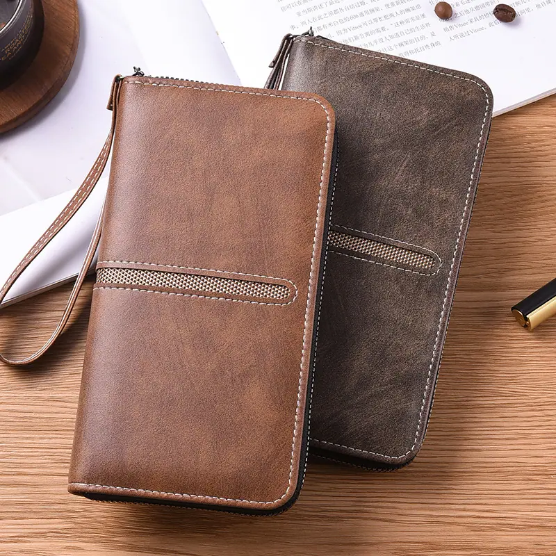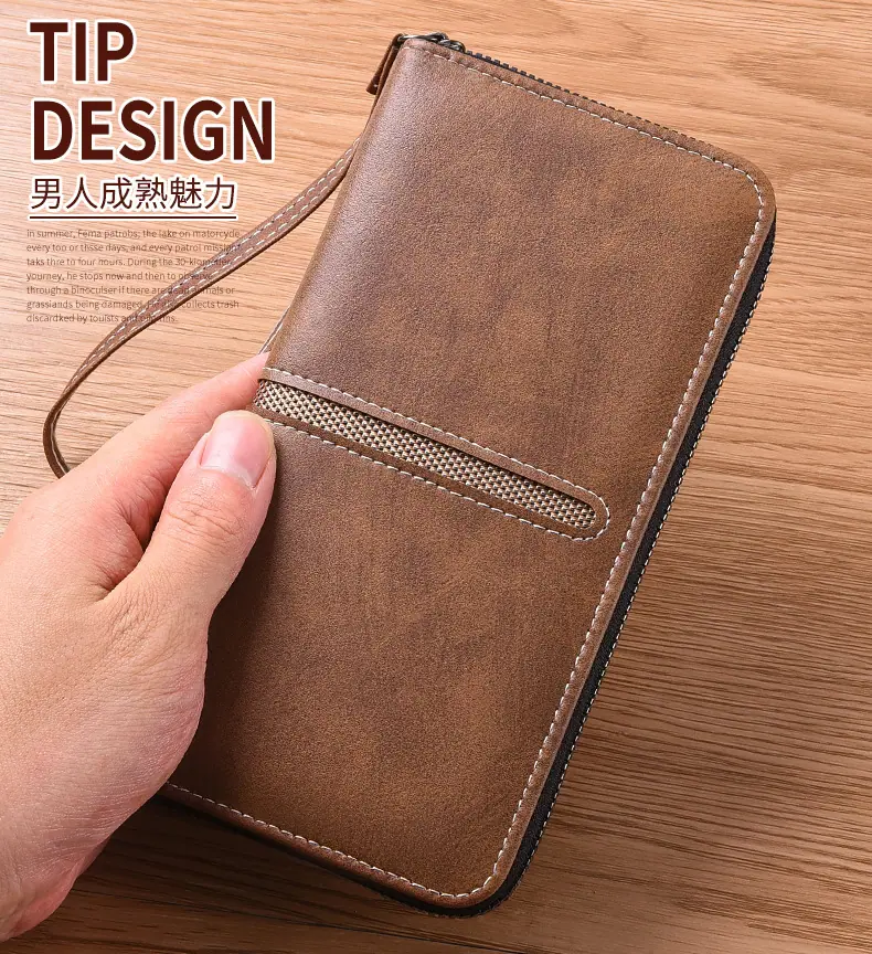 Nueva Cartera Larga de Mano para Hombre con Cremallera, Bolso para Teléfono con Cremallera, Monedero Pequeño con Cremallera, Tarjetero, Gran Capacidad, Clutch de Moda