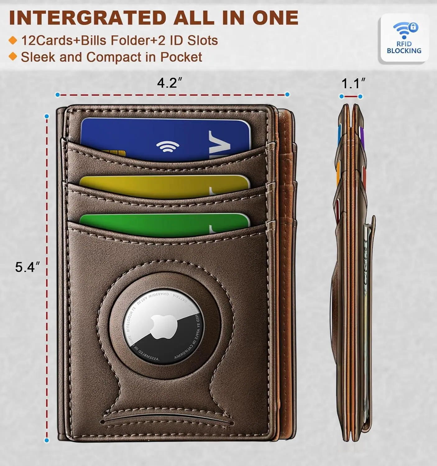 Billetera Multifuncional Personalizada Antirrobo RFID Corta Bi-Fold con Gran Capacidad para Tarjetas, Portátil de Cuero Genuino, Billetera de Negocios para Hombre