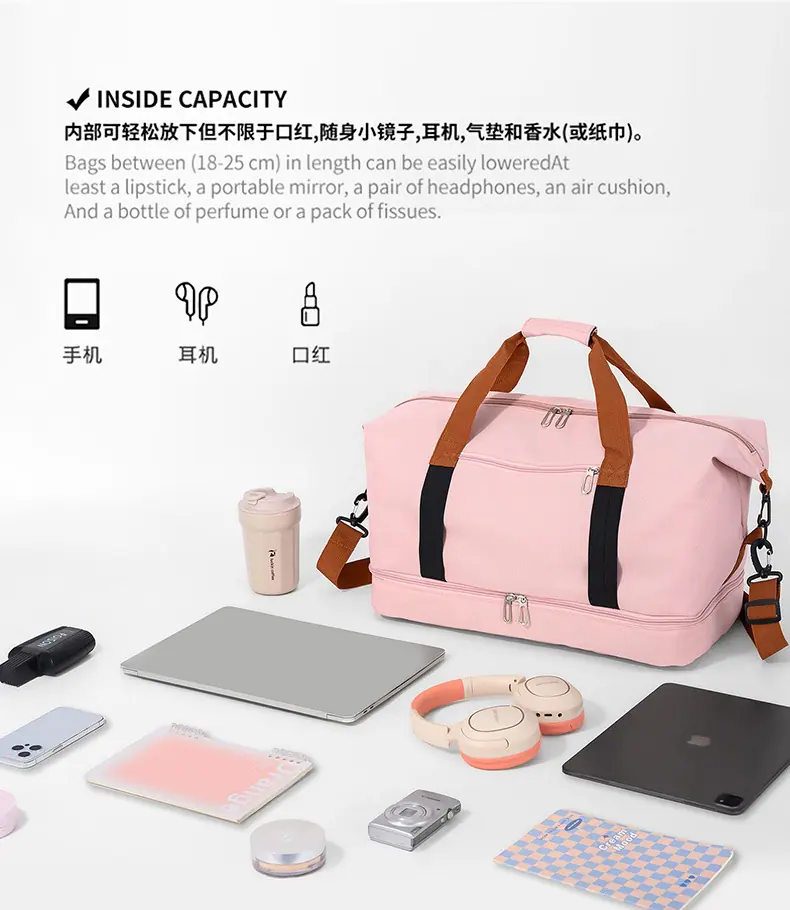 Bolsa de viaje transfronteriza para mujer, bolso de mano estilo coreano, bolsa de equipaje para corta distancia, para hombre, de gran capacidad, ligera, con separación seca y húmeda, bolsa deportiva para fitness