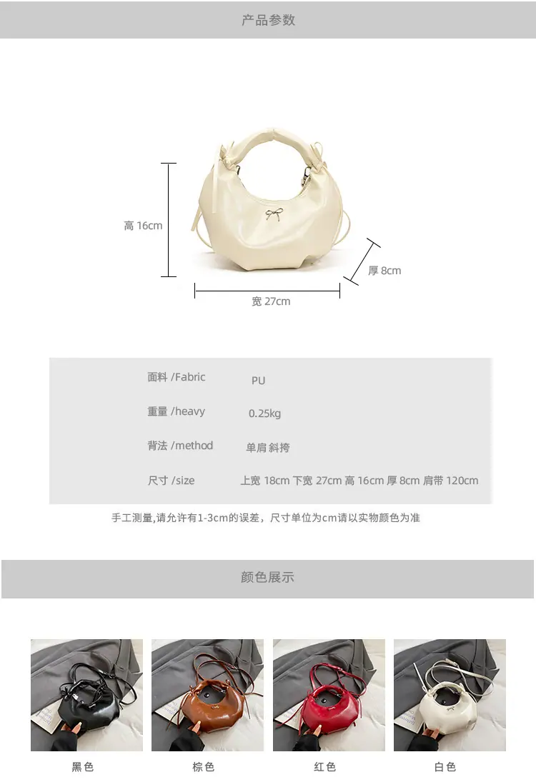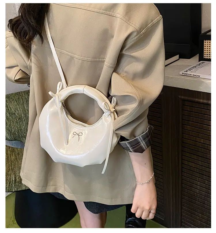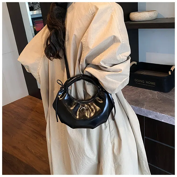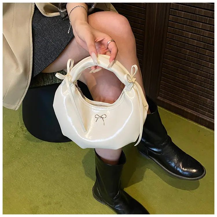 Temperamental Nicho Lazo Bolso de Mano Dumpling para Mujer 2025 Nuevo Verano de Alta Gama Casual a la Moda Bolso de Hombro
