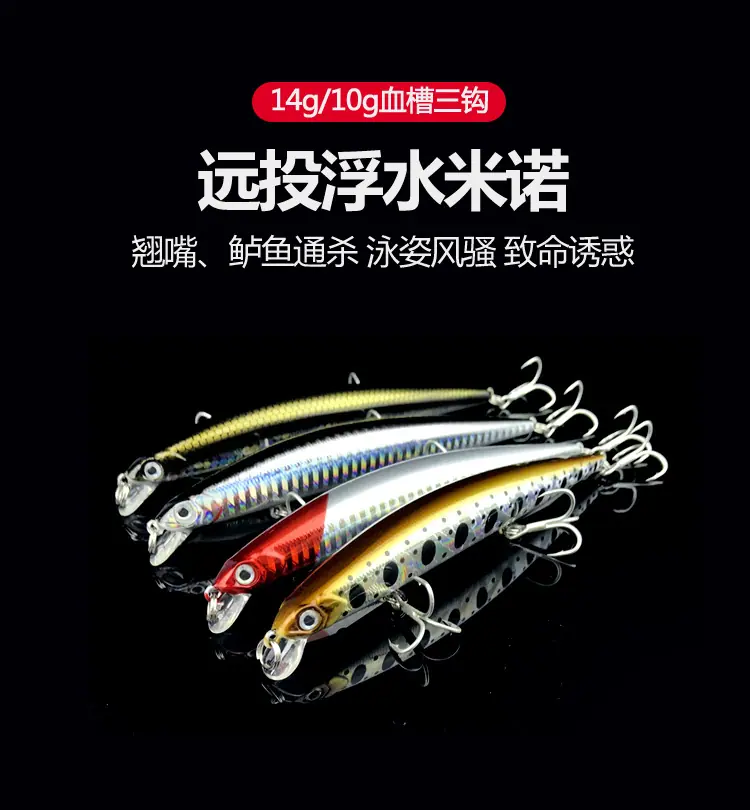 Lanzamiento lejano 12-39 Mino Cebo Flotante para Agua de Hundimiento Lento Cebo Falso Agua Dulce Lubina Gallo Pez Pesca Marítima Lubina