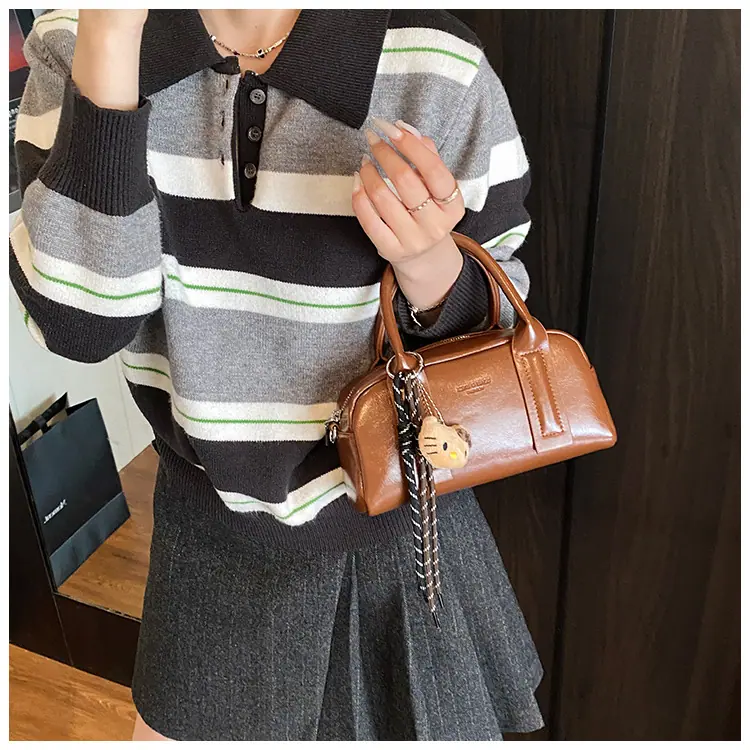 2025 Otoño Nuevo Bolso de Mano para Ir al Trabajo Moda Simple Bolso de Hombro Cruzado para Mujer Bolso Bowling Boston