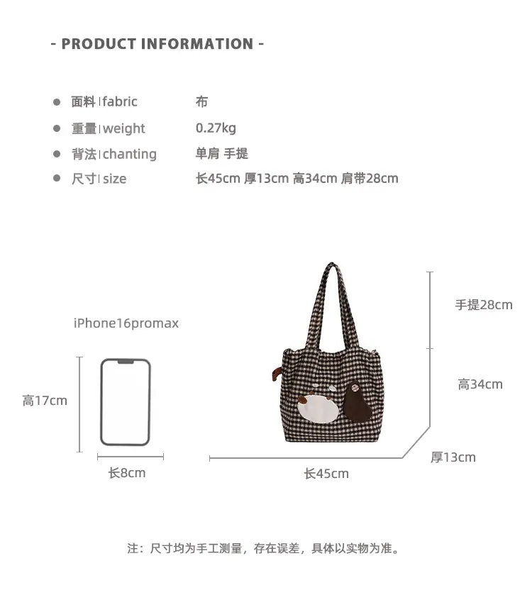 Bolso de mano de dibujos animados de niña linda estilo ins japonés, casual versátil, bolso de hombro para estudiante, bolso tote de gran capacidad