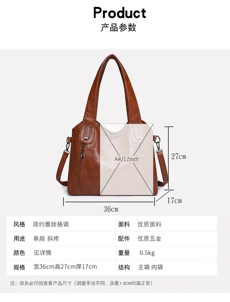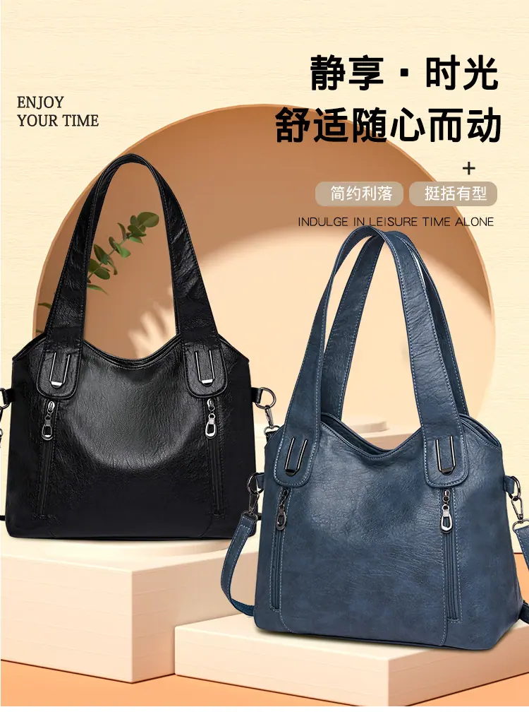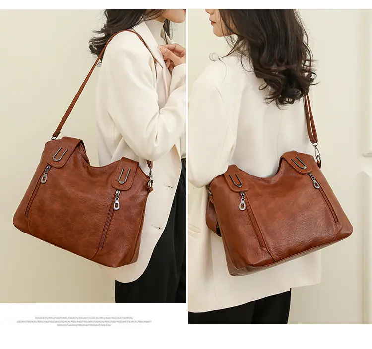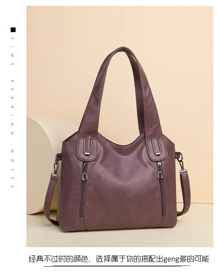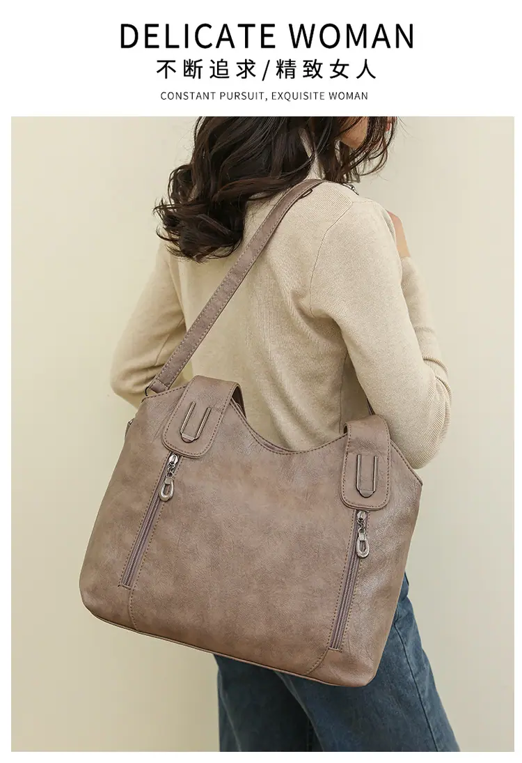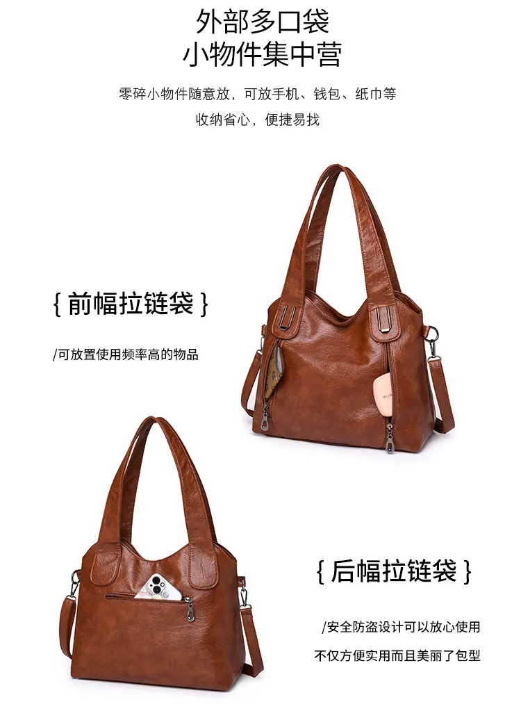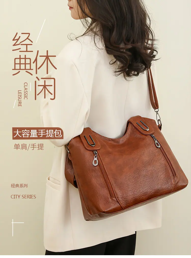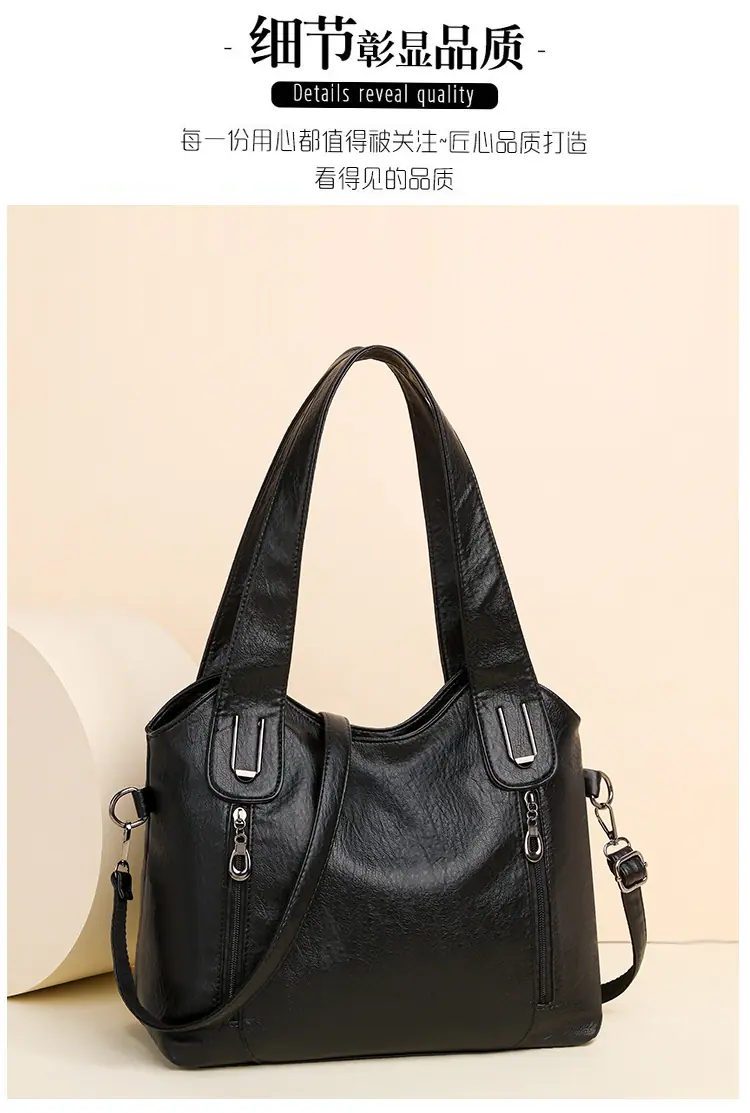 Bolso nuevo para mujer 2023 para mediana edad y ancianas, de gran capacidad, de hombro, portátil, tipo bandolera, moderno, combinable con todo, de cuero suave, bolso de madre, estilo occidental