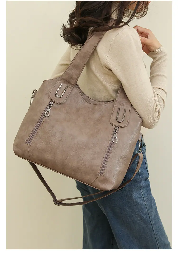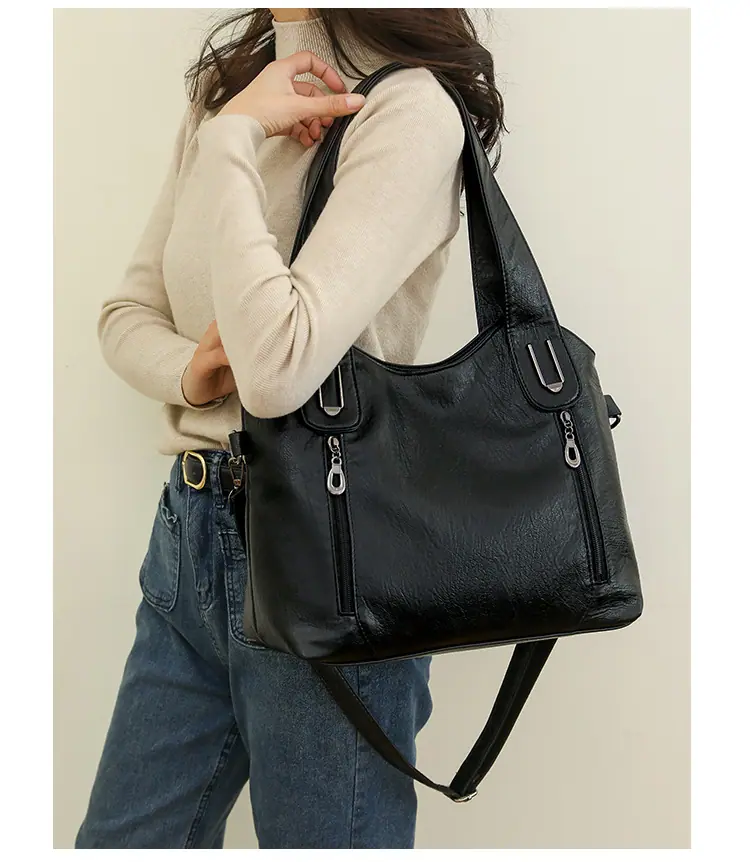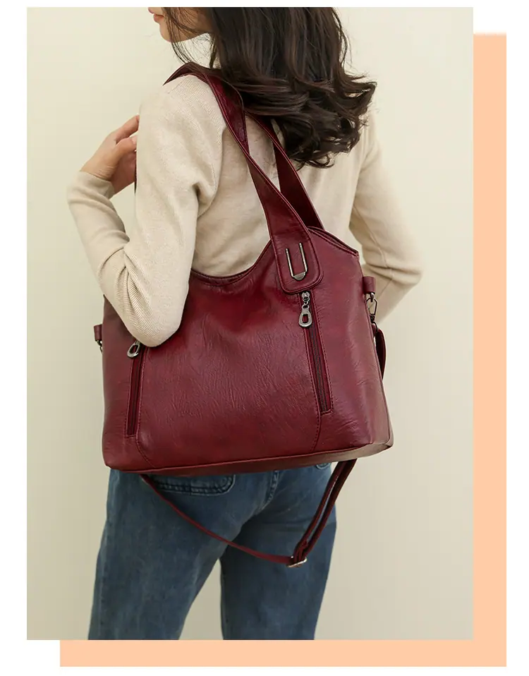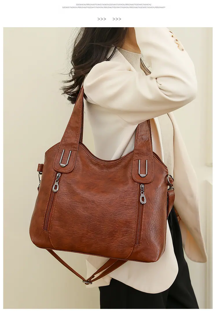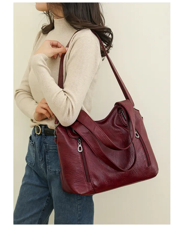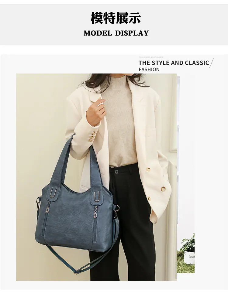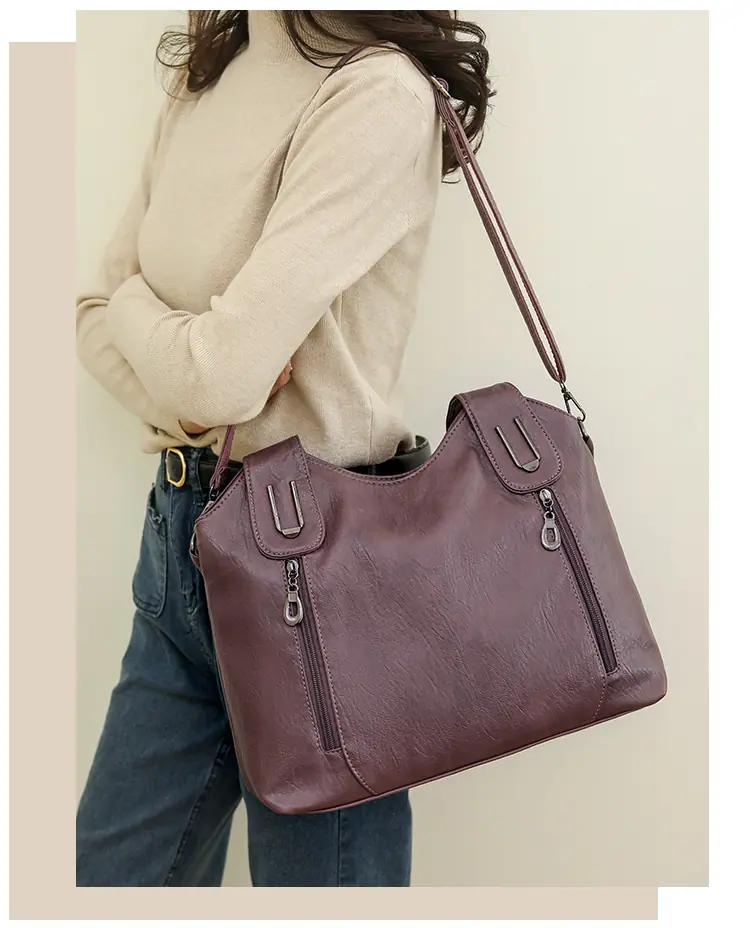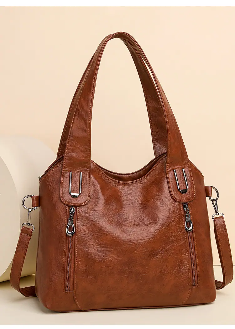 Bolso nuevo para mujer 2023 para mediana edad y ancianas, de gran capacidad, de hombro, portátil, tipo bandolera, moderno, combinable con todo, de cuero suave, bolso de madre, estilo occidental