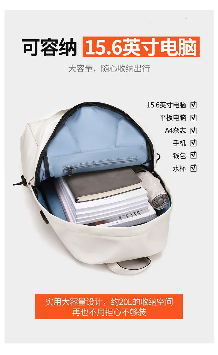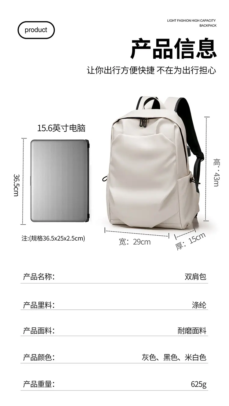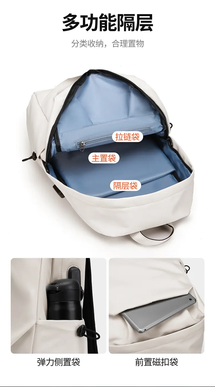 Mochila Casual Unisex Minimalista de Color Sólido para Trabajo, Desplazamiento, Viaje de Negocios, Viaje, Gran Capacidad, Impermeable, para Laptop