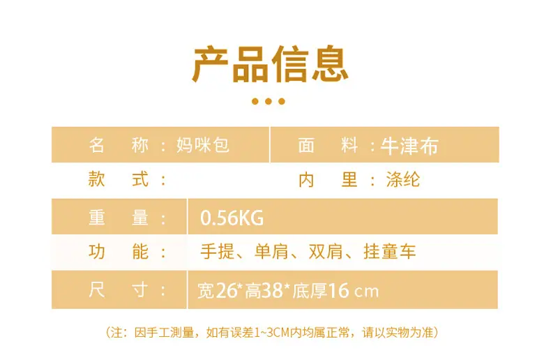 Bolsa de momia madre y bebé bolsa de madre transfronteriza nueva moda multifuncional de gran capacidad mochila ligera para salir