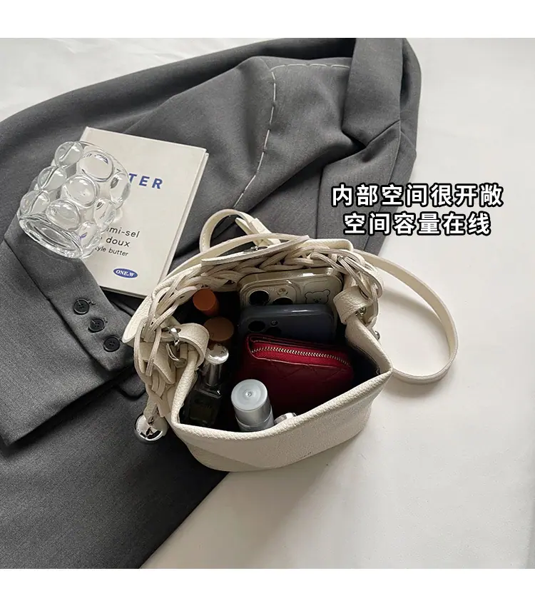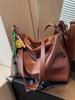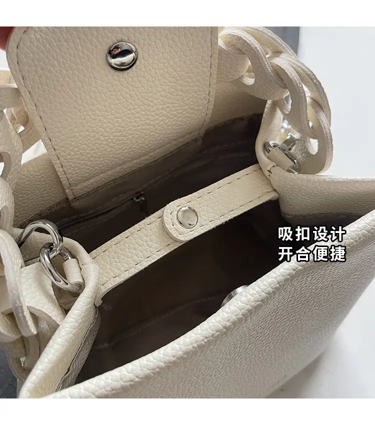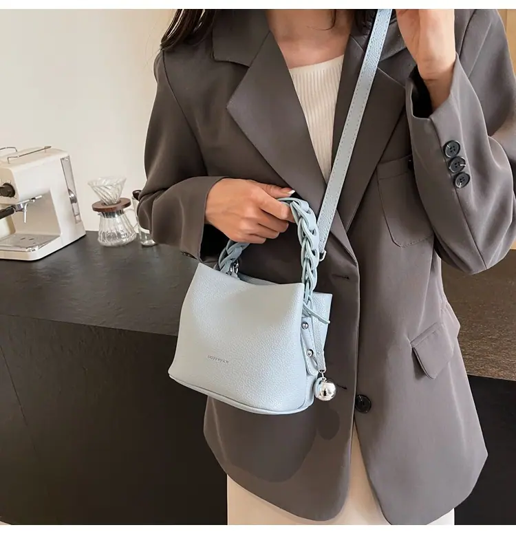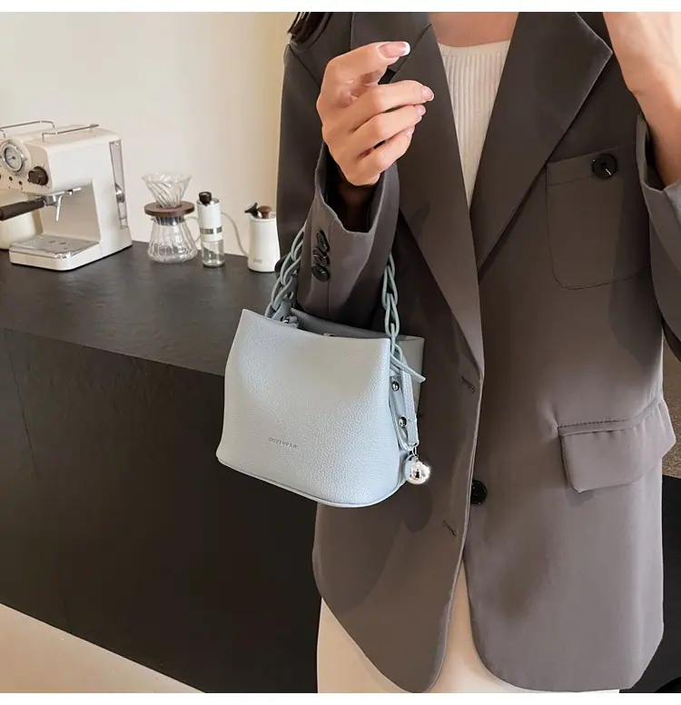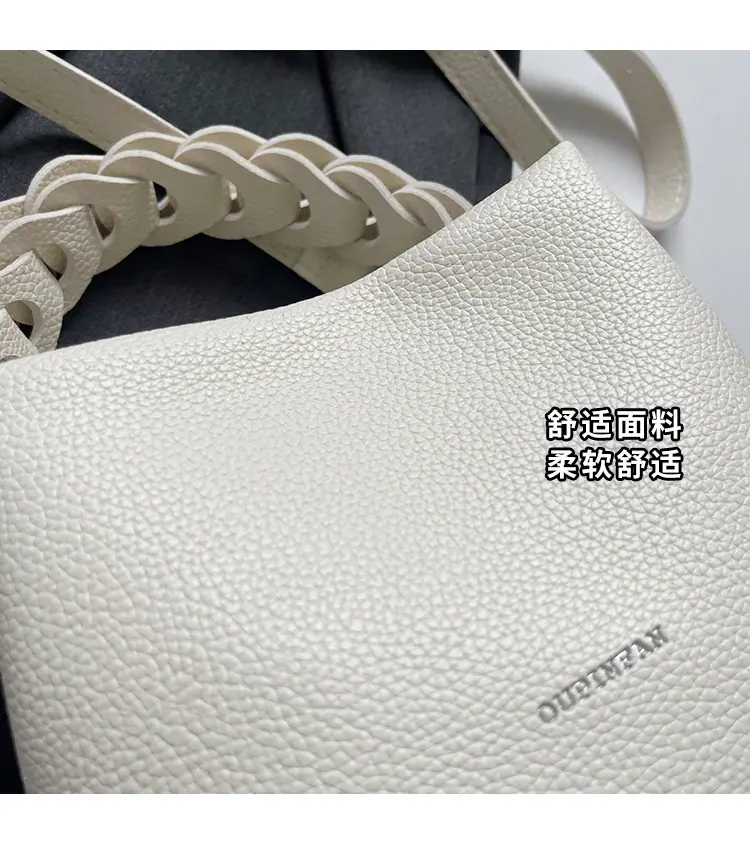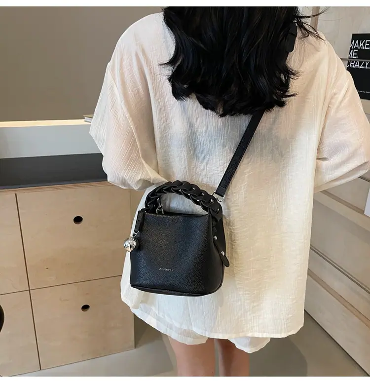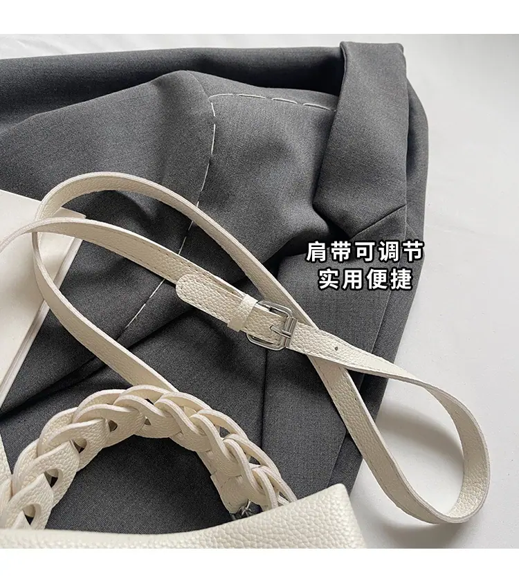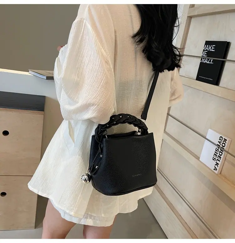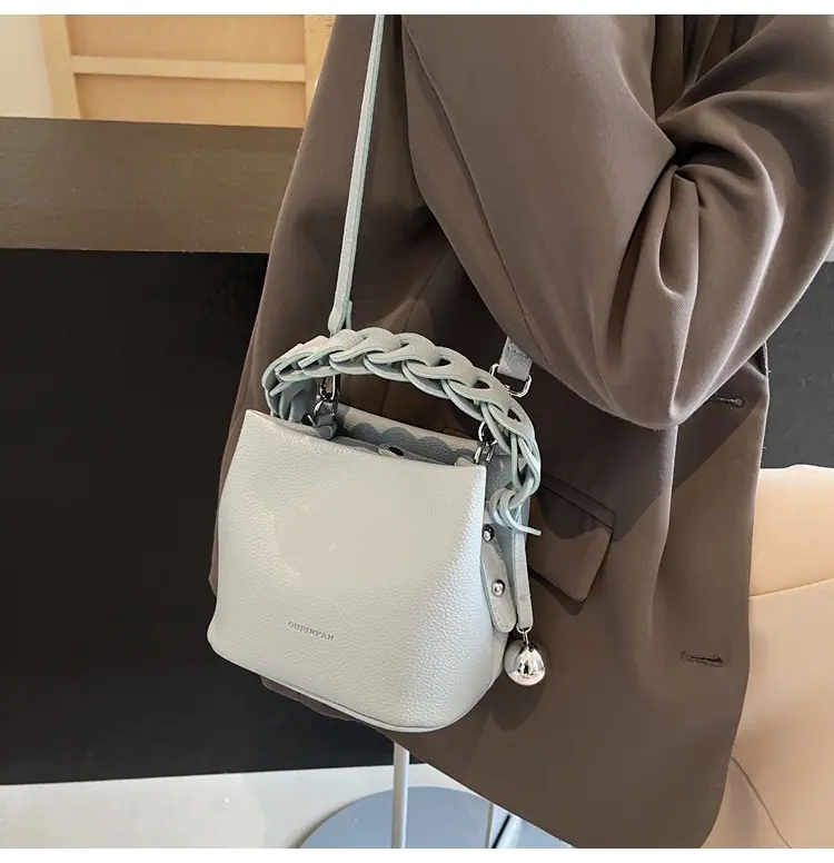 Bolso tote tipo cubo tejido transfronterizo 2025 nuevo estilo coreano cuero suave patrón lichi gran capacidad un solo hombro bandolera moderno