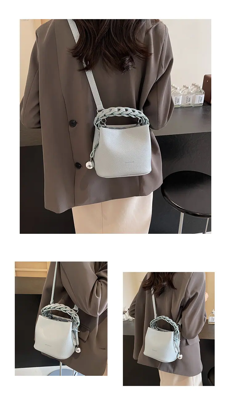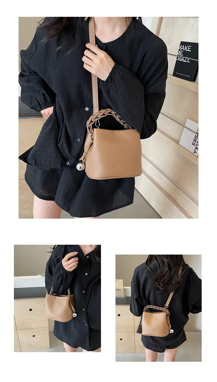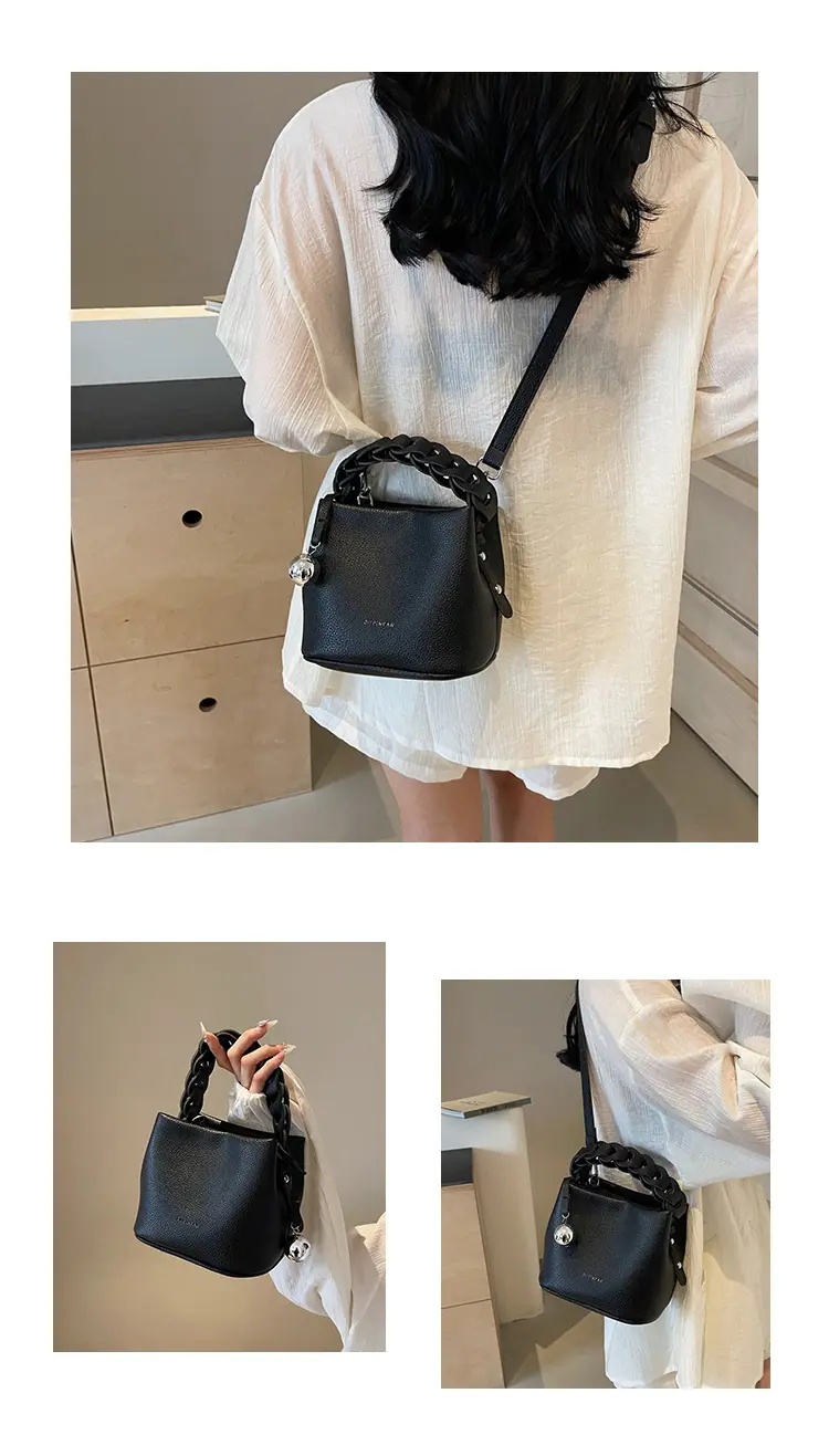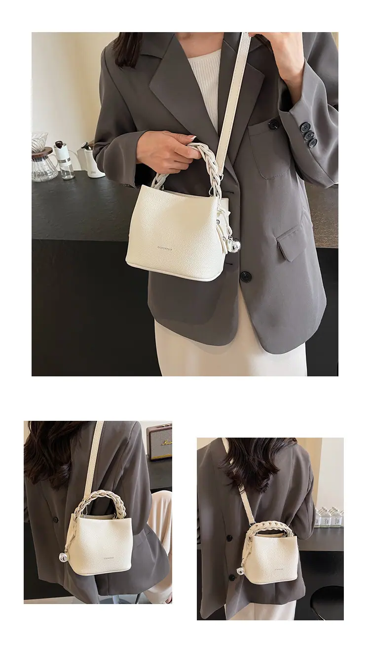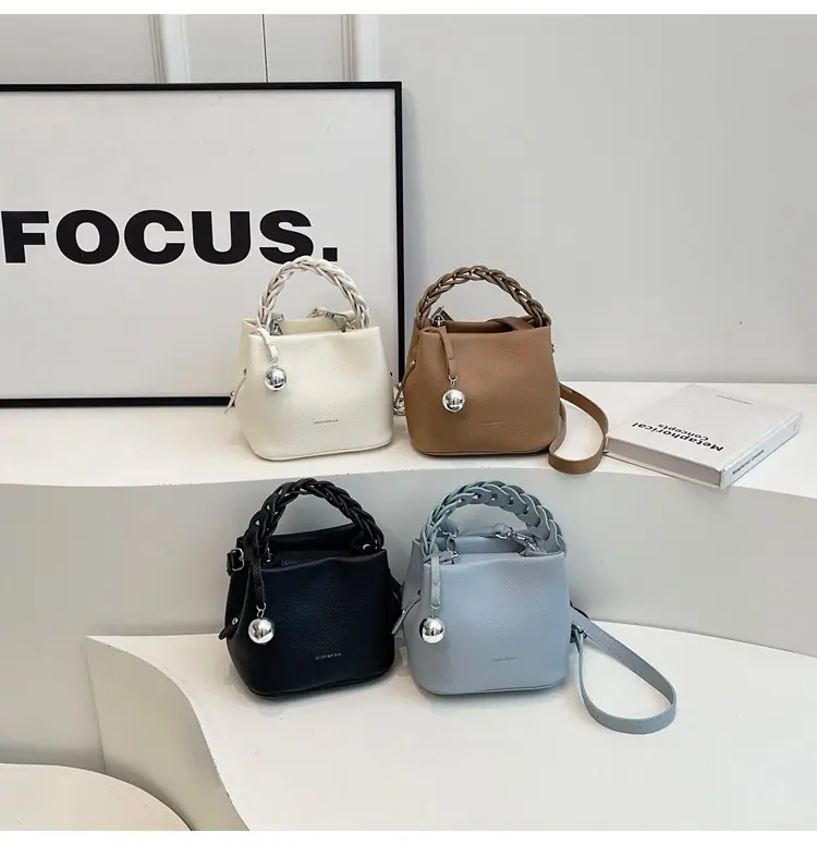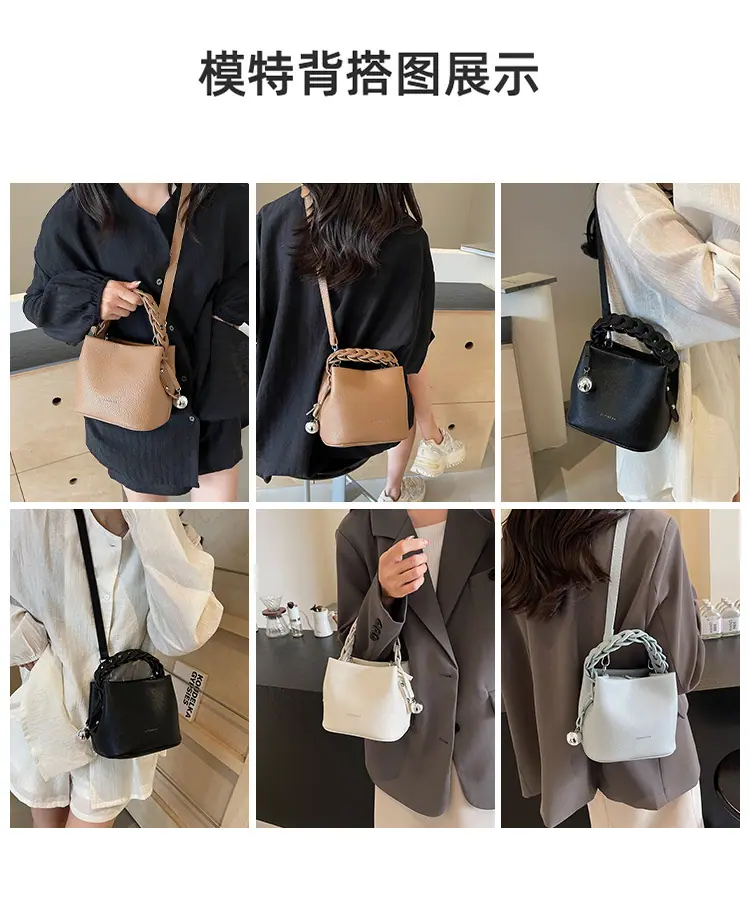 Bolso tote tipo cubo tejido transfronterizo 2025 nuevo estilo coreano cuero suave patrón lichi gran capacidad un solo hombro bandolera moderno