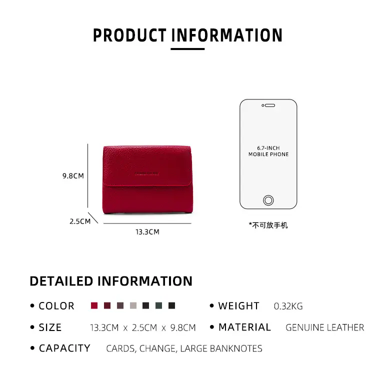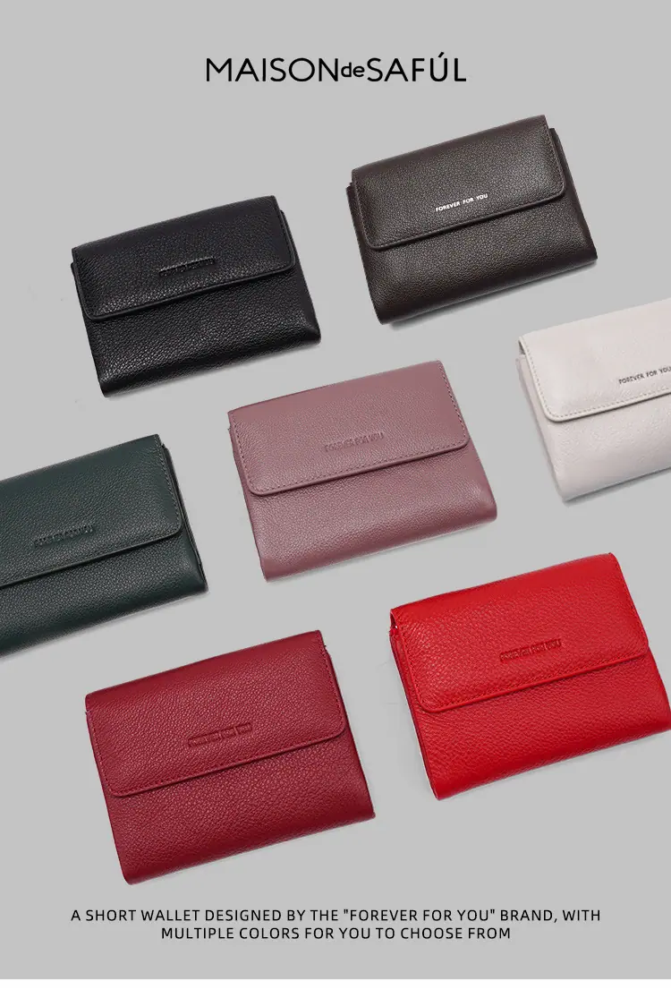 Bolso de Mujer Billetera de Cuero Genuino Transfronterizo Estilo Corto para Mujer Cuero Vacuno de Capa Superior de Alta Gama Billetera ins Monedero Bolso de Billetera