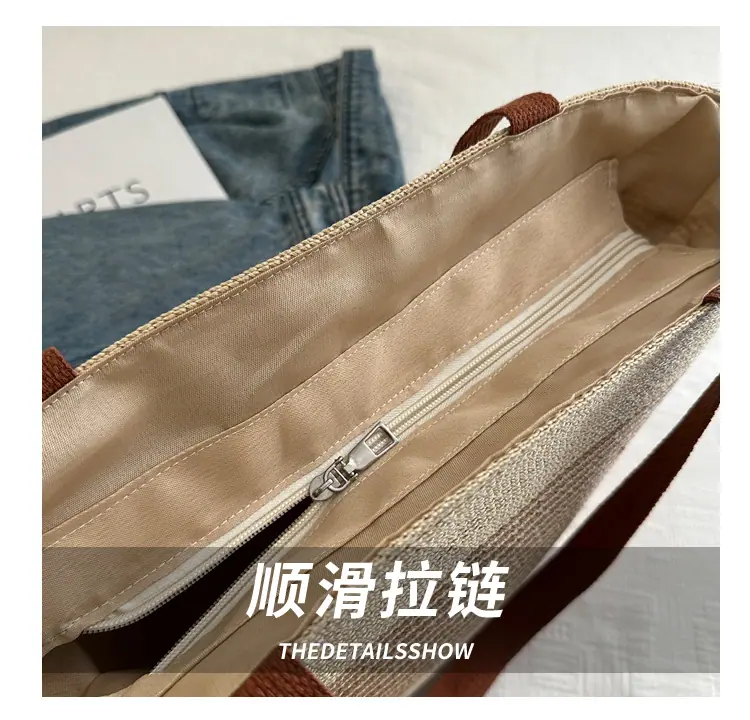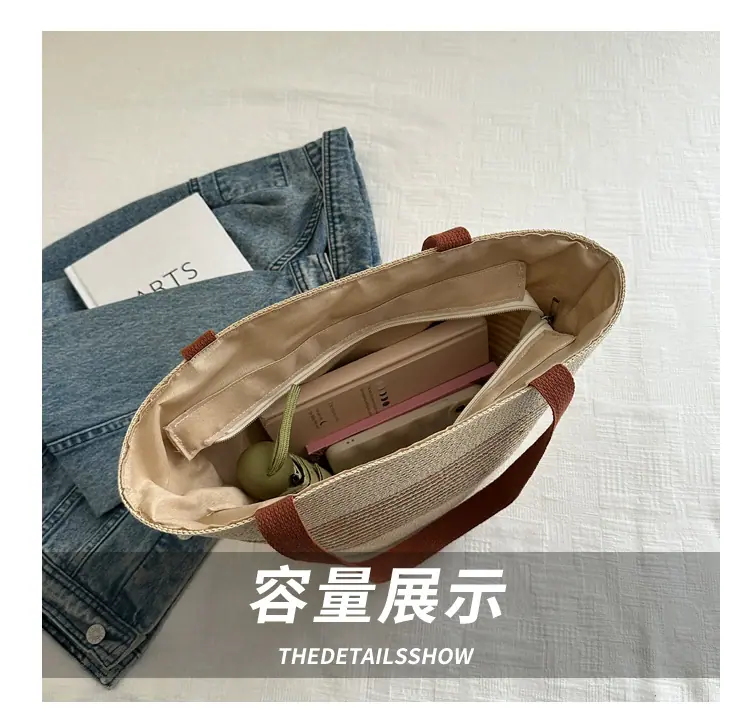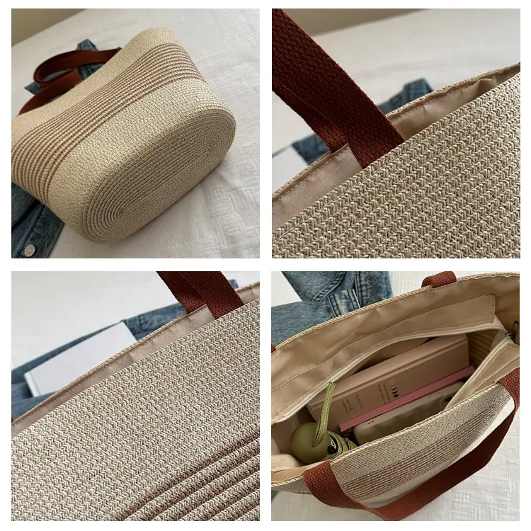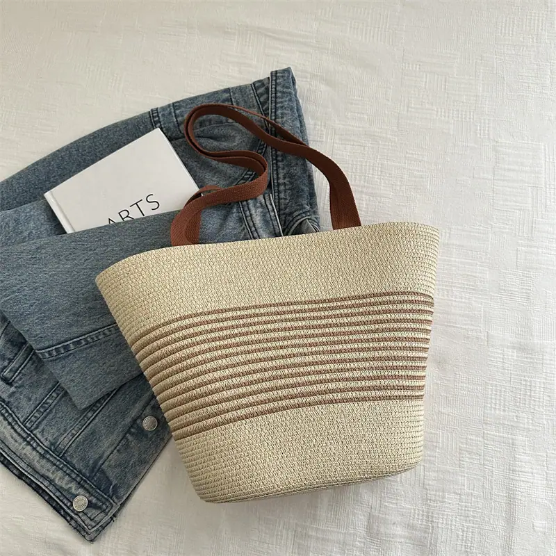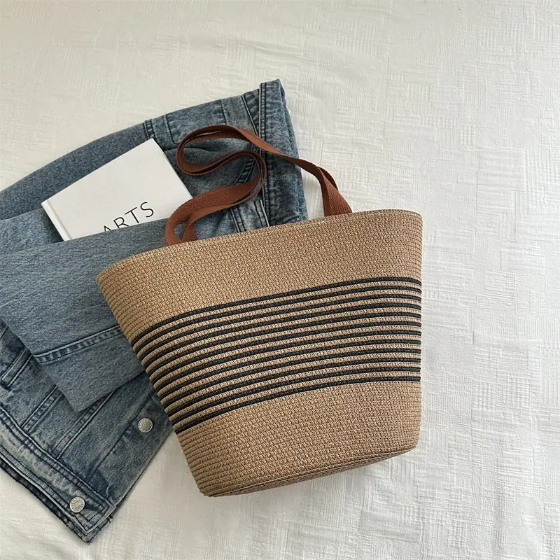Bolso de Paja Tejida de Moda al Por Mayor Bolso de Mano de Verano para Mujer Bolso Tote Tejido de Gran Capacidad Bolso de Hombro Tejido Playa Ratán Tejido Bolso Cubo