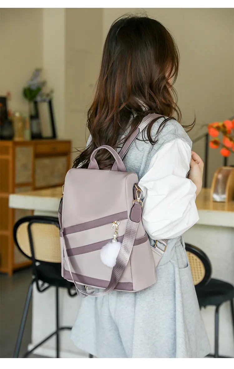 Bolso de Hombro para Mujer 2025 Nuevo Estilo Simple Color Contrastante Mochila Casual para Viaje de Gran Capacidad Antirrobo Mochila para Mujer