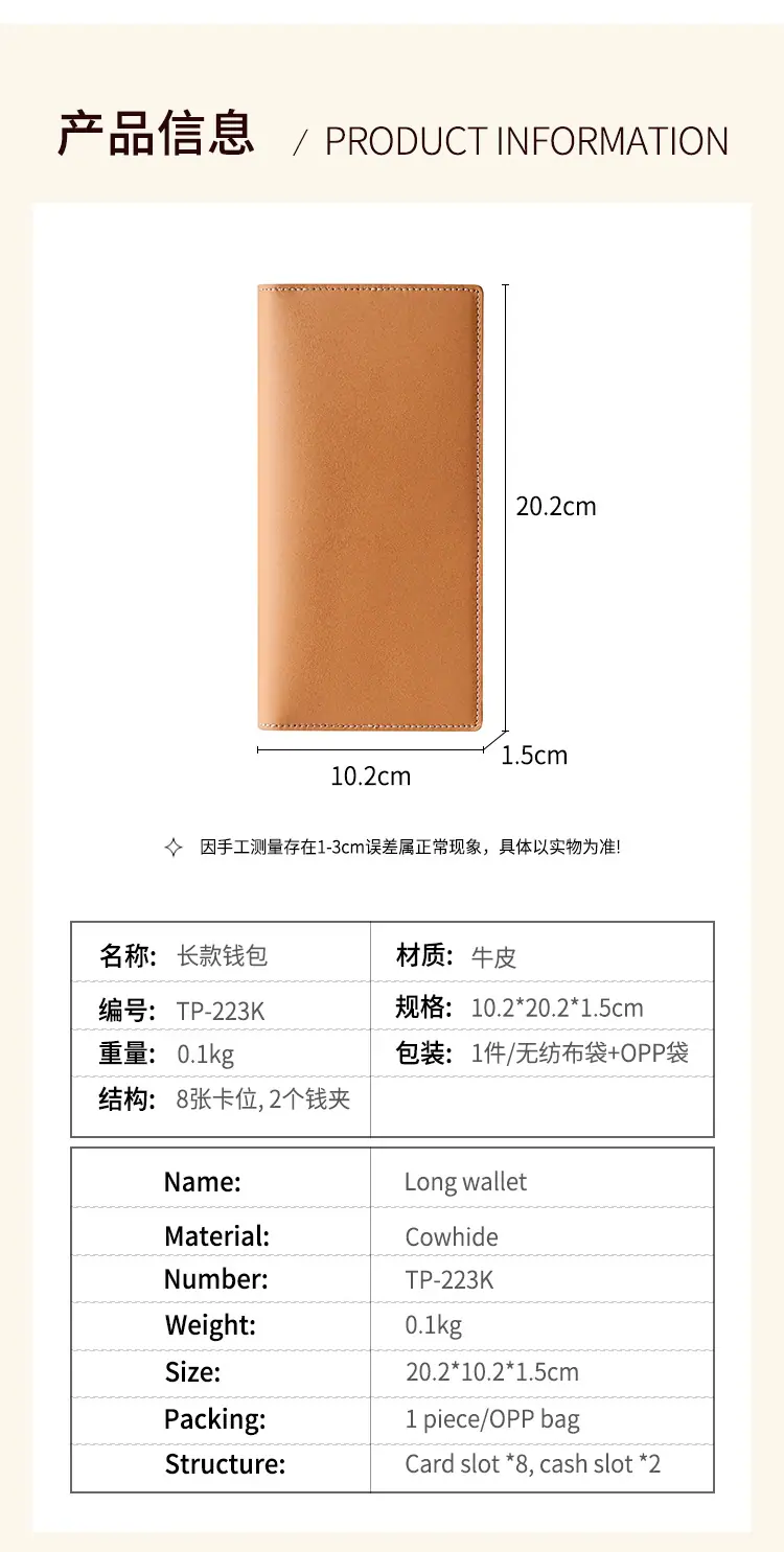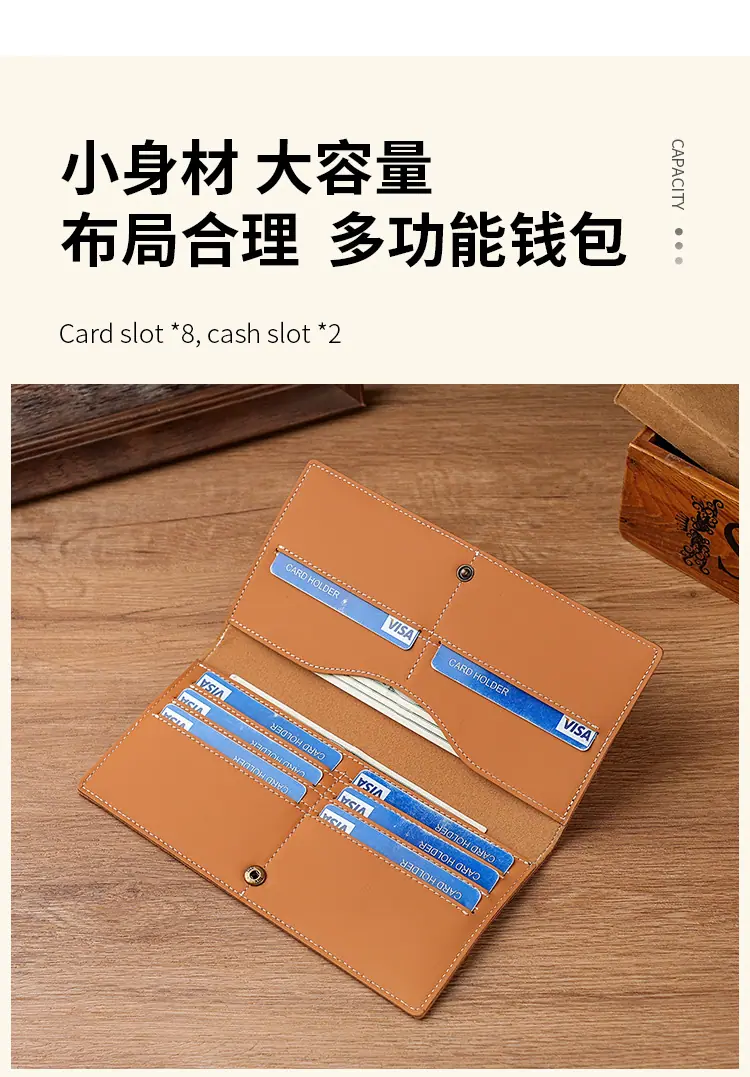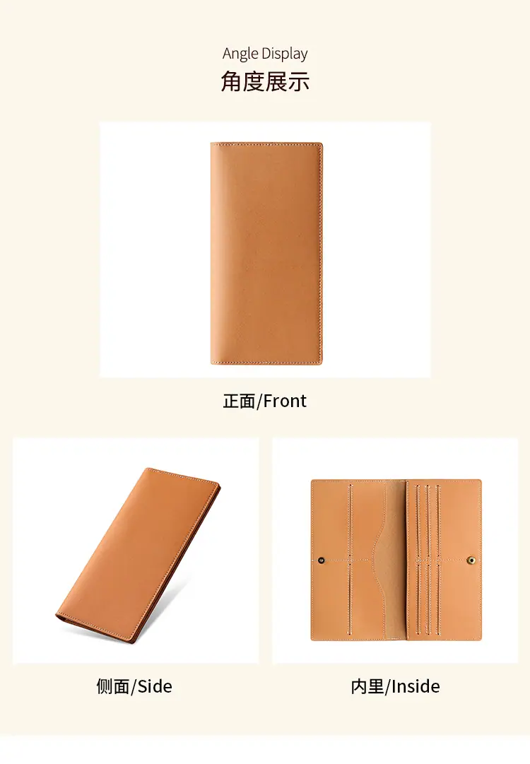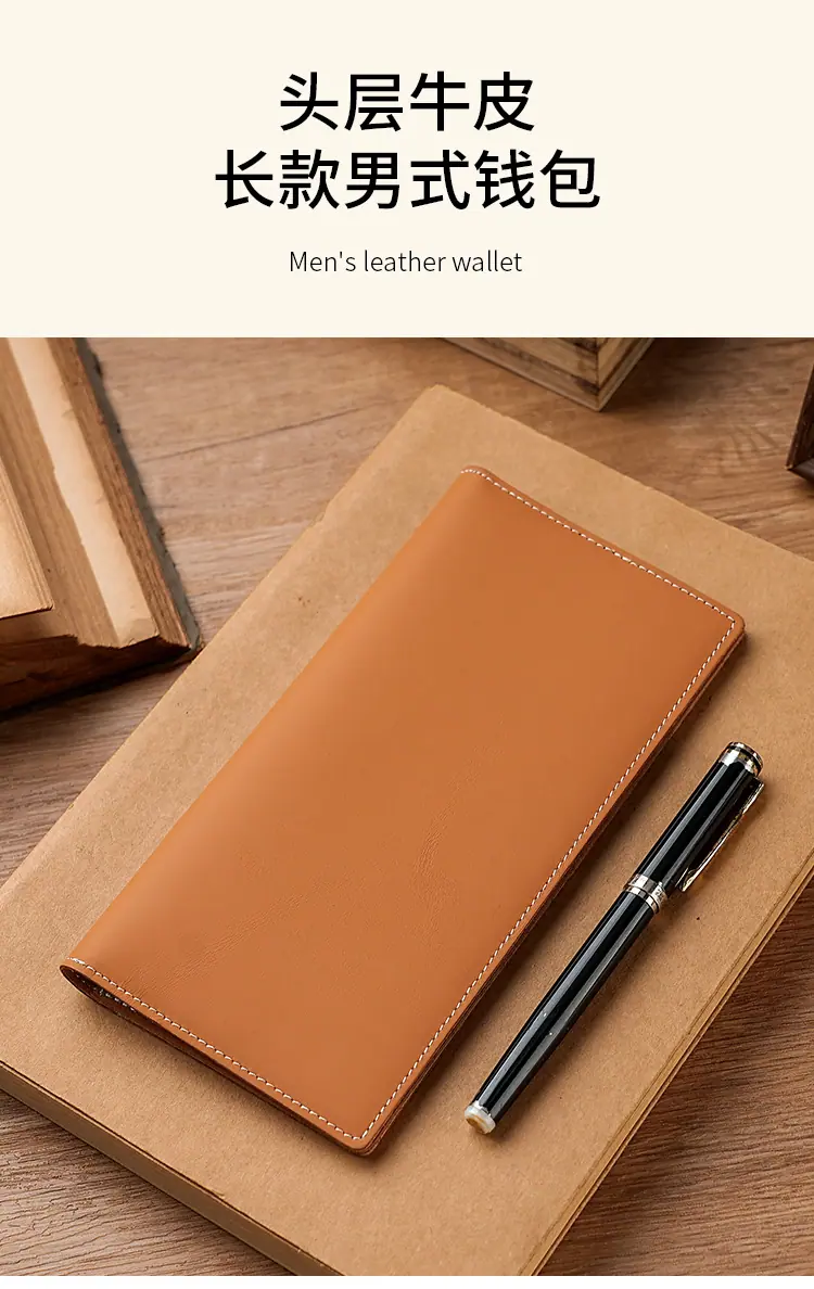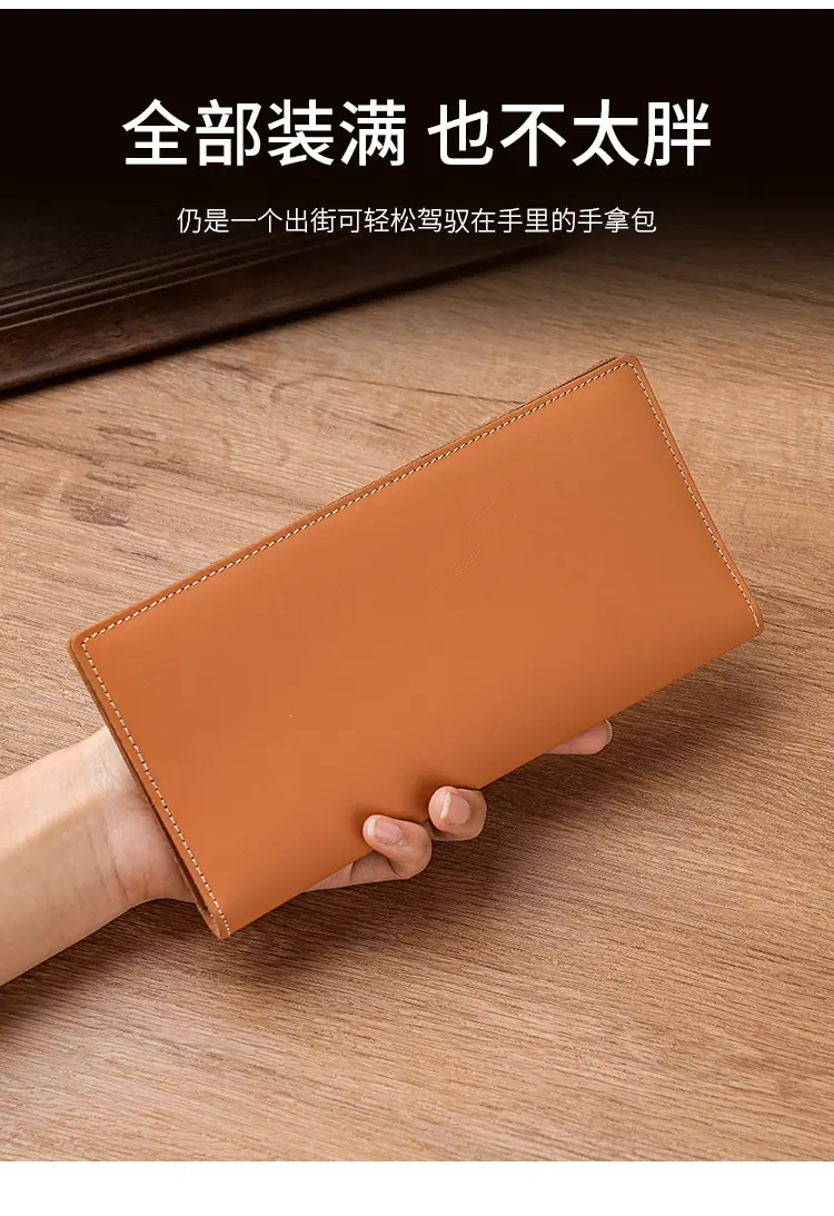 Billetera Larga para Hombre de Piel de Vaca de Primera Capa Personalizada con Múltiples Ranuras para Tarjetas Billetera Larga para Hombres y Mujeres Casual de Cuero Genuino de Mano