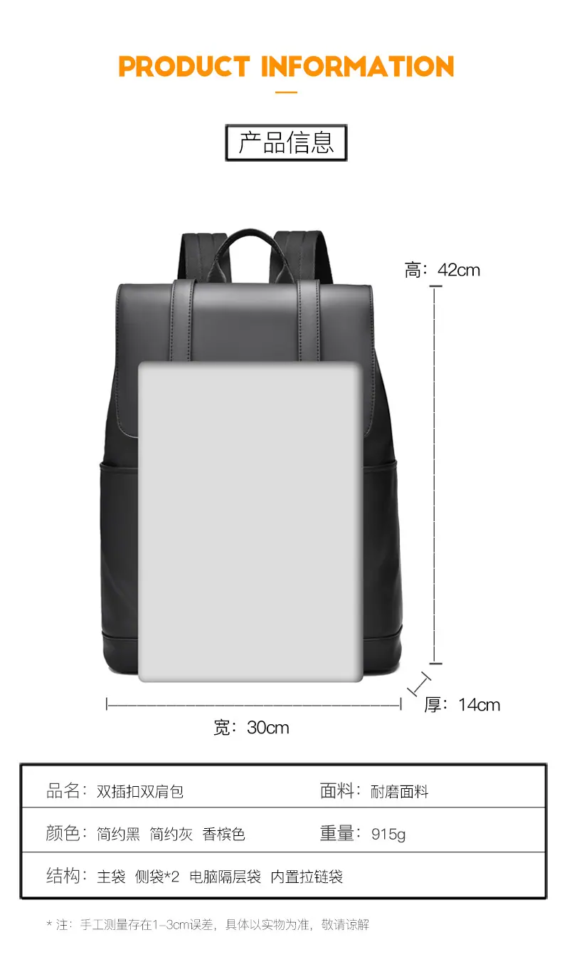 Mochila Negocios Viajero Ligera Bolsa para Computadora Mochila para Hombre de Alto Nivel Gran Capacidad Bolsa de Almacenamiento Mochila Escolar para Estudiante