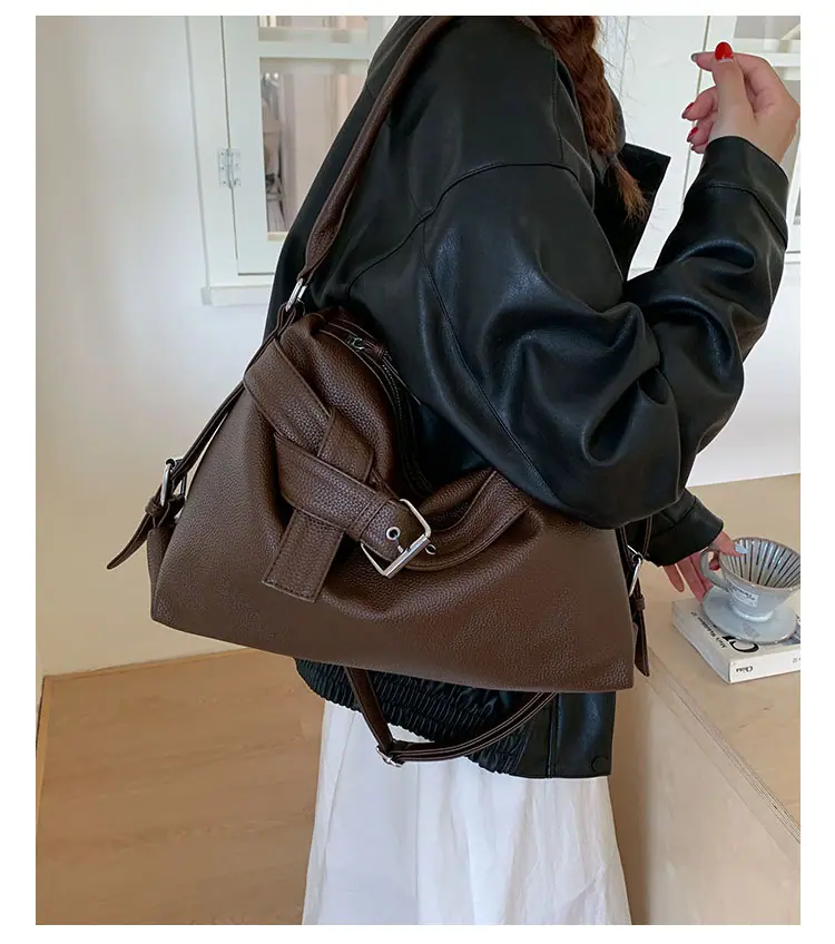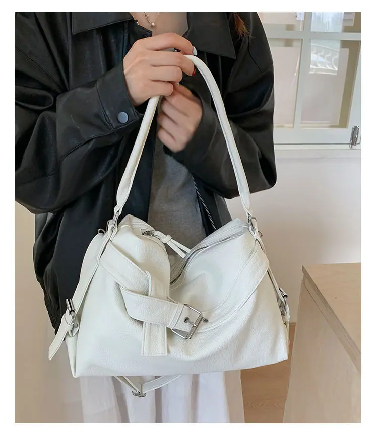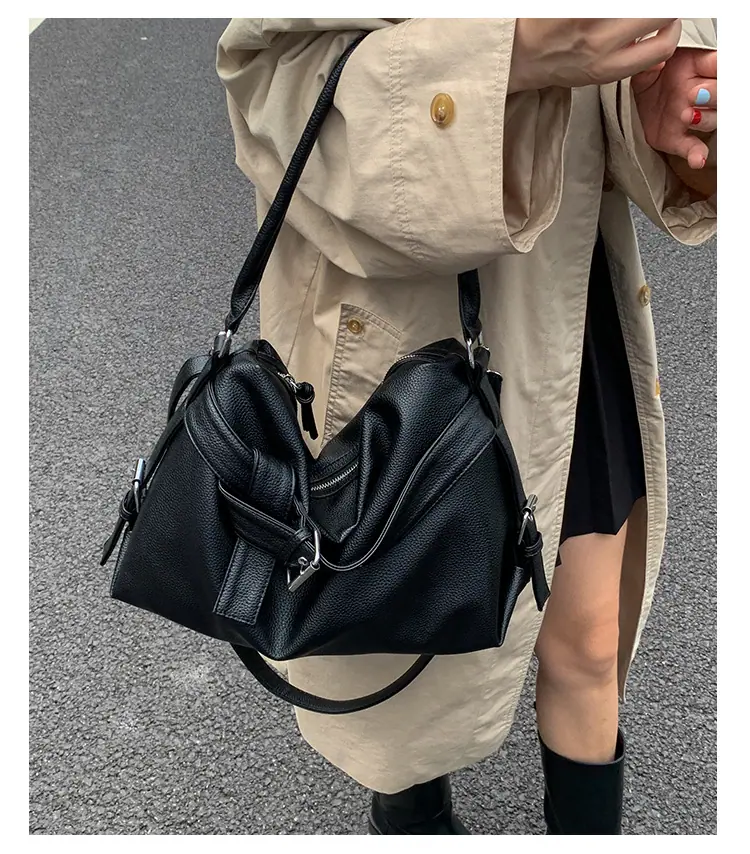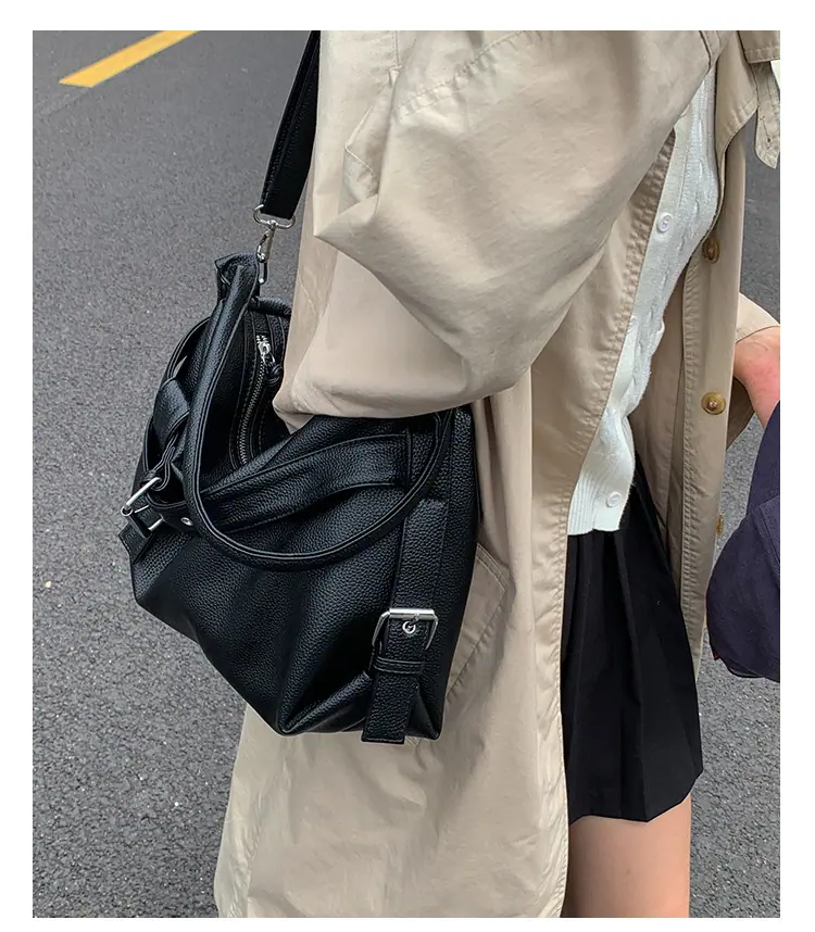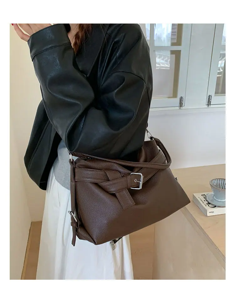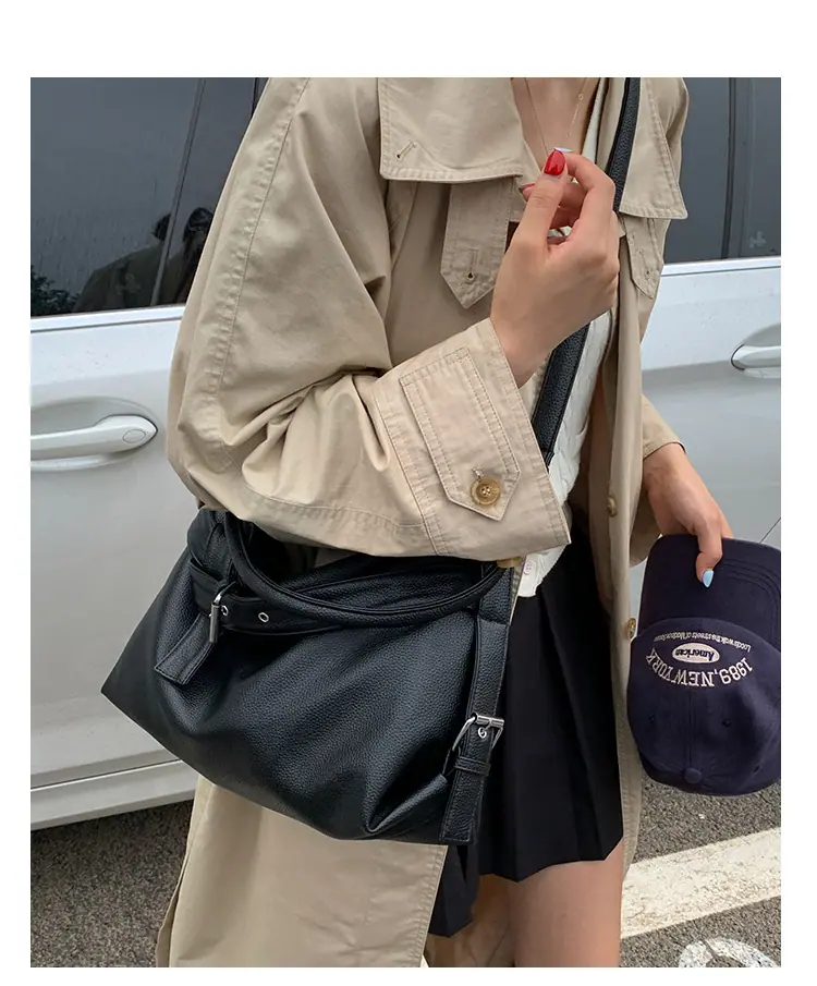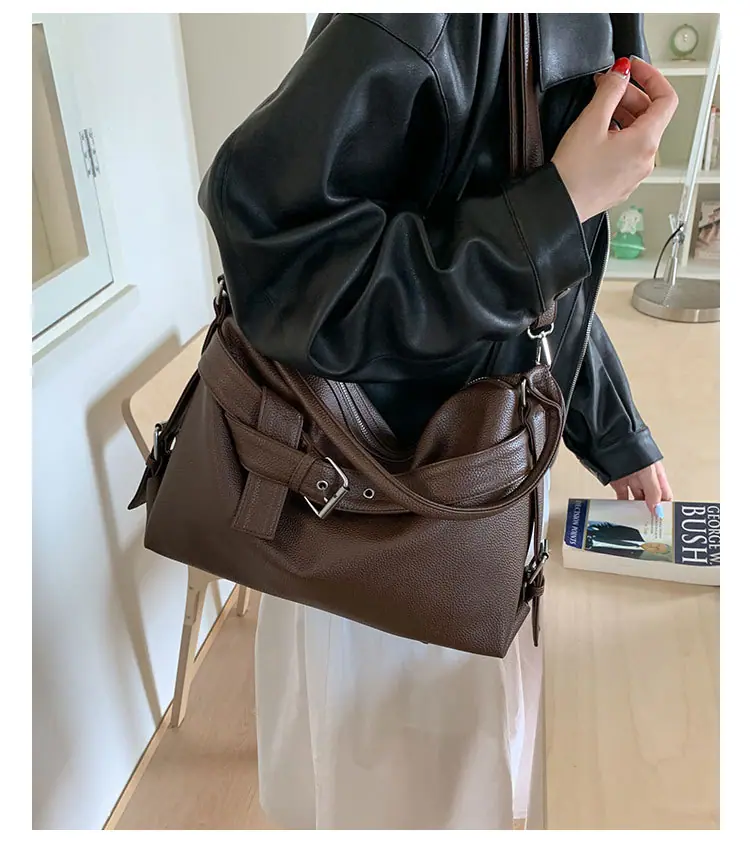 Bolso de Motocicleta Retro Nicho Transfronterizo Hot Girl Bolso Cruzado para Mujer Bolso Casual de Hombro Bajo el Brazo Gran Capacidad Bolso Tote para Ir al Trabajo