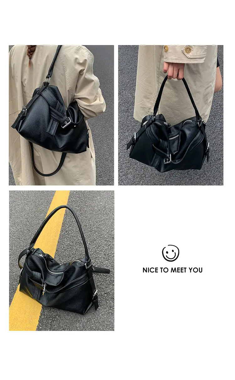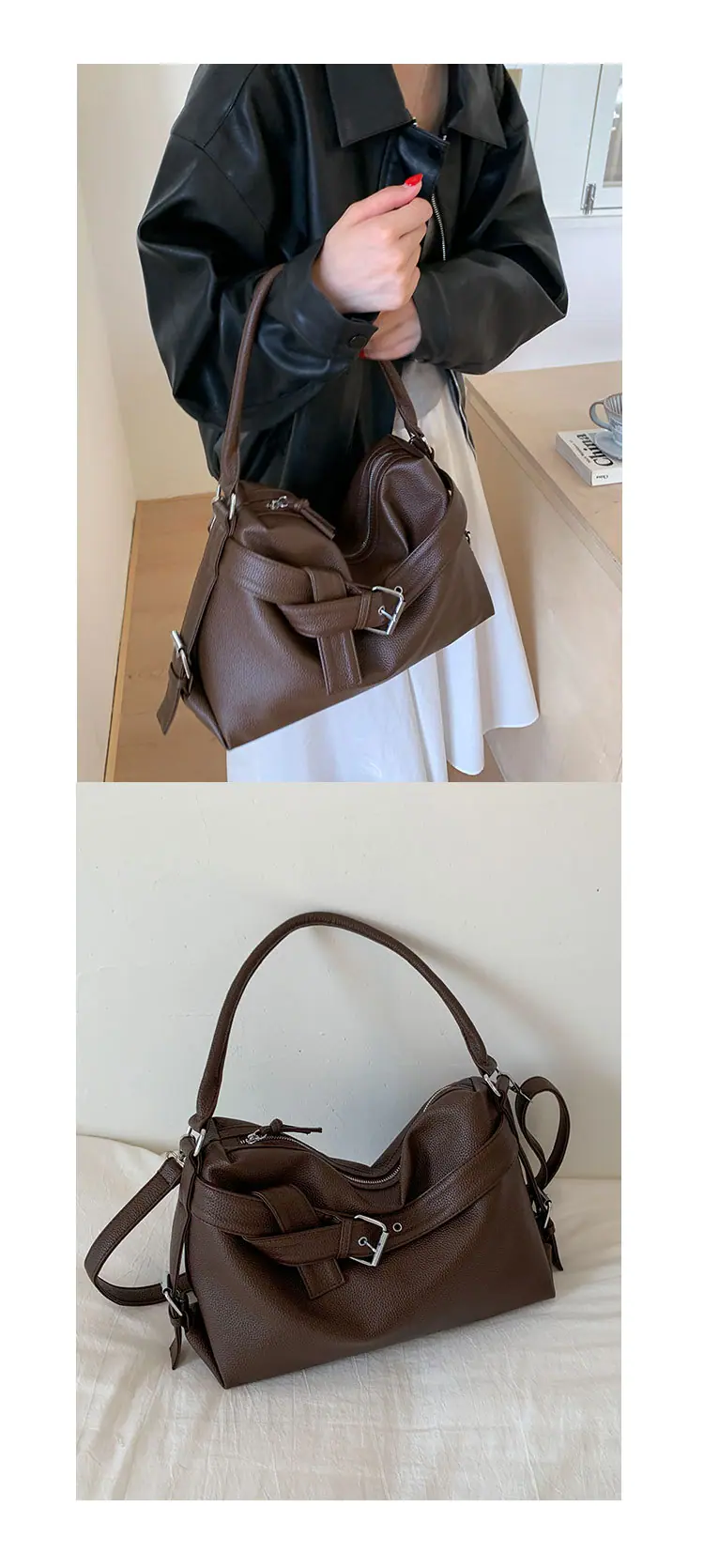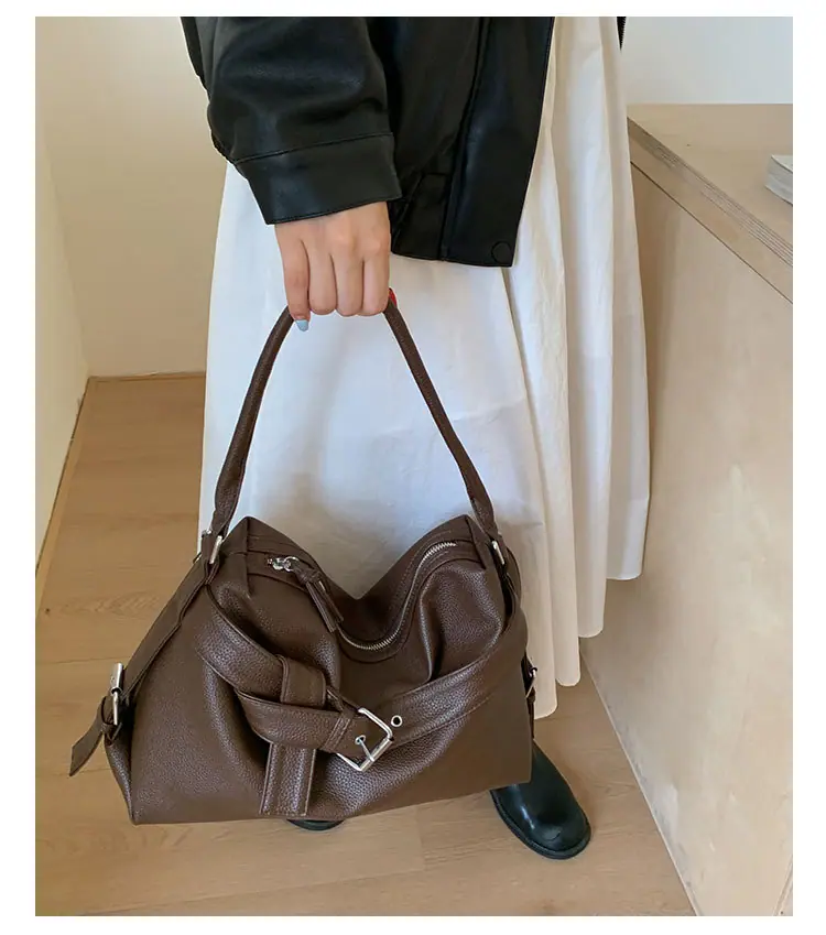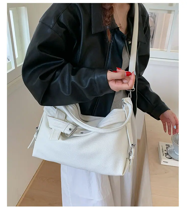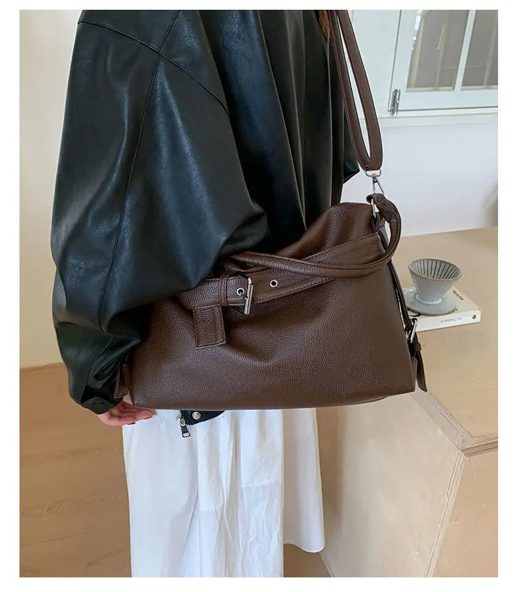 Bolso de Motocicleta Retro Nicho Transfronterizo Hot Girl Bolso Cruzado para Mujer Bolso Casual de Hombro Bajo el Brazo Gran Capacidad Bolso Tote para Ir al Trabajo