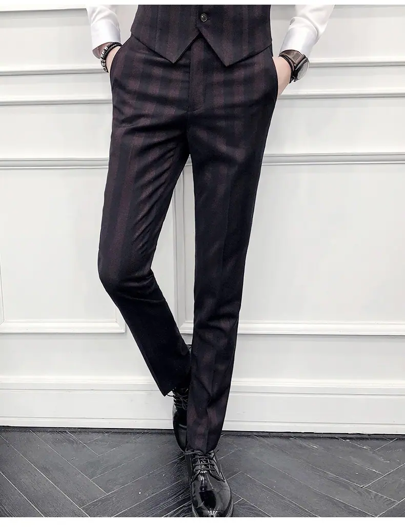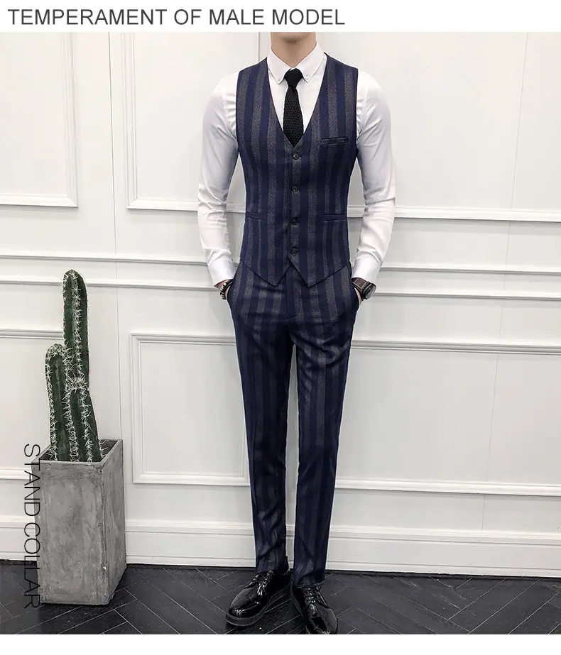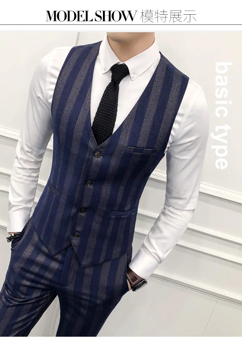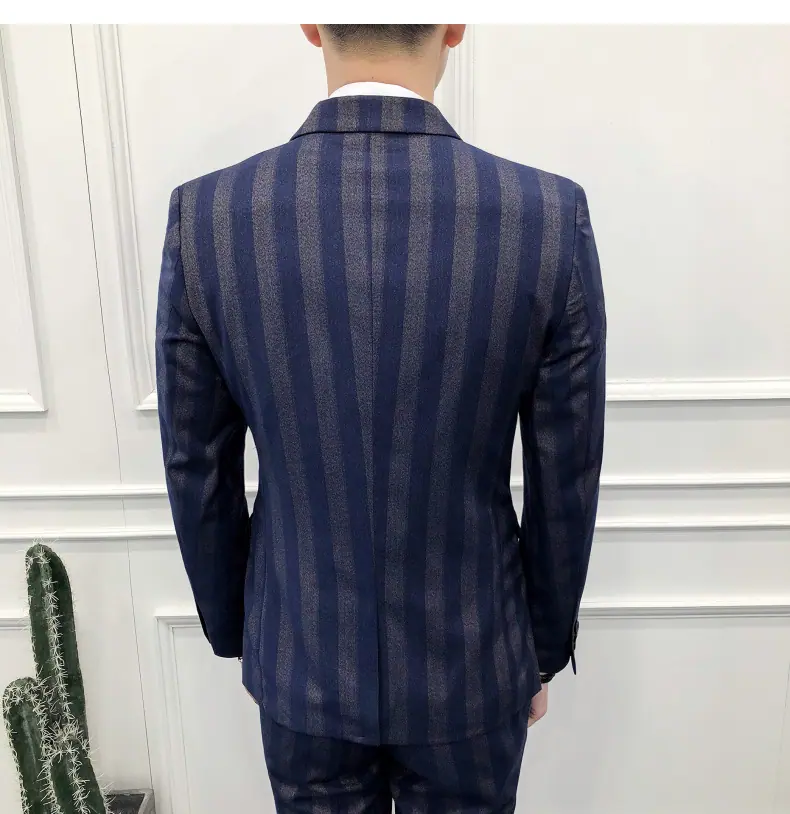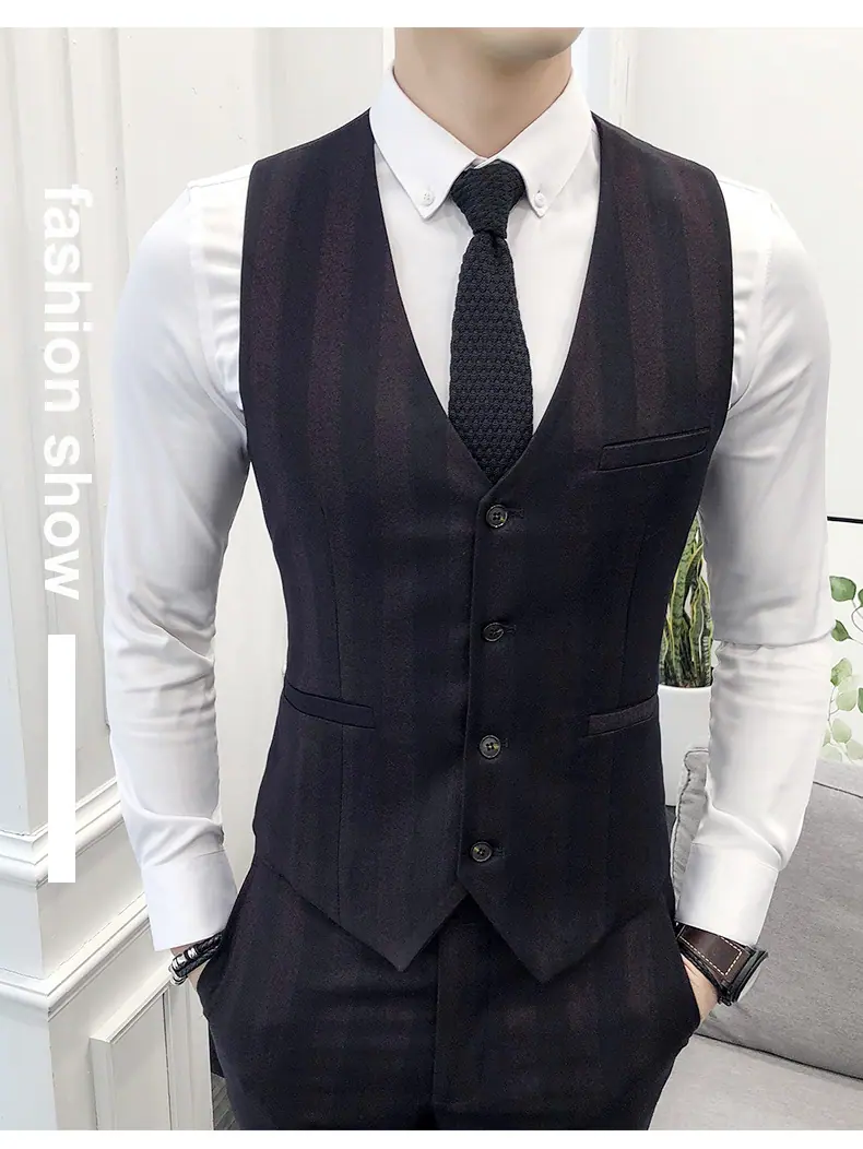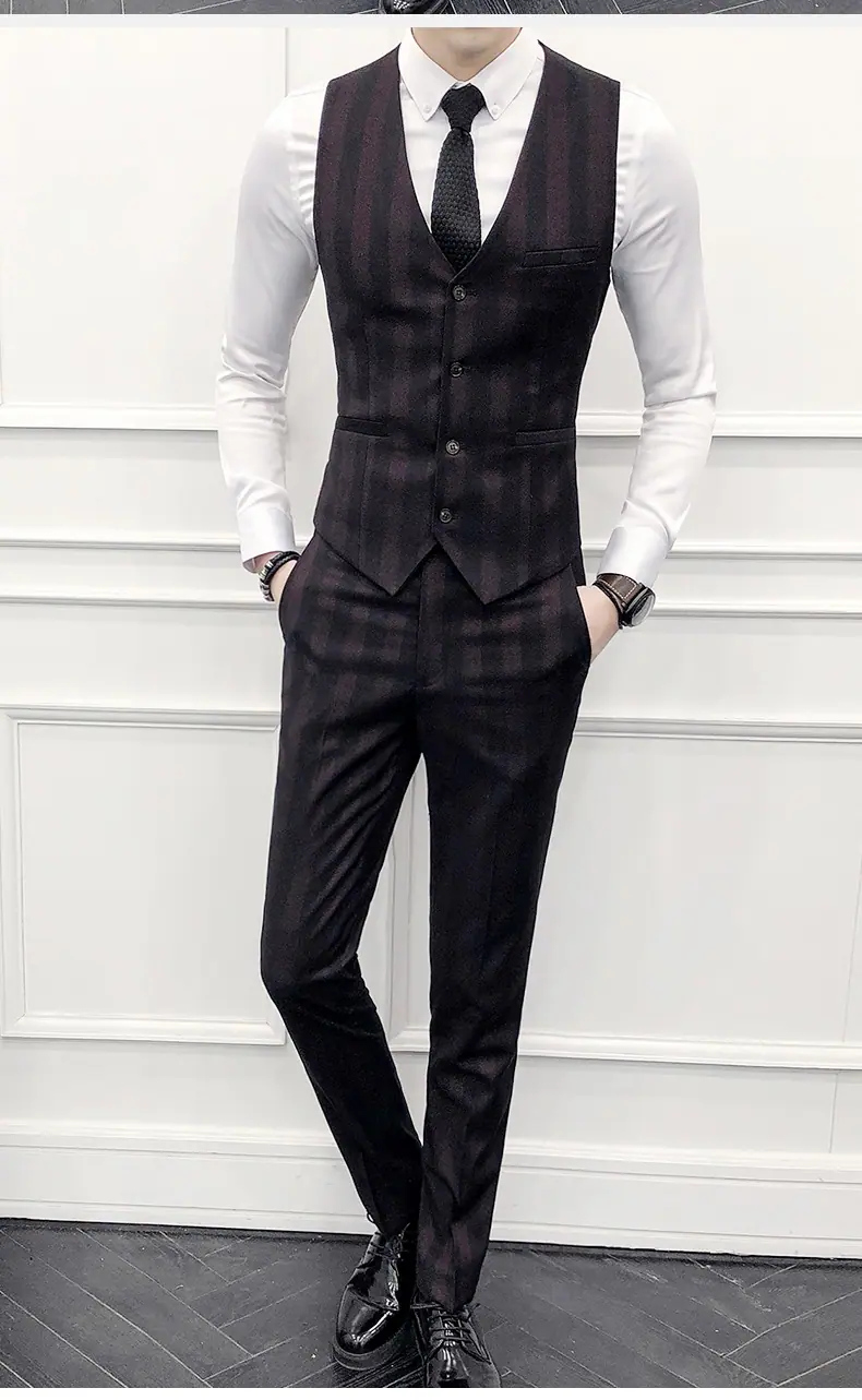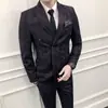 Conjunto de Traje para Hombre de Tres Piezas Juvenil Coreano Corte Slim Traje de Padrino Novio Vestido de Boda Estilo Británico Vestido Formal