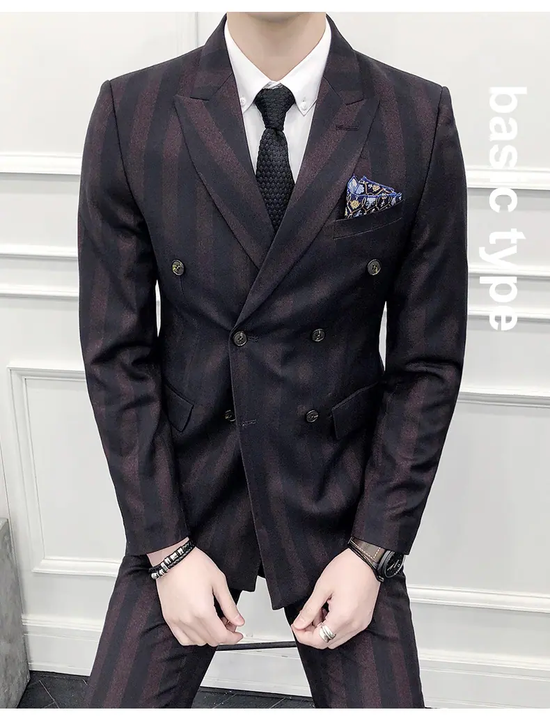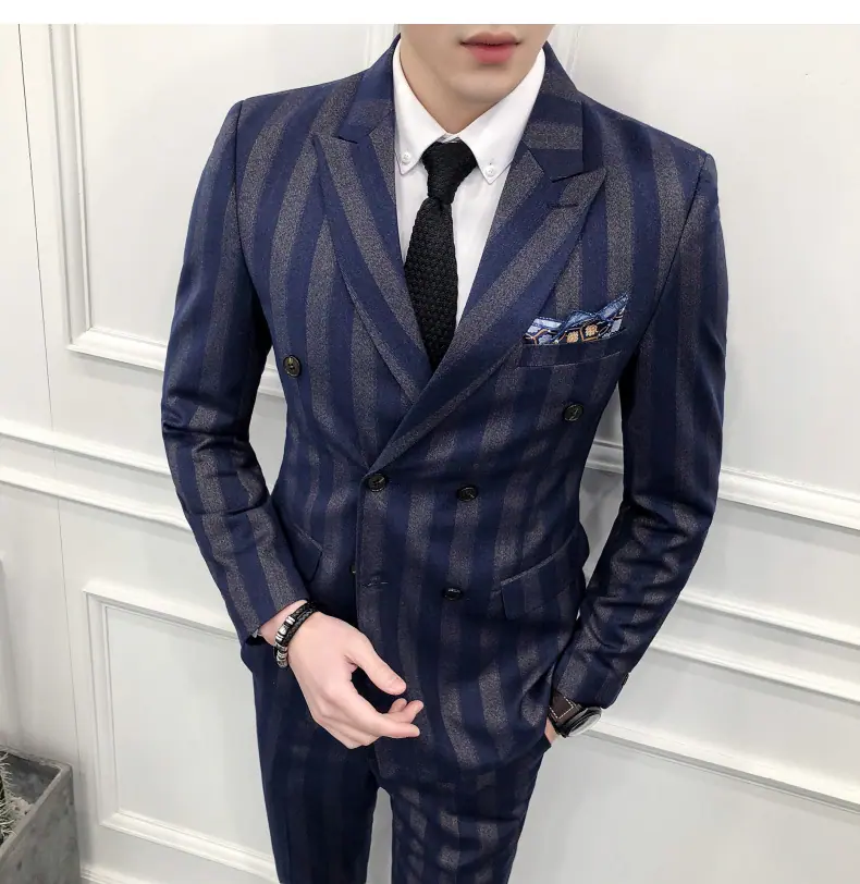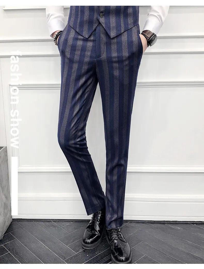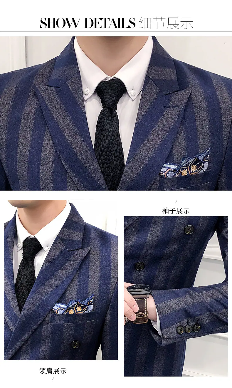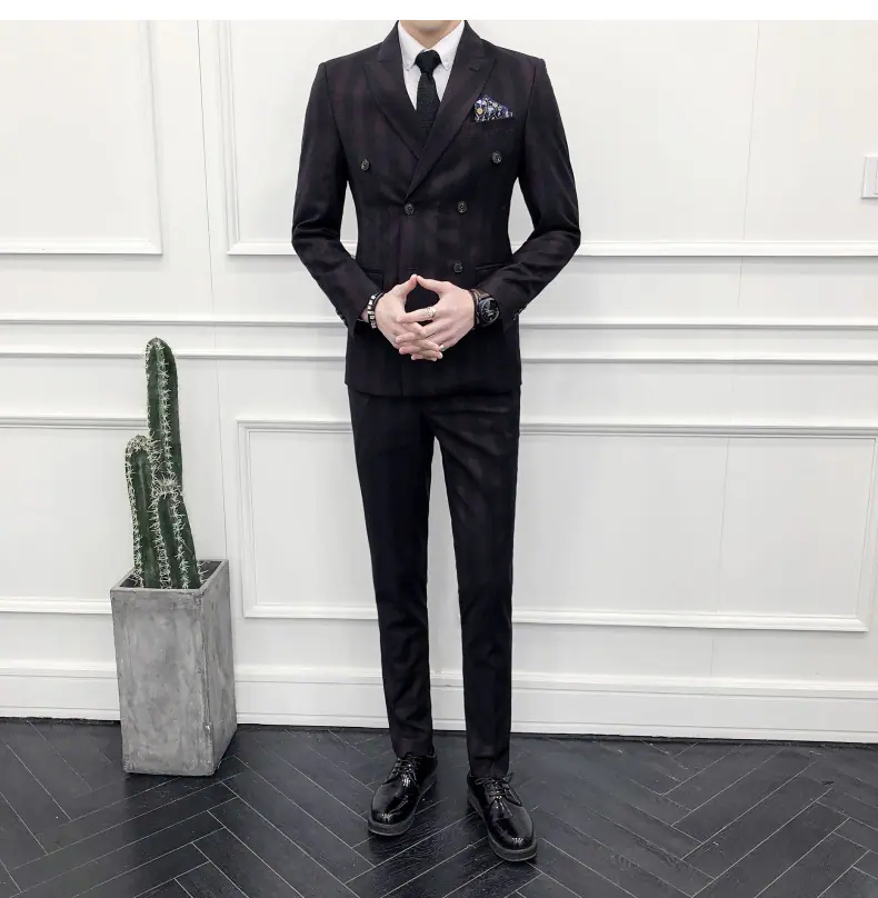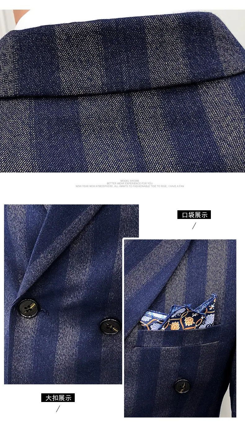 Conjunto de Traje para Hombre de Tres Piezas Juvenil Coreano Corte Slim Traje de Padrino Novio Vestido de Boda Estilo Británico Vestido Formal