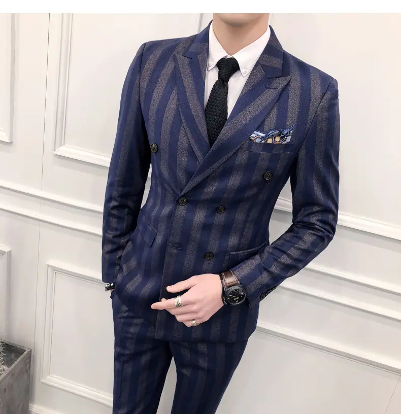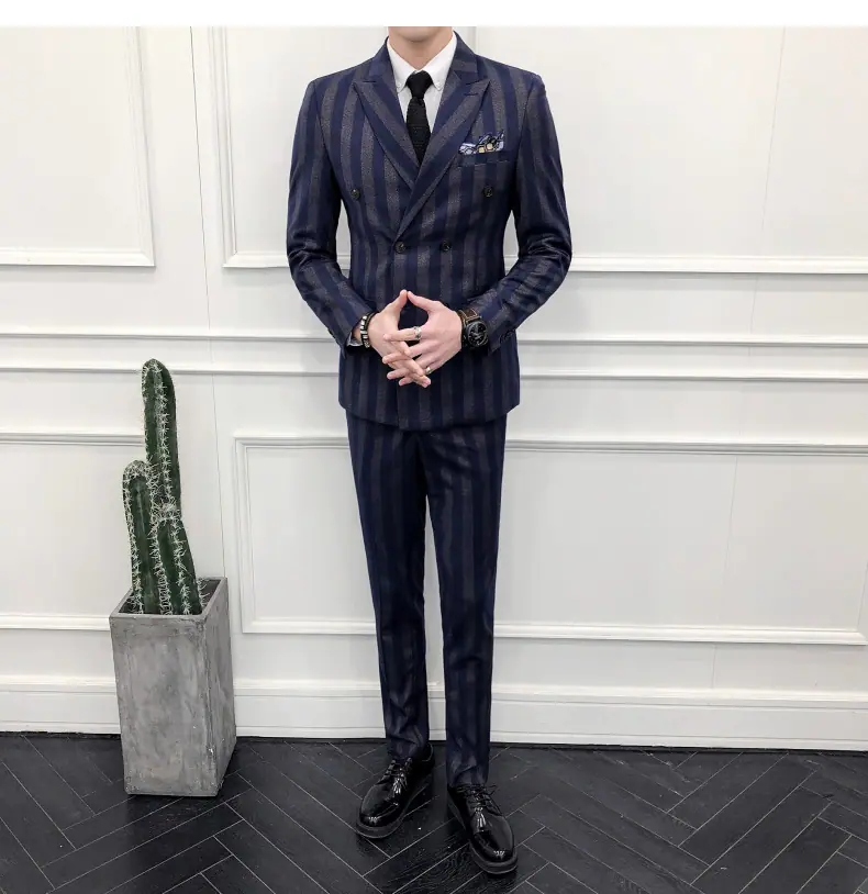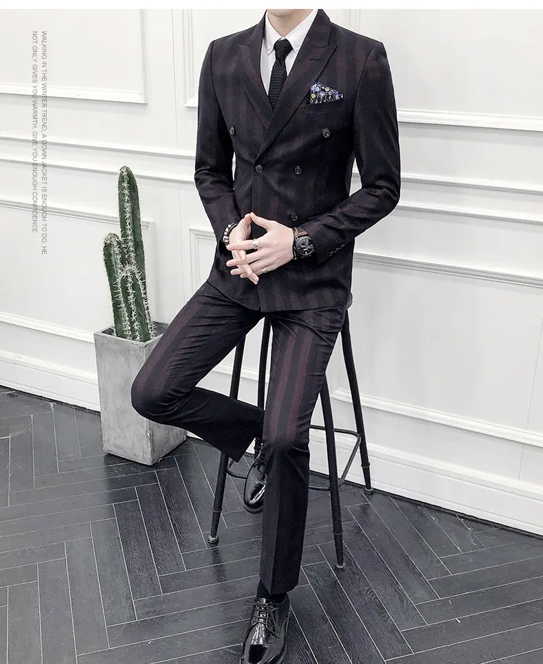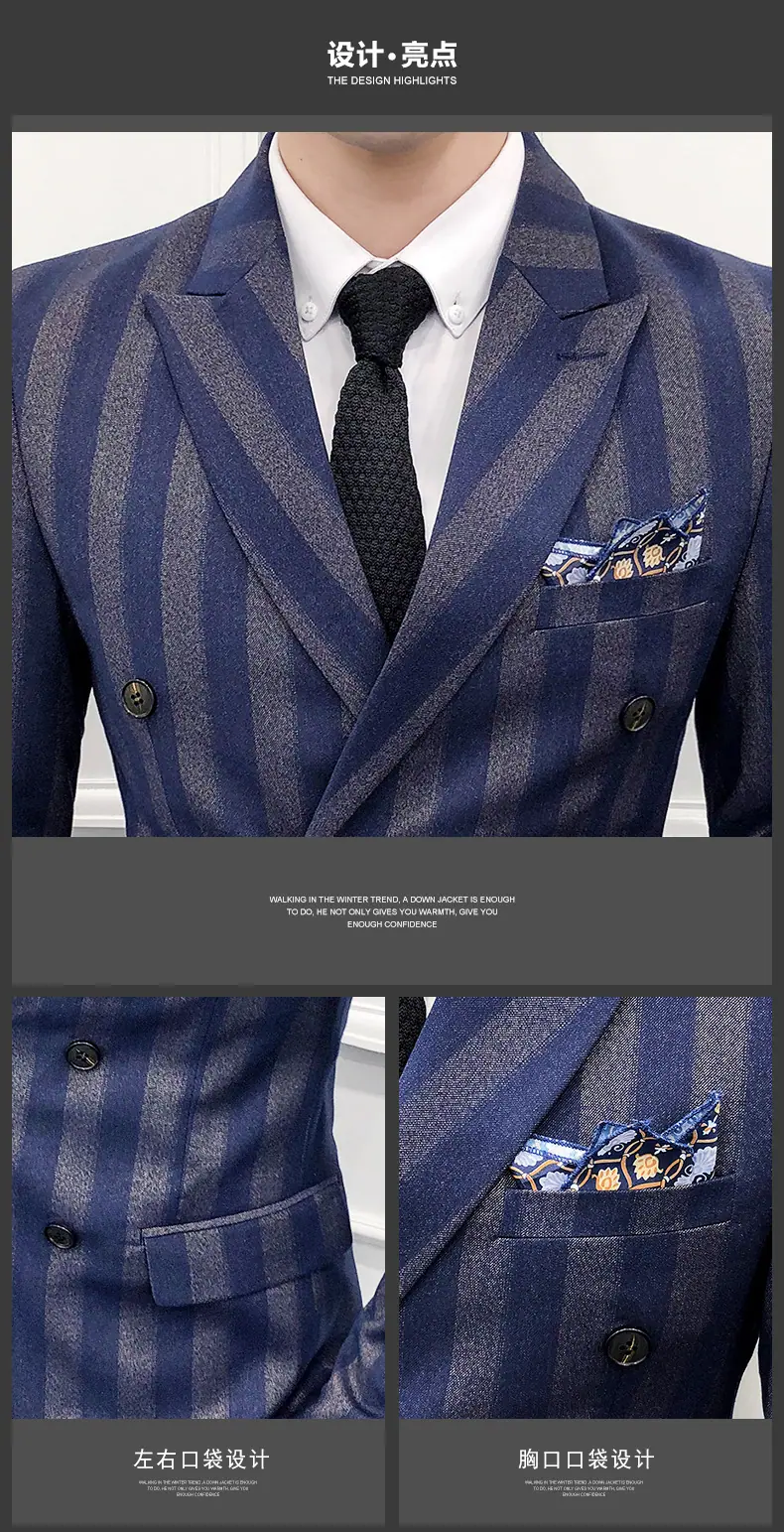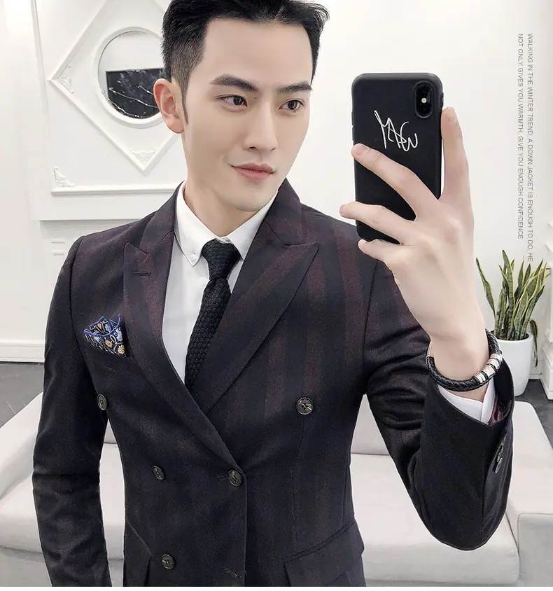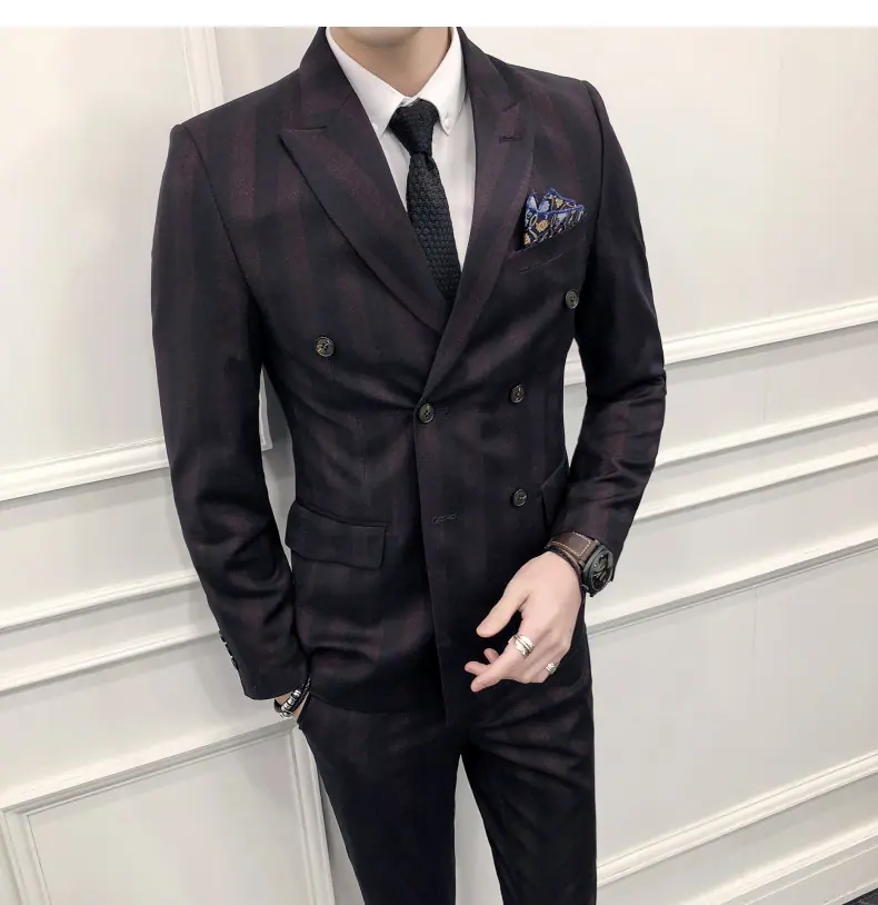 Conjunto de Traje para Hombre de Tres Piezas Juvenil Coreano Corte Slim Traje de Padrino Novio Vestido de Boda Estilo Británico Vestido Formal