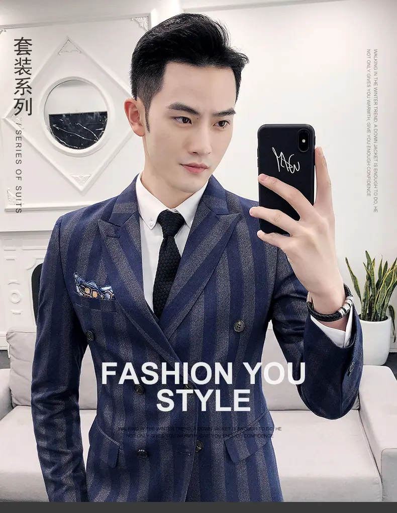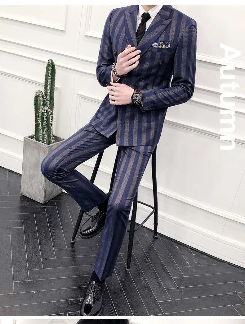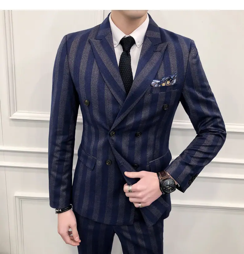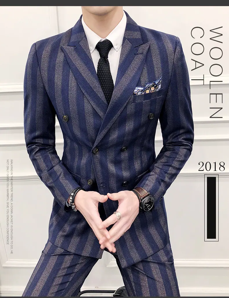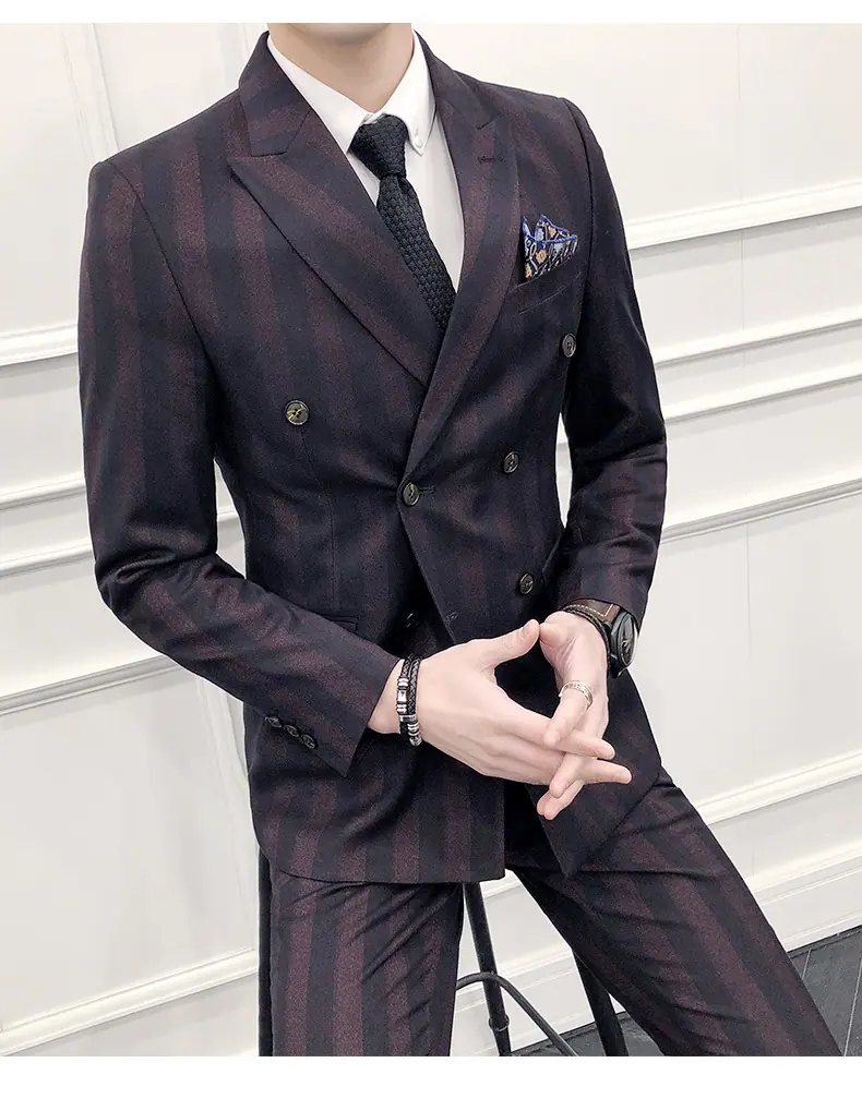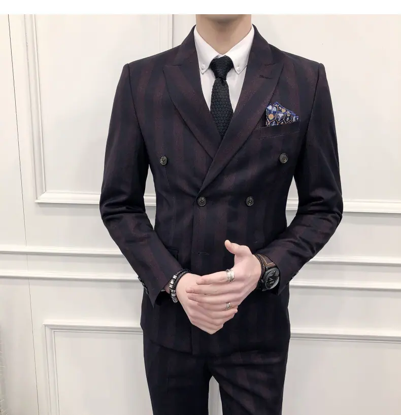 Conjunto de Traje para Hombre de Tres Piezas Juvenil Coreano Corte Slim Traje de Padrino Novio Vestido de Boda Estilo Británico Vestido Formal
