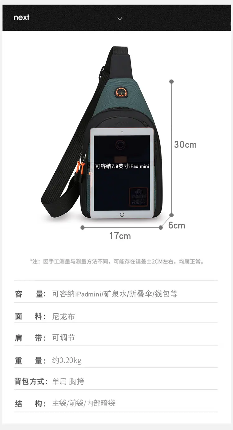 Bolso de pecho moderno para hombre transfronterizo, deportivo al aire libre, bandolera de alto valor para salir, ligero, de gran capacidad, bolso de hombro casual
